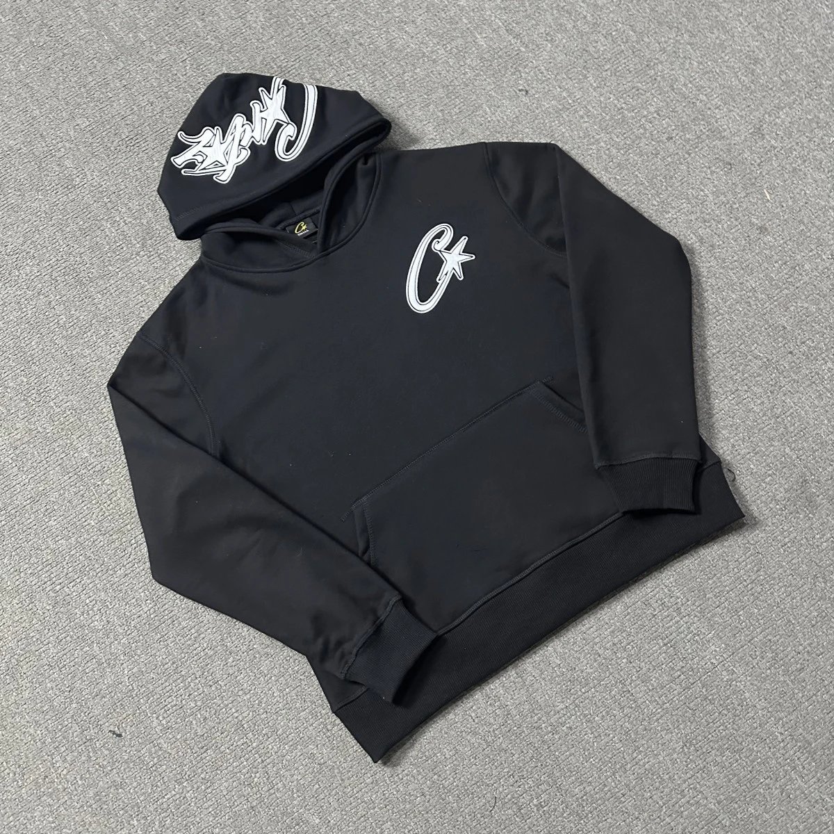 Corteiz Black Hoodies feature patch embroidery design.