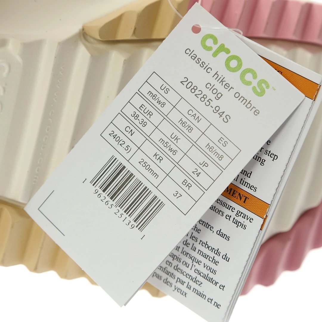 Crocs Classic Hiker Clog Sandals use eco-friendly materials: 95% lightweight EVA + 5% foam, 4cm lift, TPU non-slip sole.
