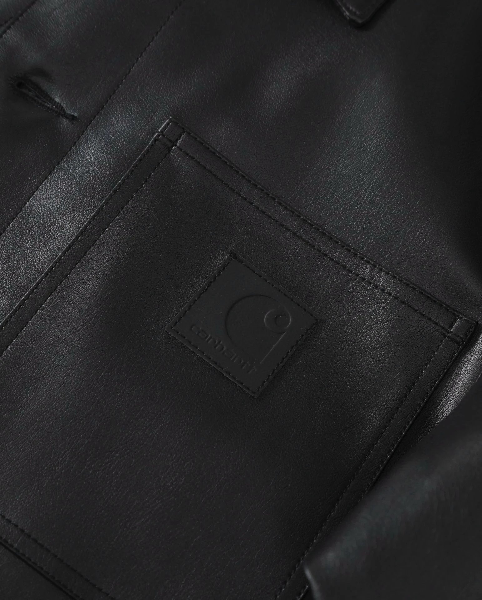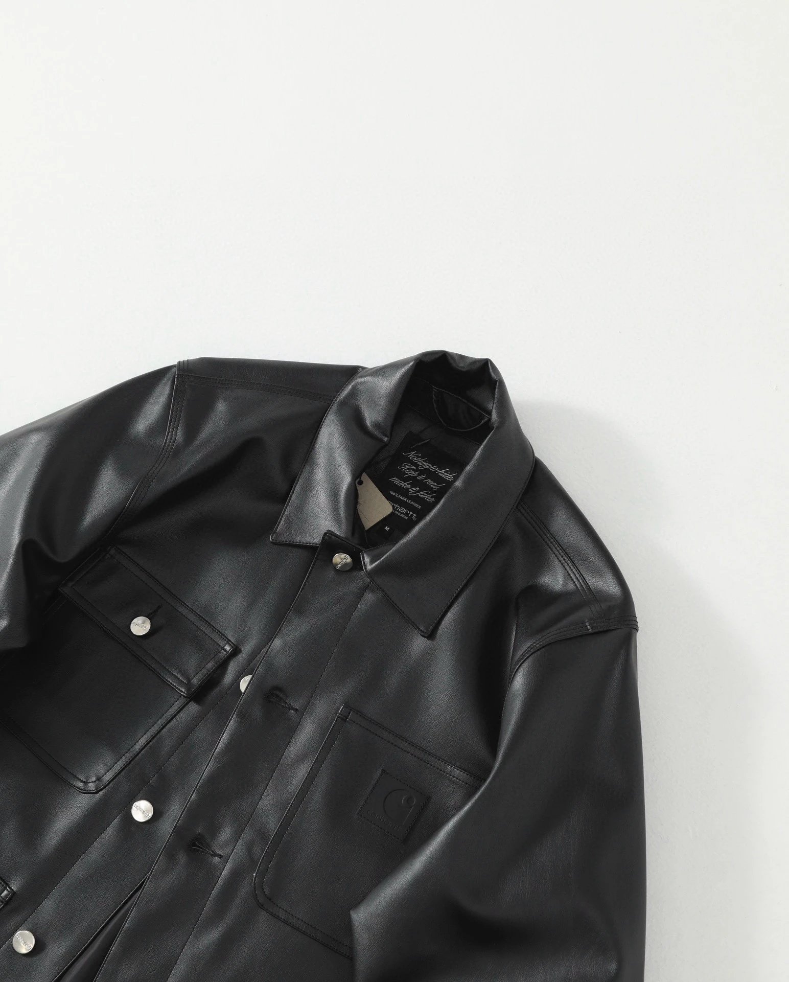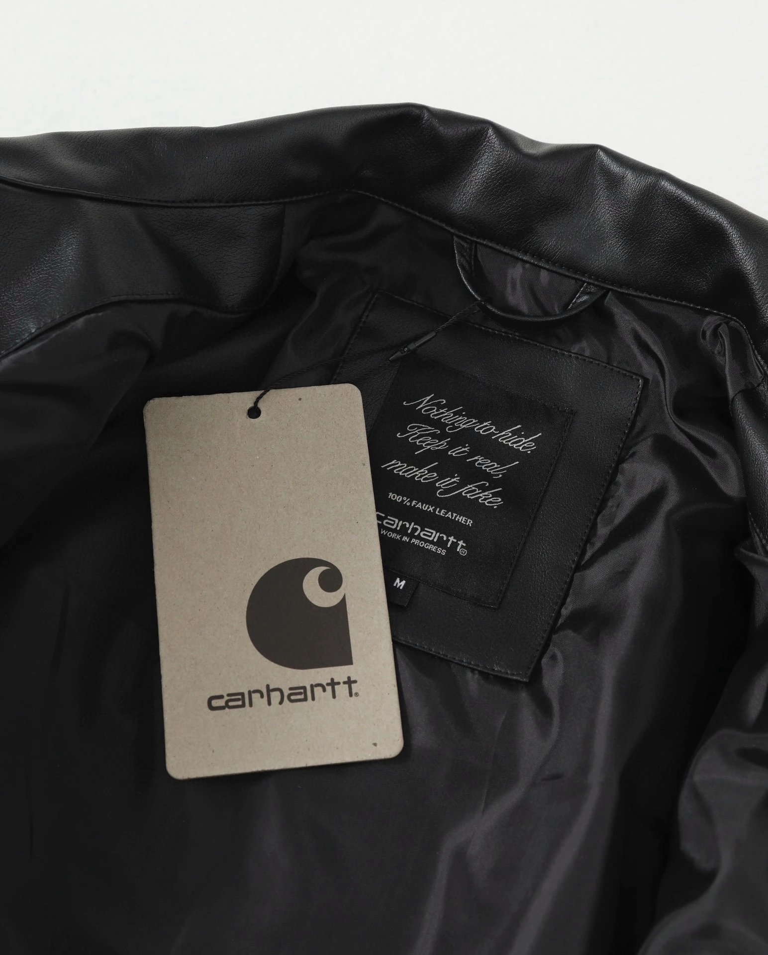 Carhartt Michigan Leather Jacket uses microfiber PU leather with original texture/sheen.