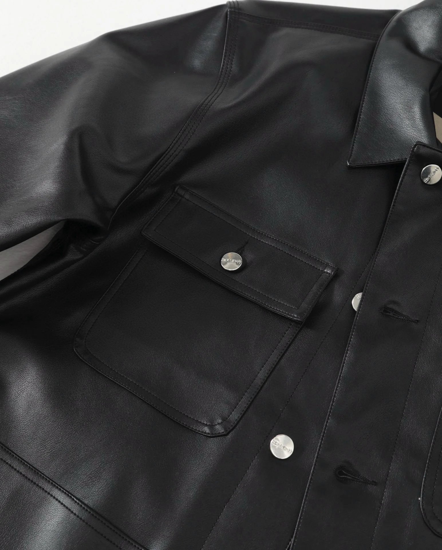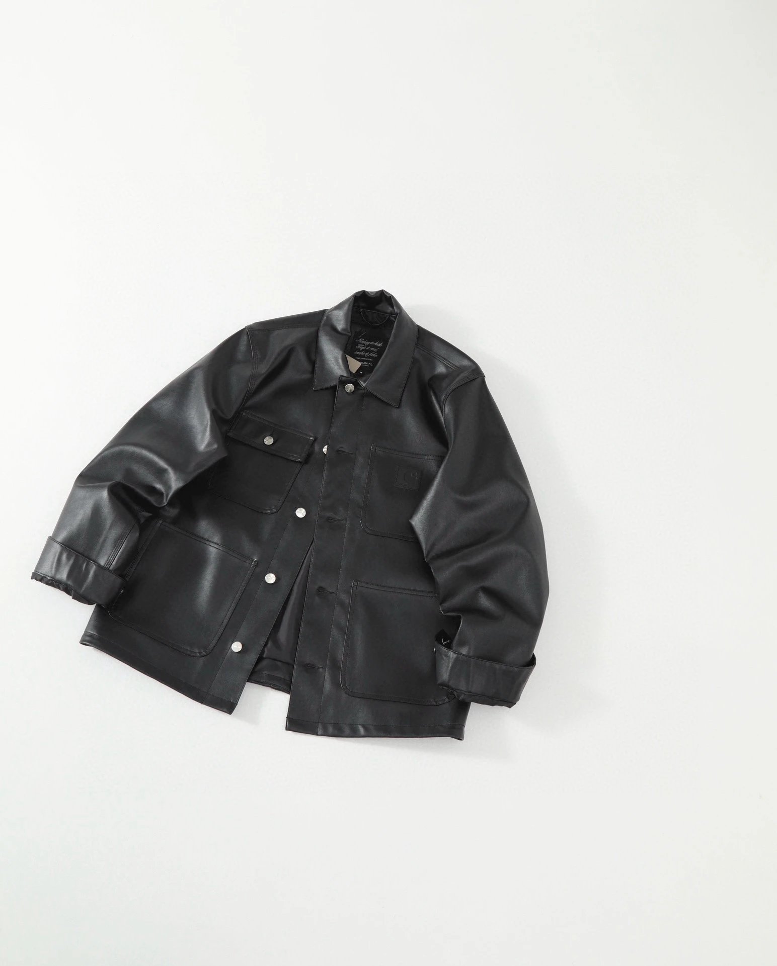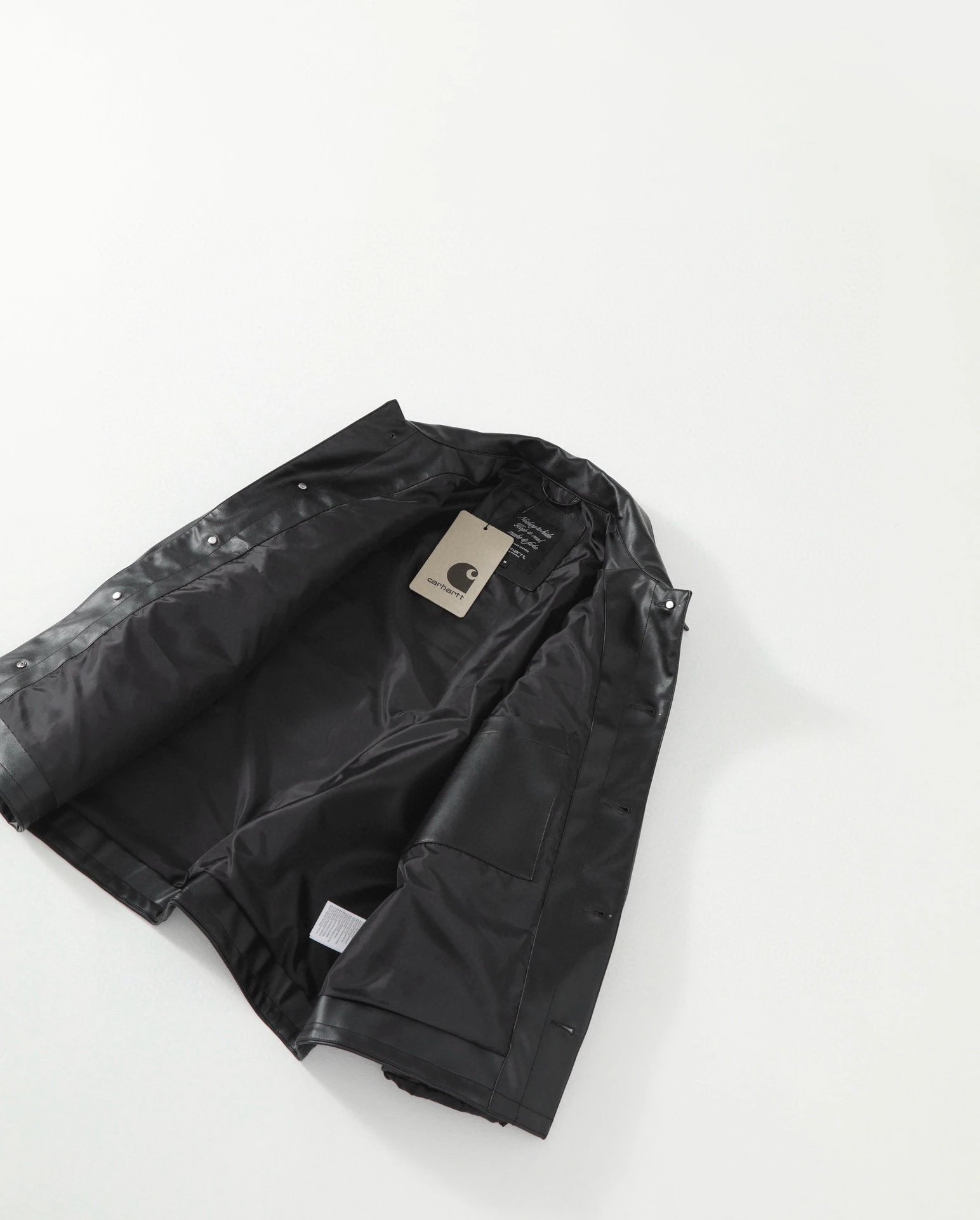 Carhartt Michigan Leather Jacket uses microfiber PU leather with original texture/sheen.
