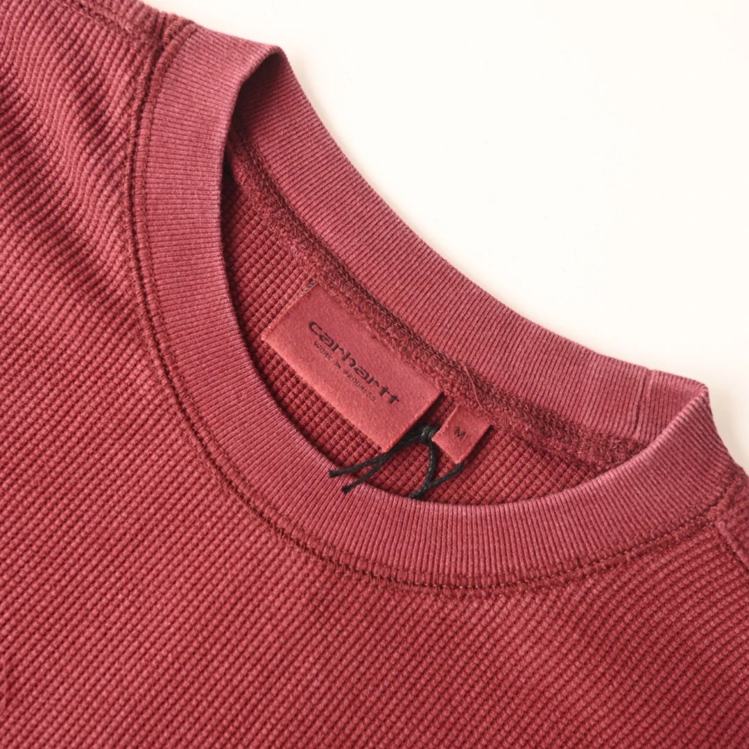 Carhartt Waffle Washed Long Sleeve T-Shirt uses specially woven/dyed waffle fabric. Shrinkage controlled via 3 processes: washing, drying, enzyme washing.