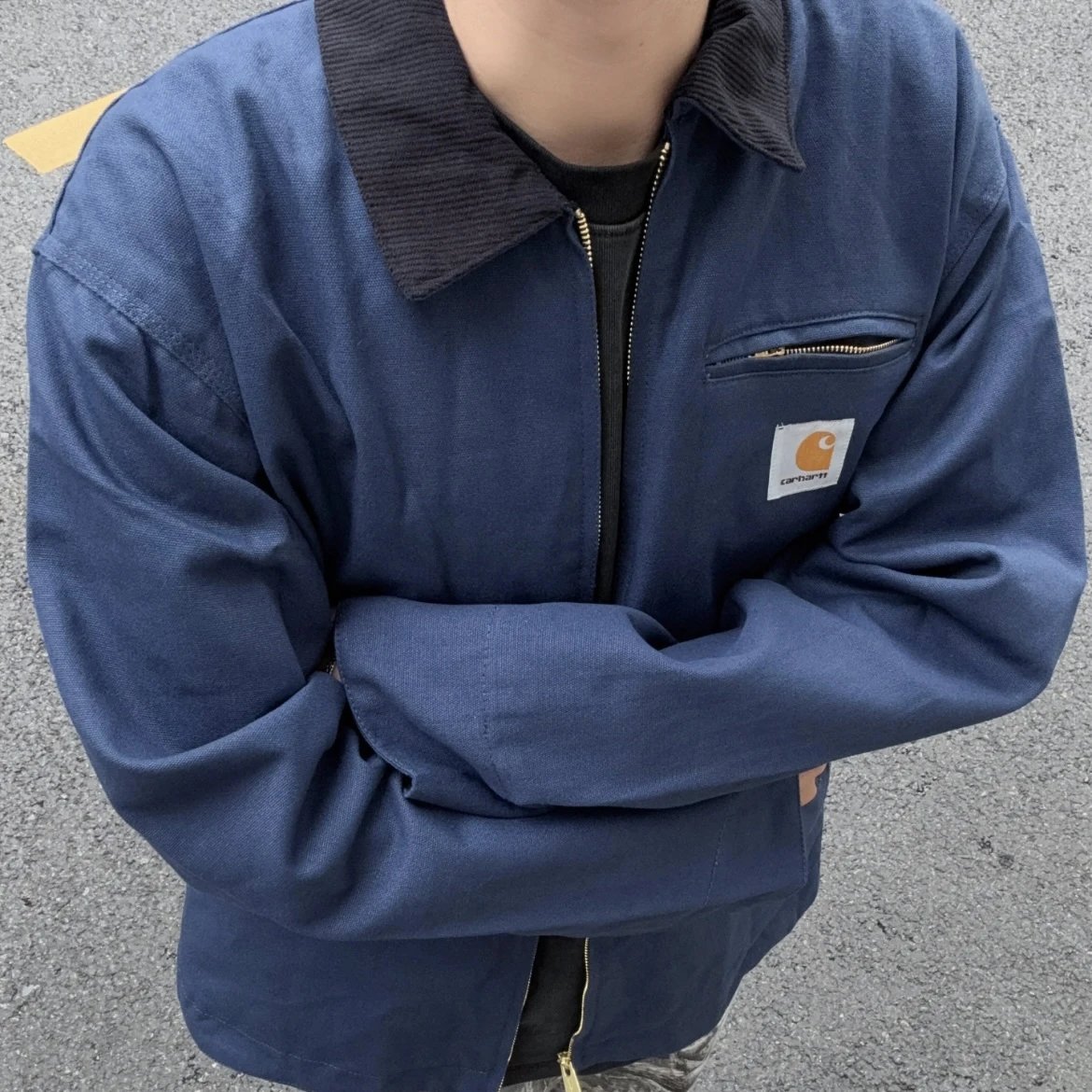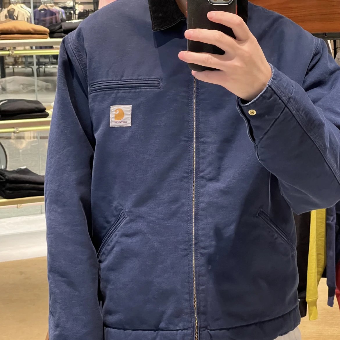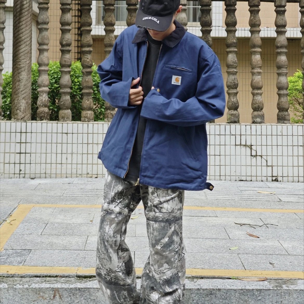 Carhartt Detroit Retro Canvas Heavy Work Jacket uses high-density cotton canvas, garment-washed for slight fade at seams, thick yet soft and structured.