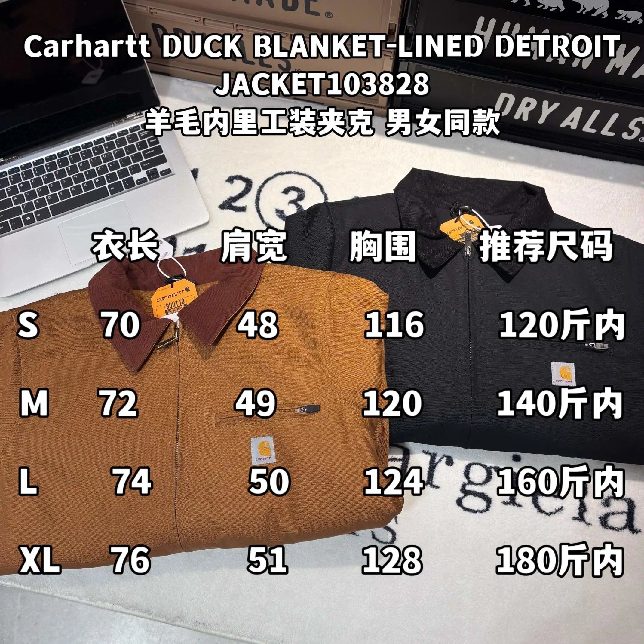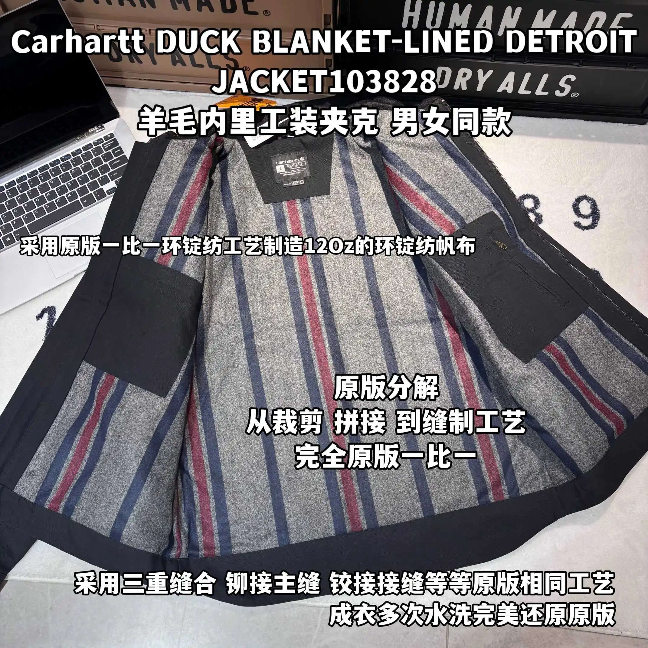 Carhartt Duck Blanket Lined Detroit Unisex Jacket uses 12Oz ring-spun canvas (softened, durable), custom original accessories, triple stitching, multiple washes.