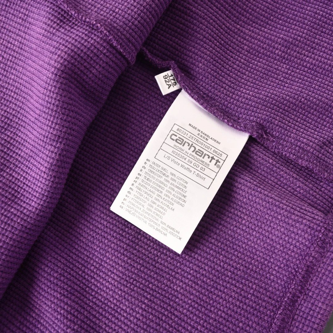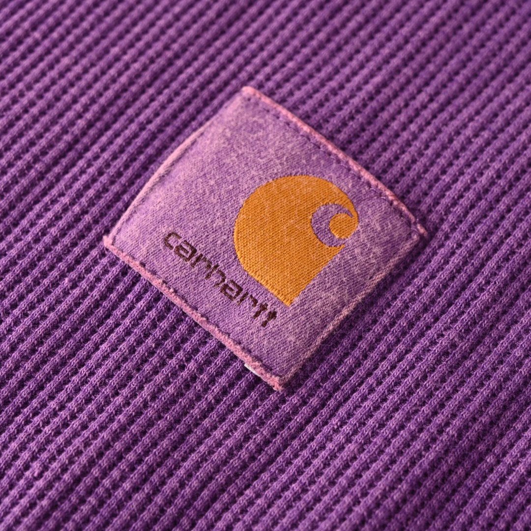 Carhartt Waffle Long Sleeve T-Shirt uses specially made waffle fabric with controlled shrinkage via 3 processes: wash, dry, enzyme wash.