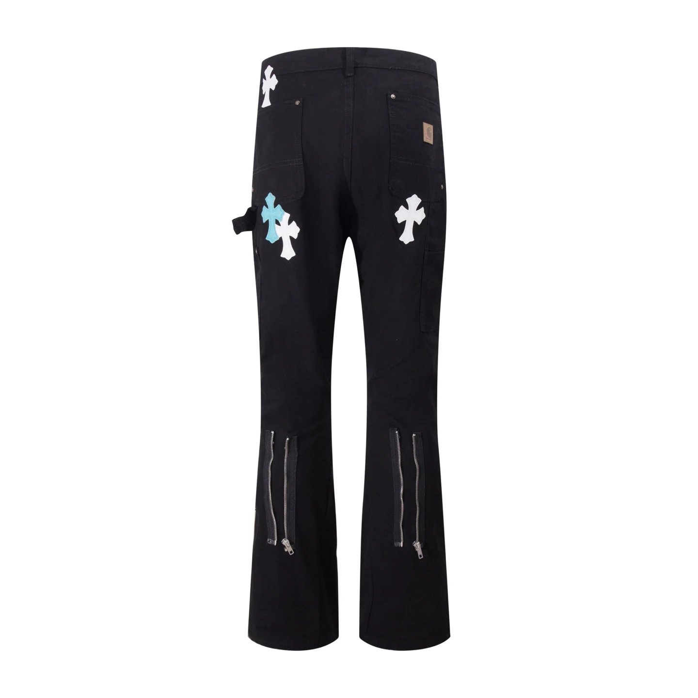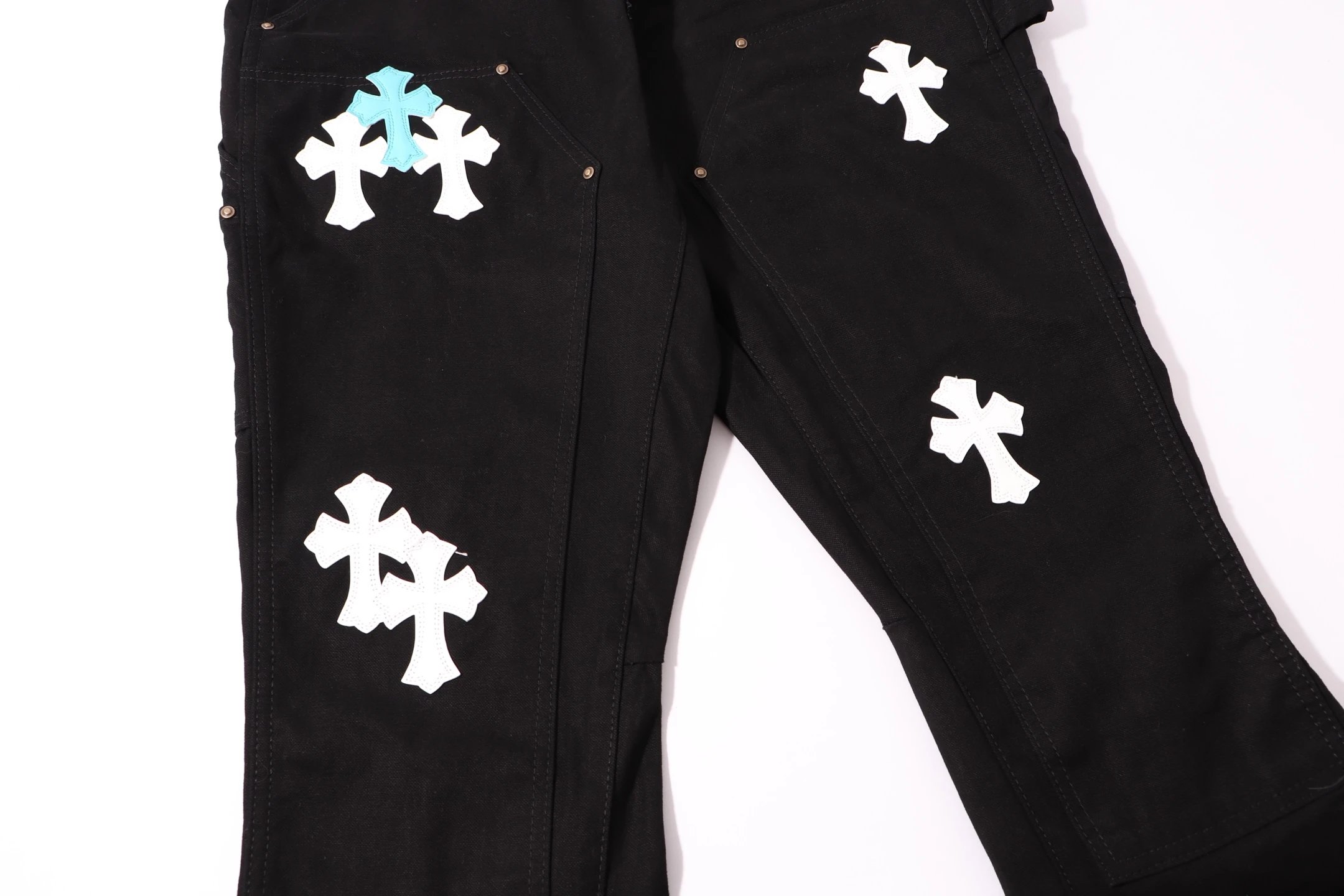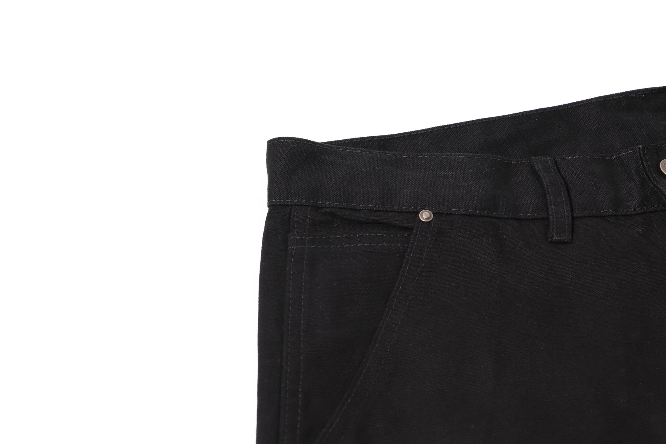 Carhartt WIP H36 Black Jeans use 14oz slub denim, YKK zippers, custom leather patches, and vintage finish for cleanfit loose flared style.