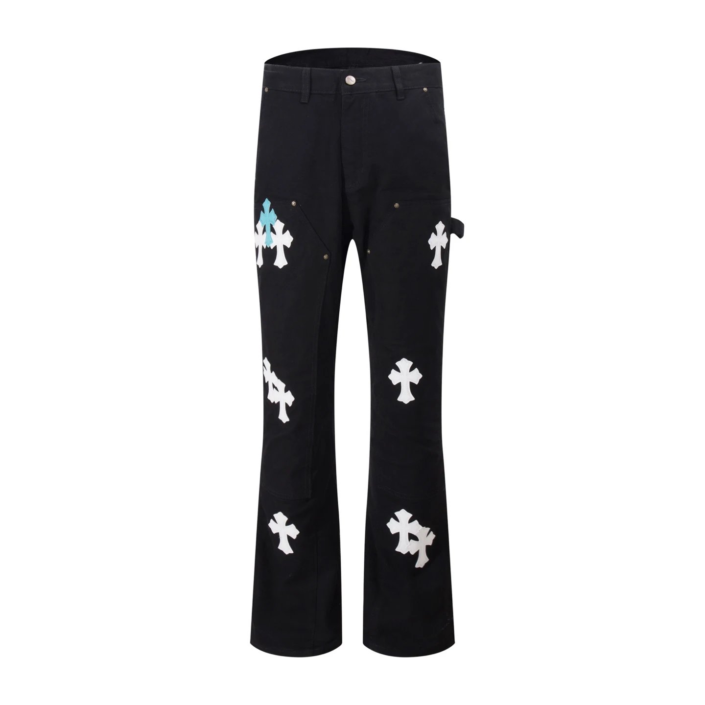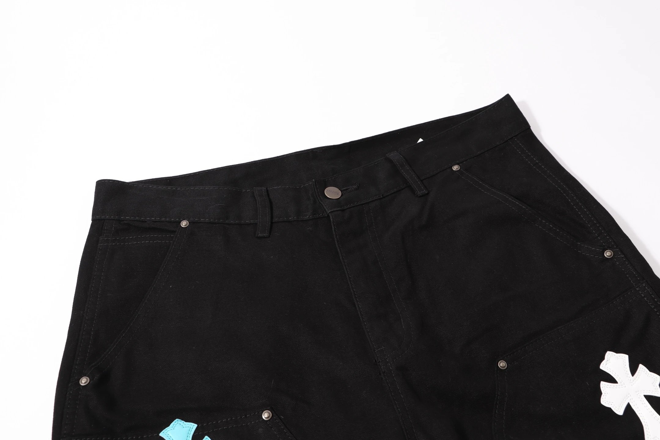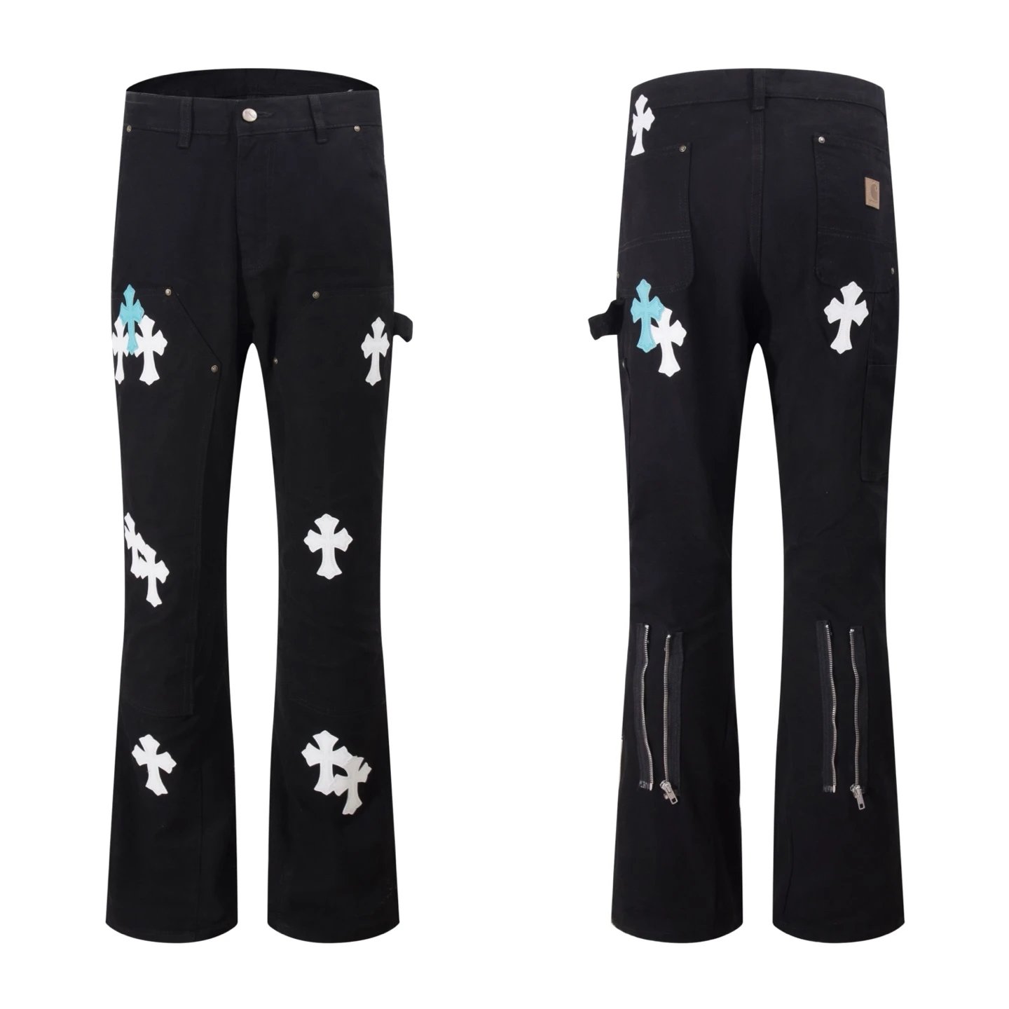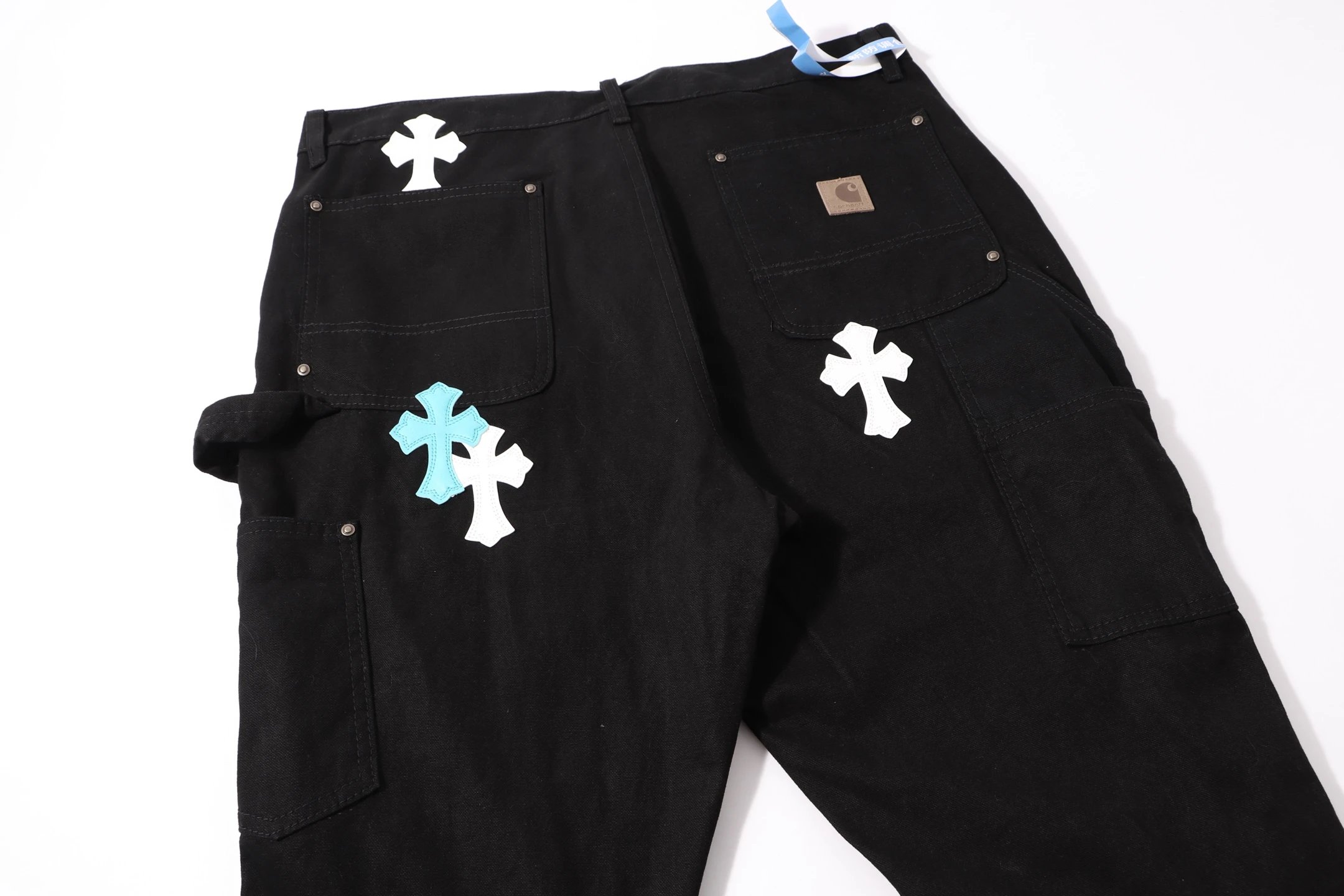 Carhartt WIP H36 Black Jeans use 14oz slub denim, YKK zippers, custom leather patches, and vintage finish for cleanfit loose flared style.
