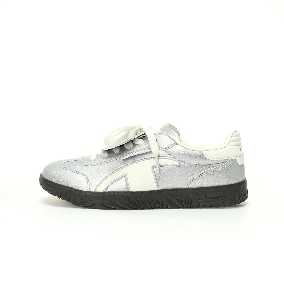 Champion TTrainer Women's Low-Top Casual Sneakers: silver white upper with lychee grain fiber leather + eco-friendly breathable leather.