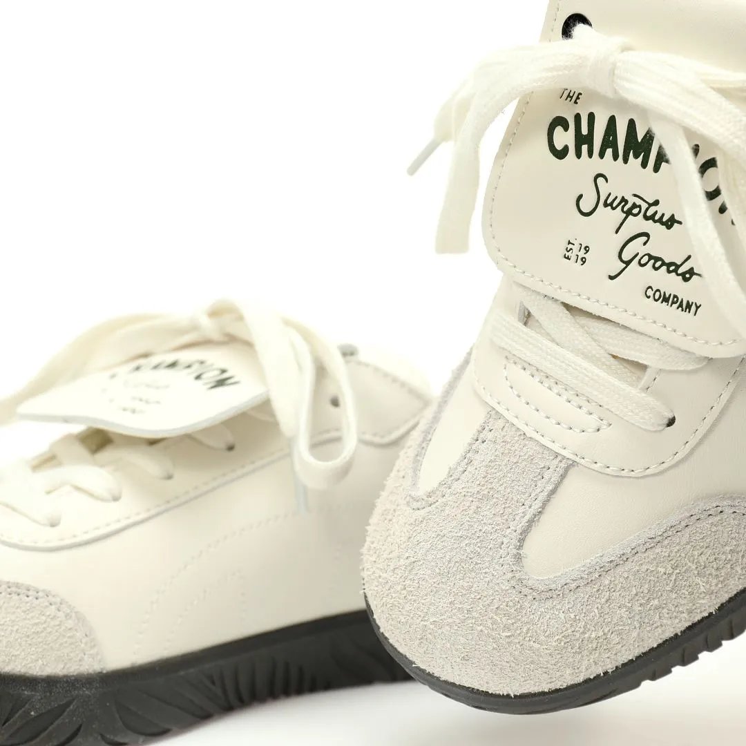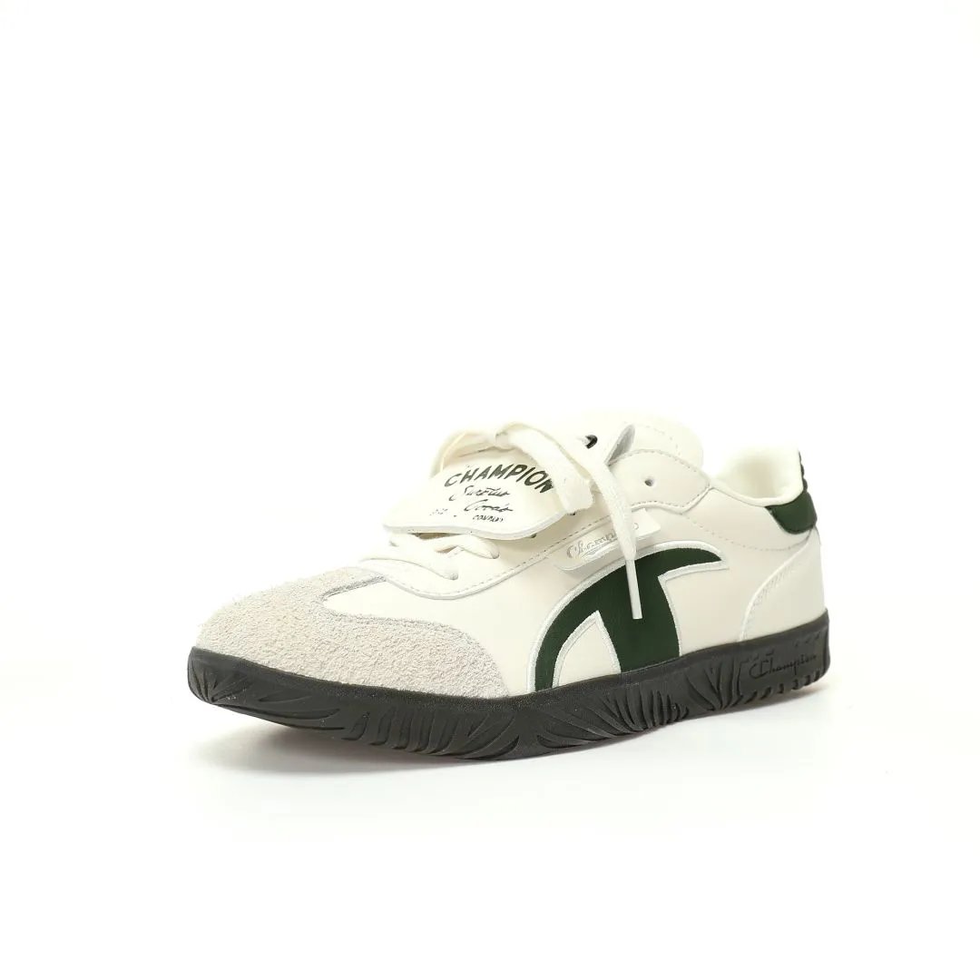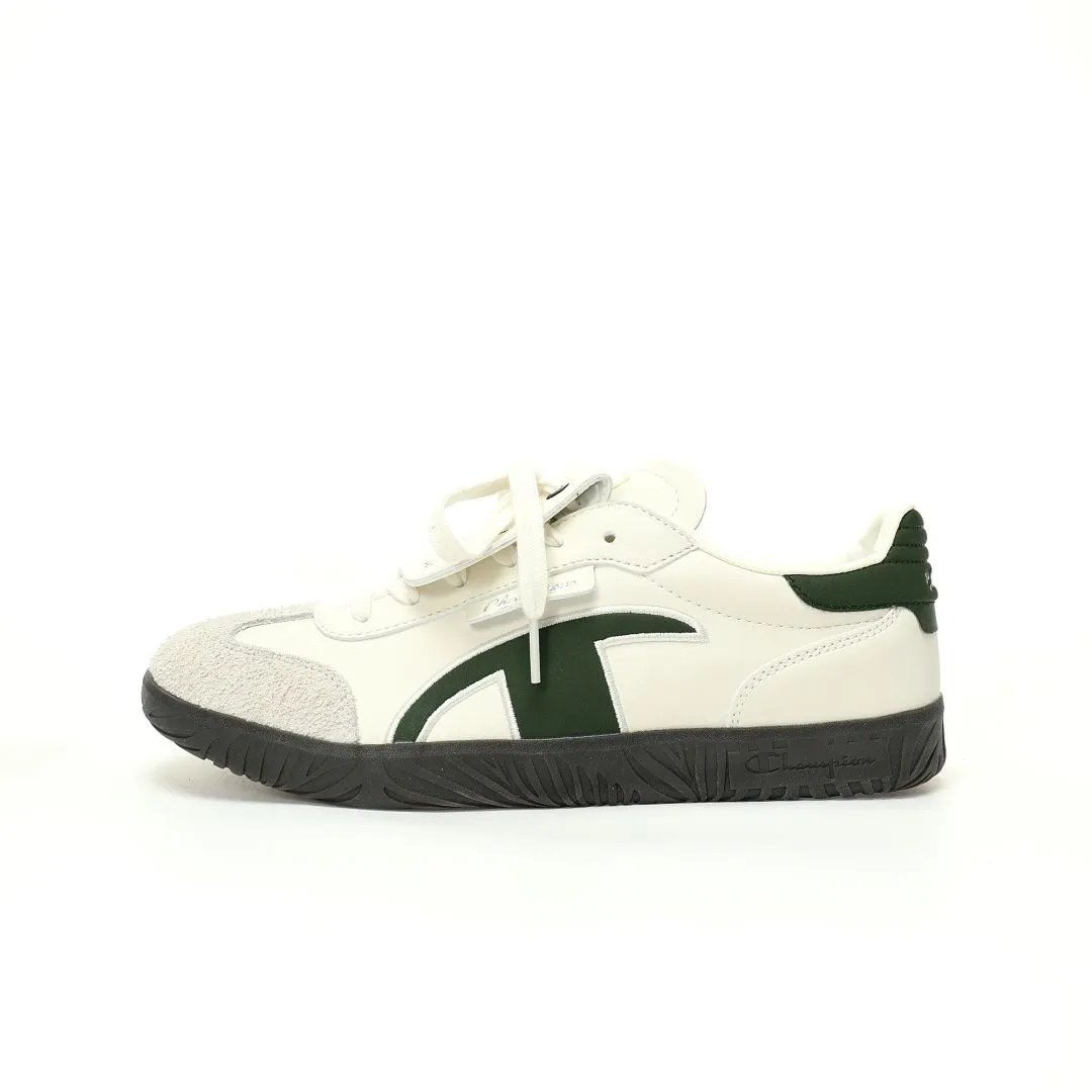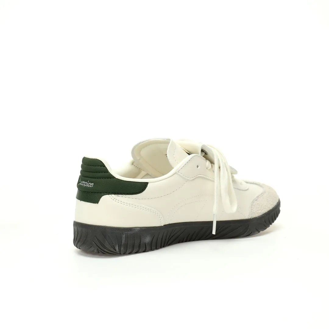 Champion TTrainer Men's Low-Top Sneakers feature leather beige dark green upper, eco-friendly sea glass EVA insole & durable rubber outsole.
