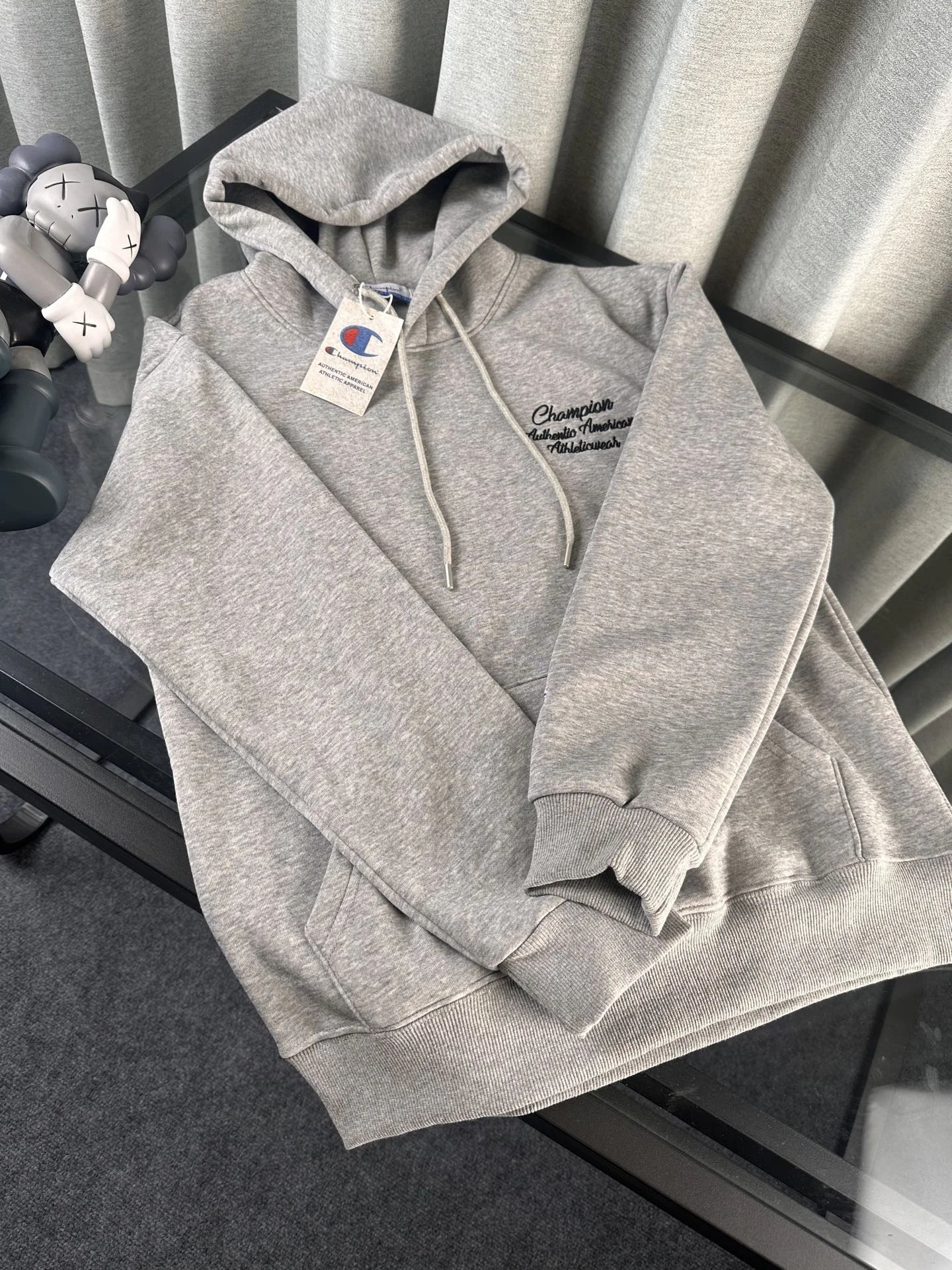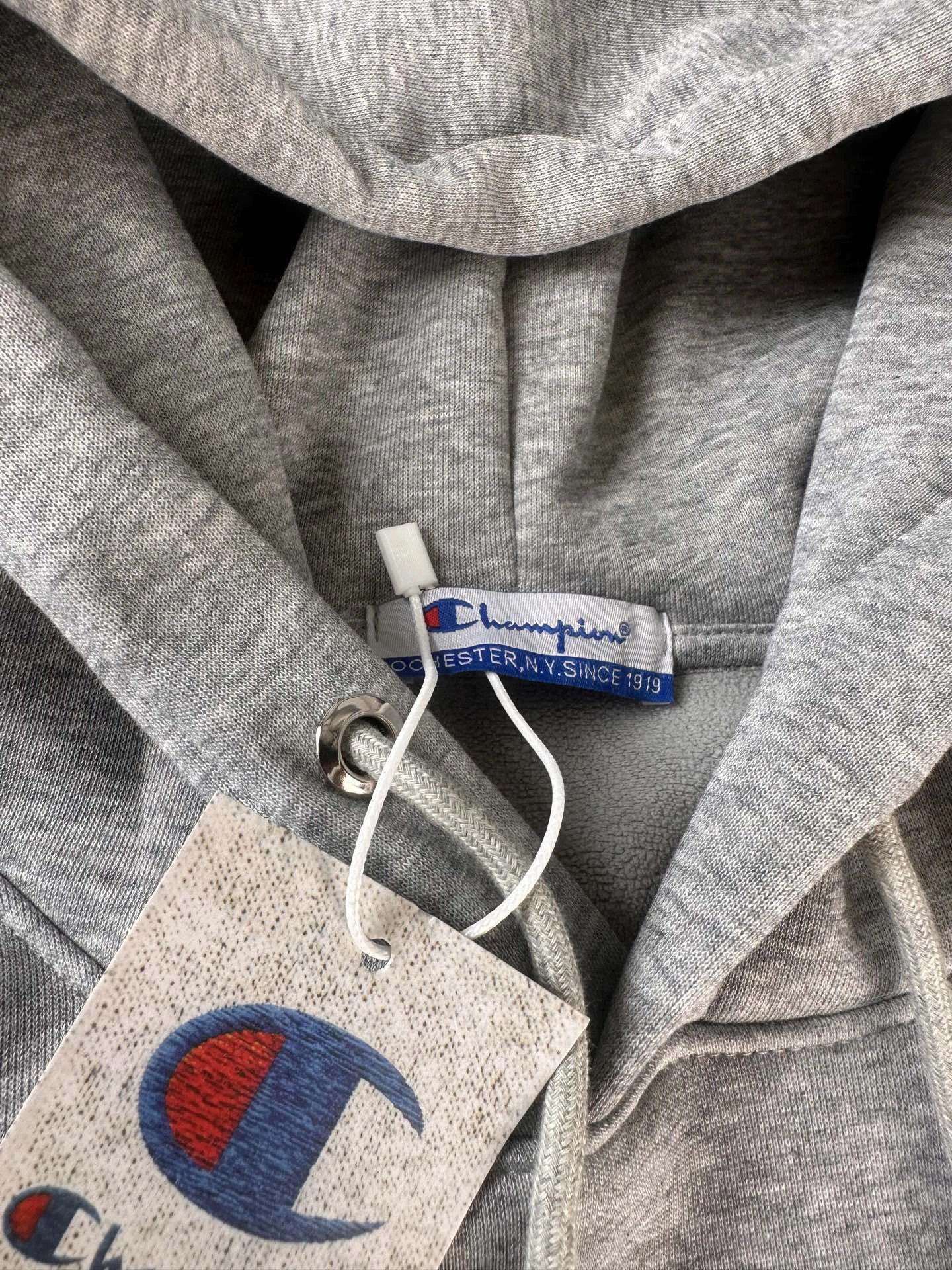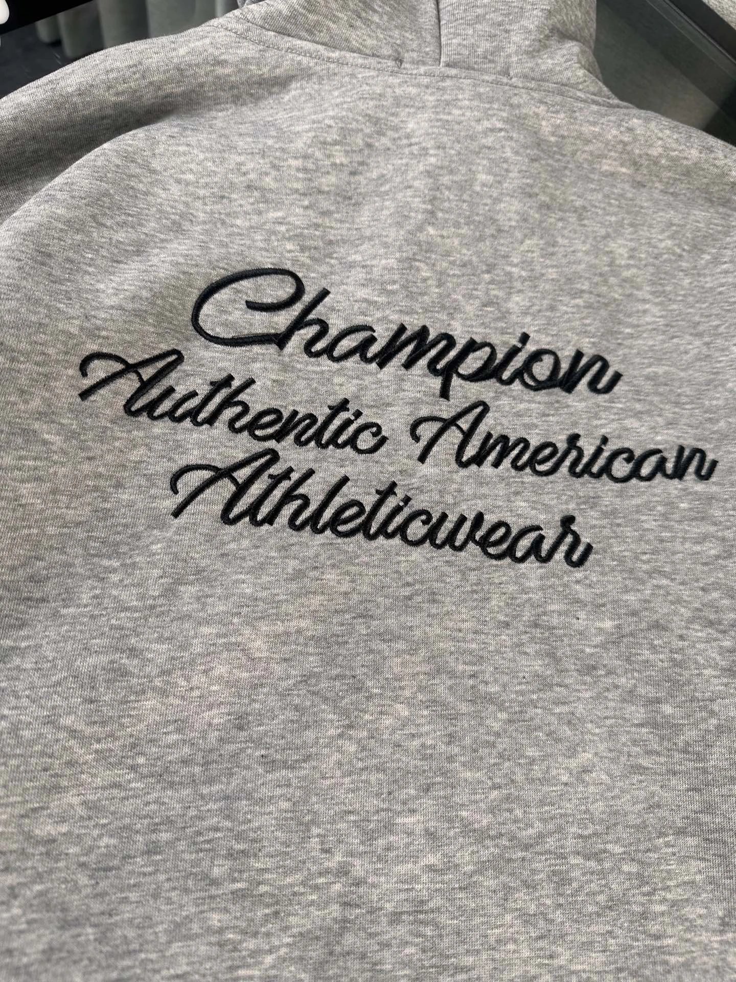 Champion Gray Embroidered College Style Hoodie.