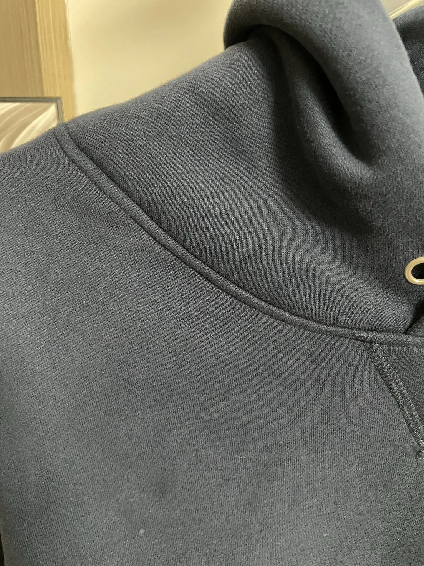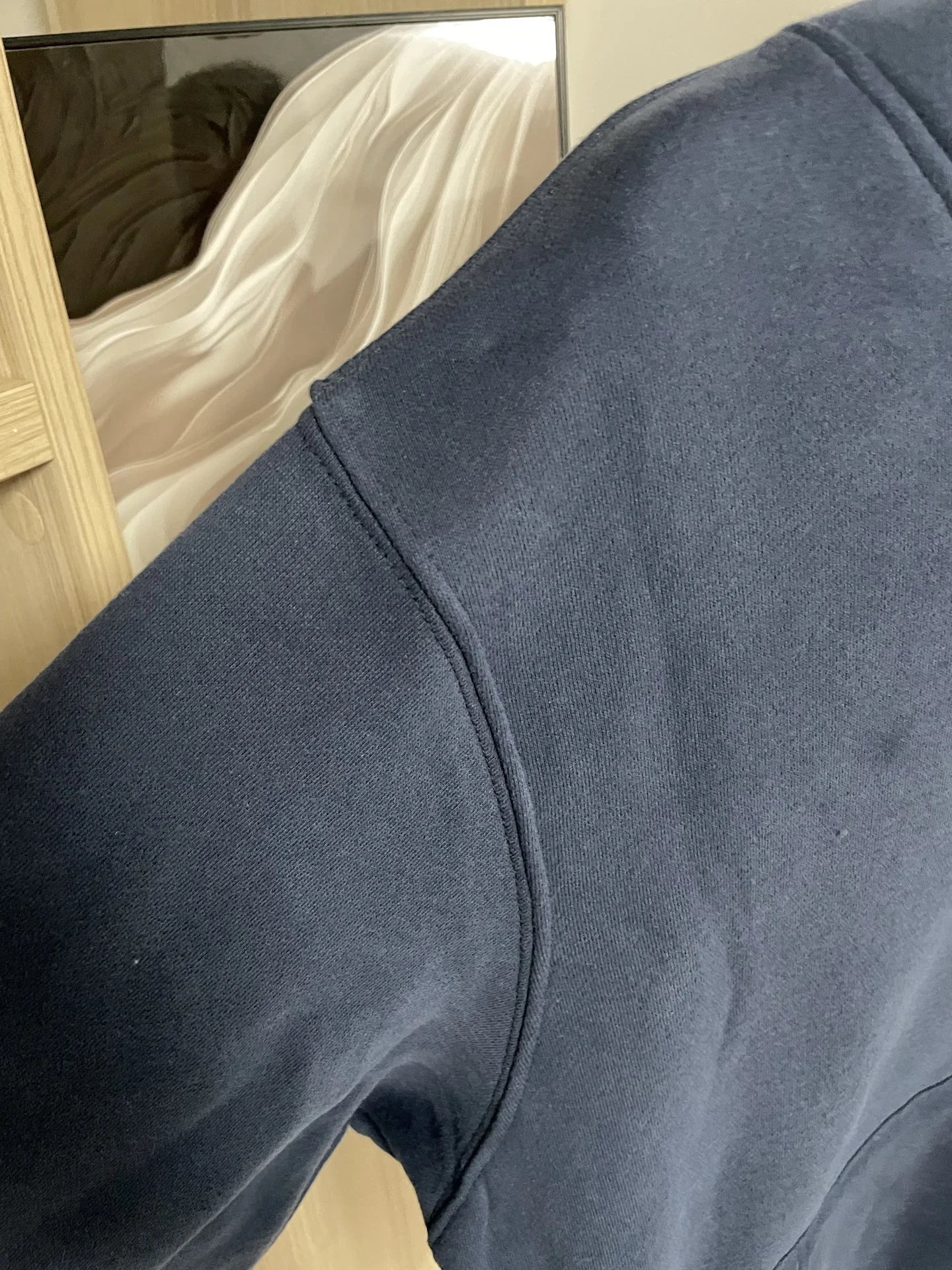 450g fleece fabric, custom label; classic logo embroidery (Bernina needles) on chest & arm.