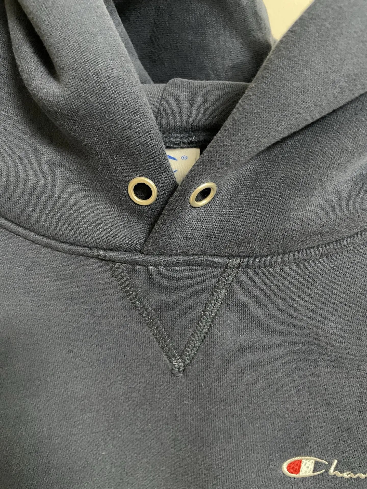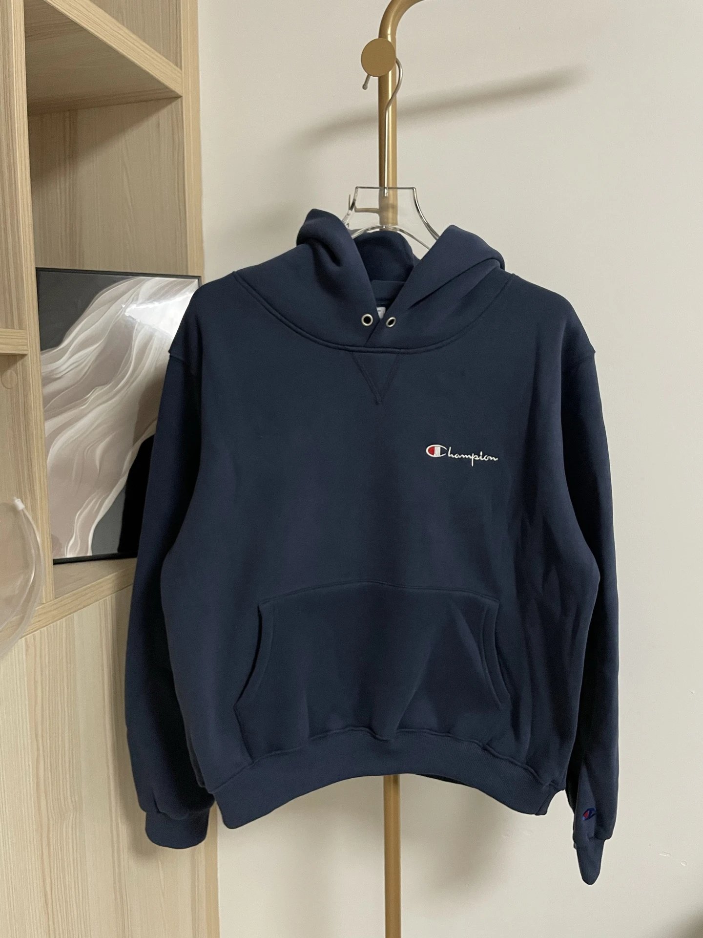 Champion GJ11 25SS Fleece Hoodie: Short unisex design for fall/winter, cleanfit style with correct waist fit.
