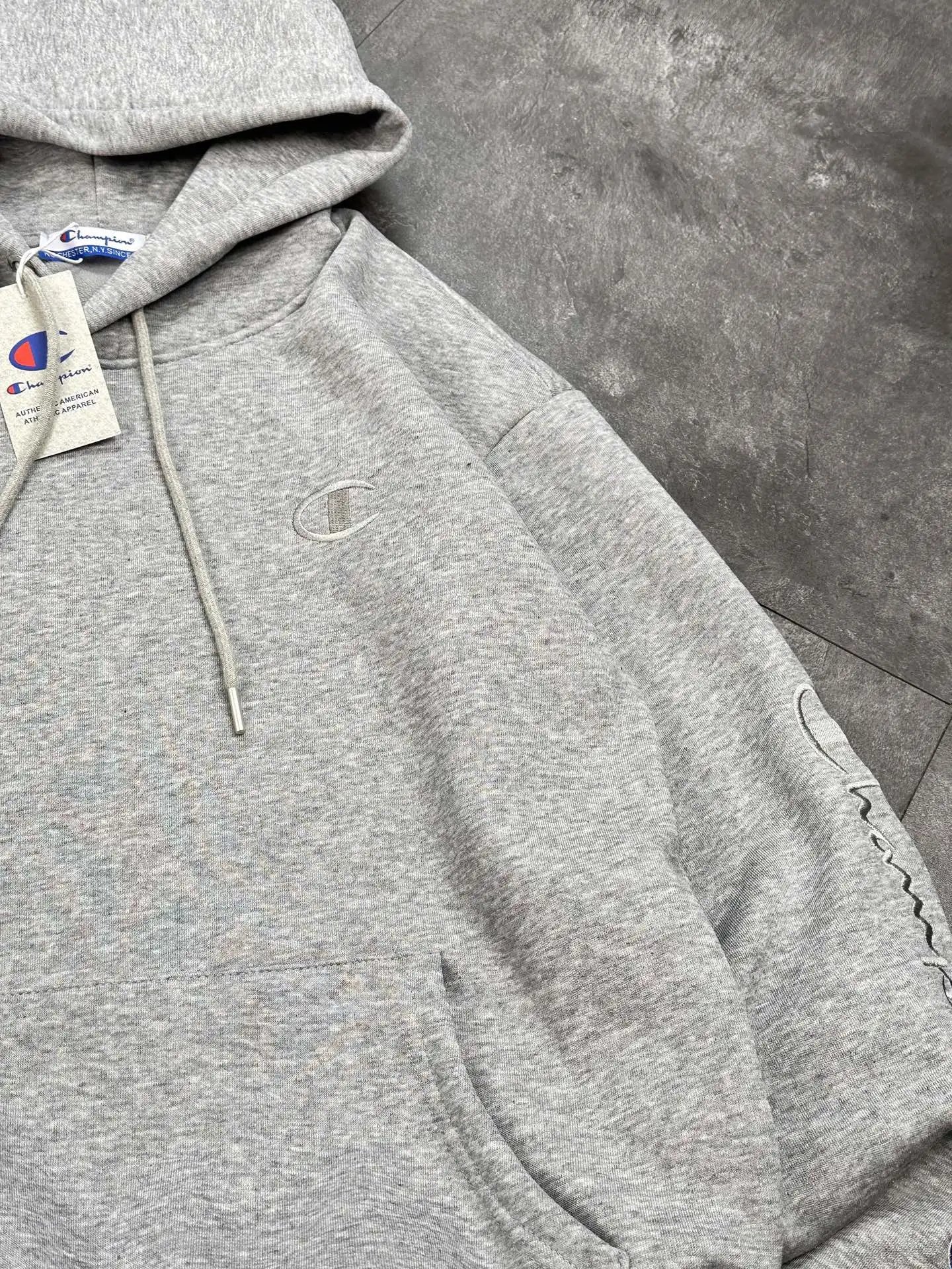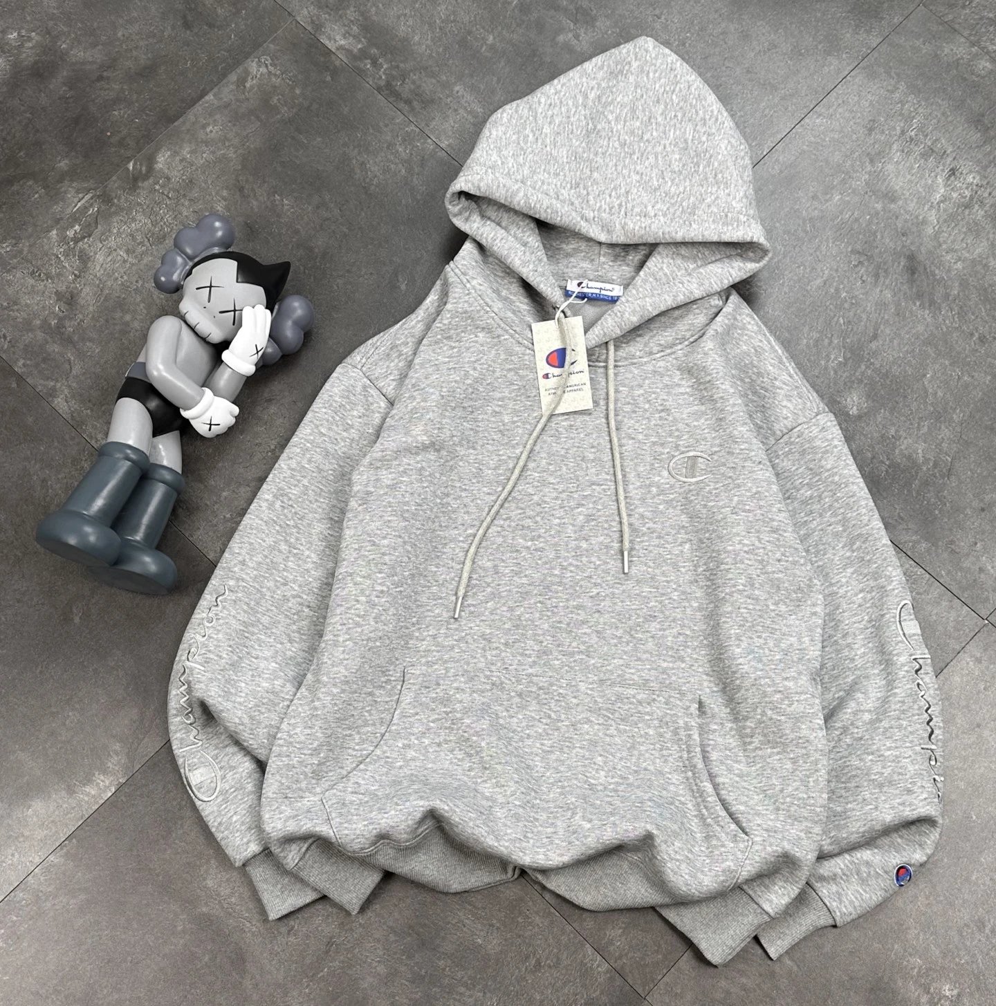 Champion Embroidered College Style Fleece Hoodies: Japanese原版, eco-friendly tags, custom dyed fabric, 3 tags, 3D embroidery, side rib detail.