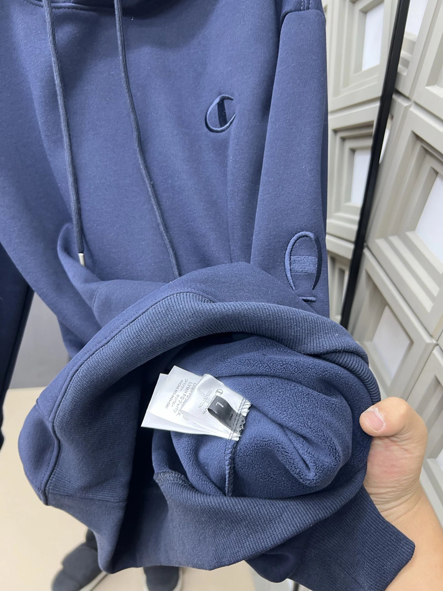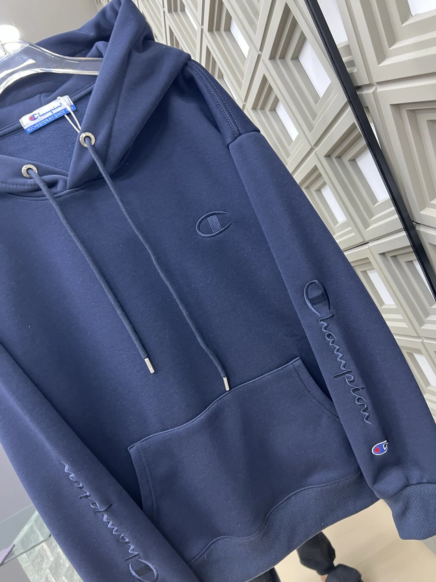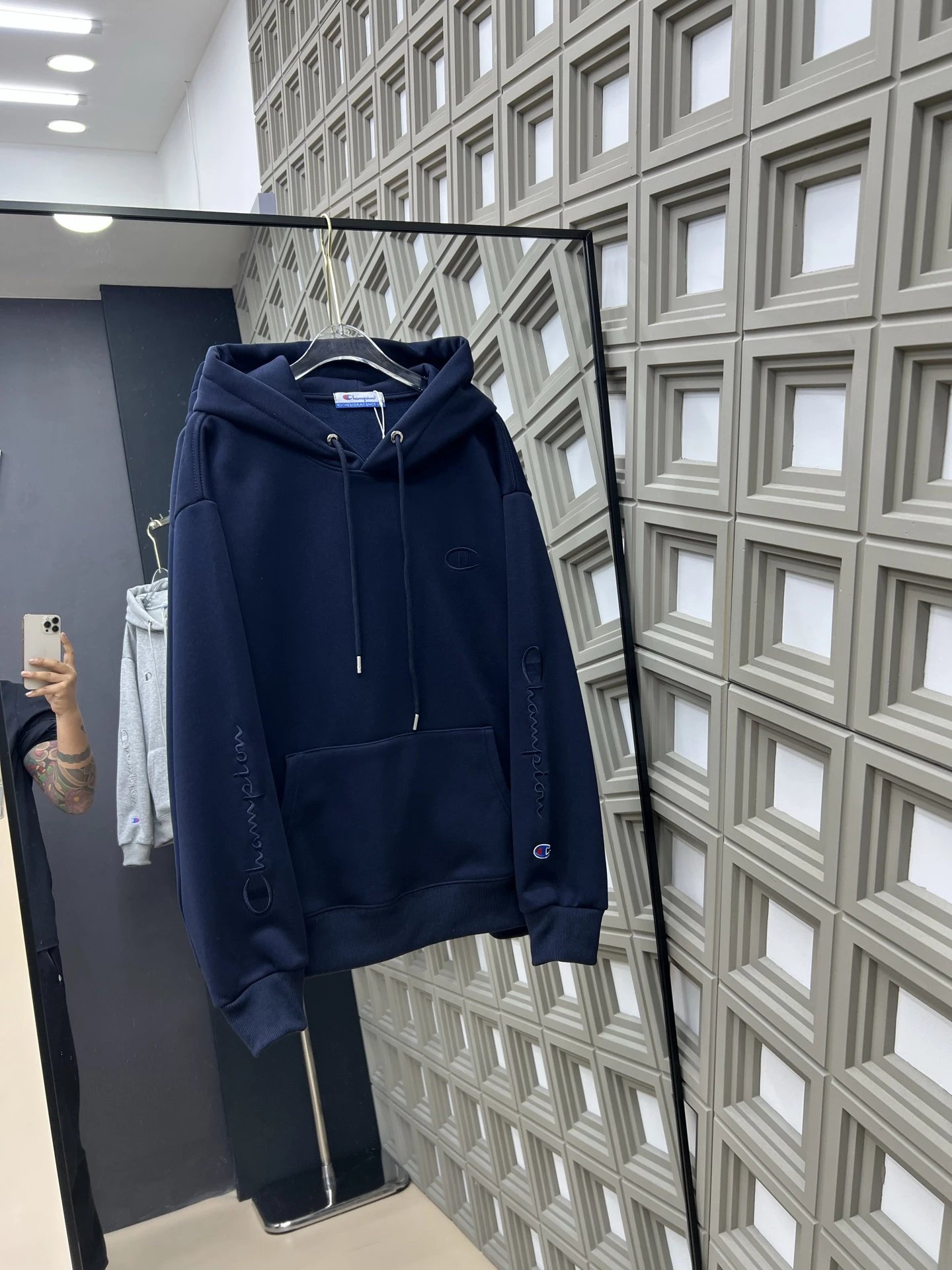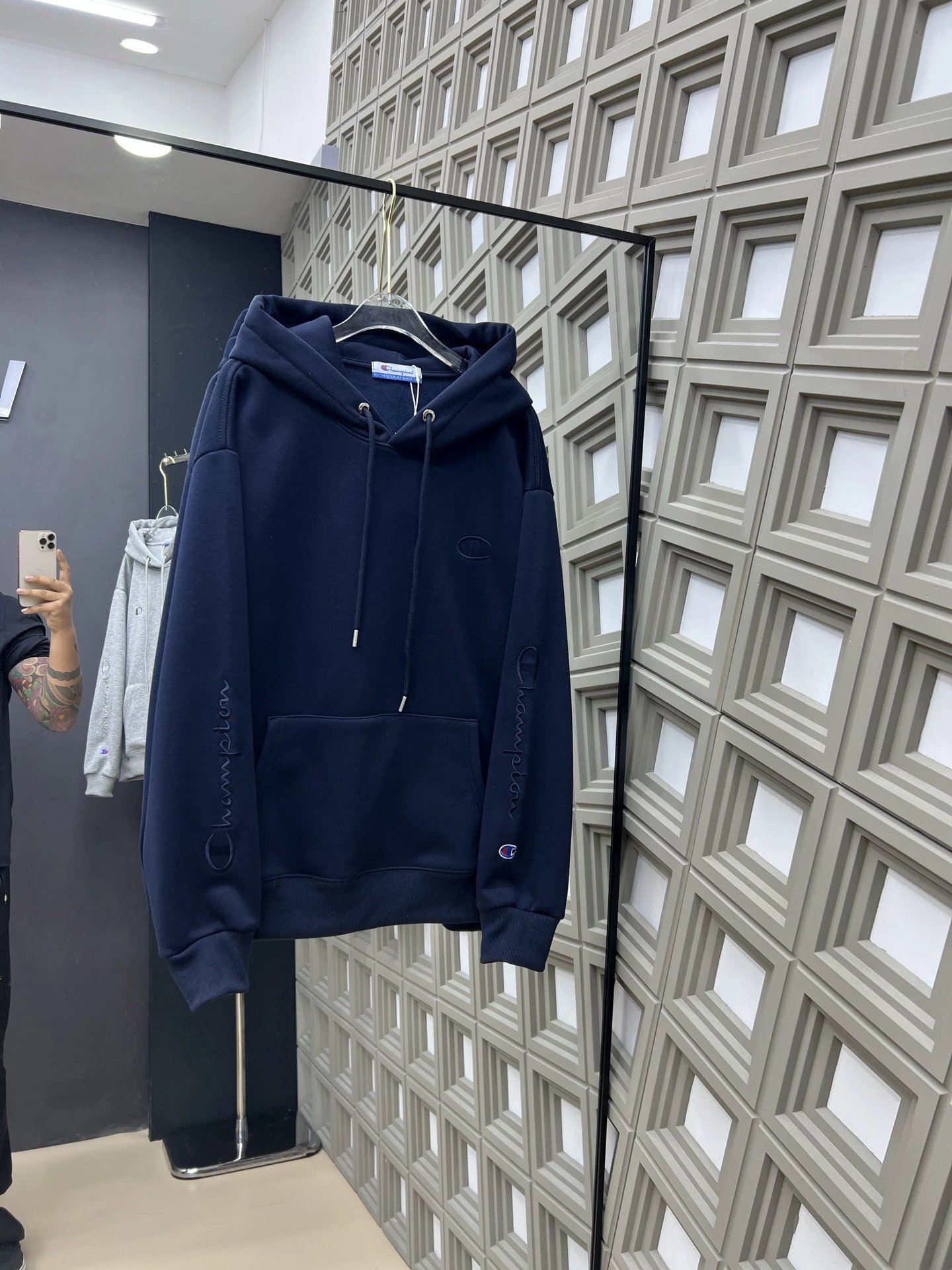 Champion New Embroidered Kirin Arm Fleece-Lined Hoodie features soft fleece lining for warmth and stylish embroidered Kirin arm design.