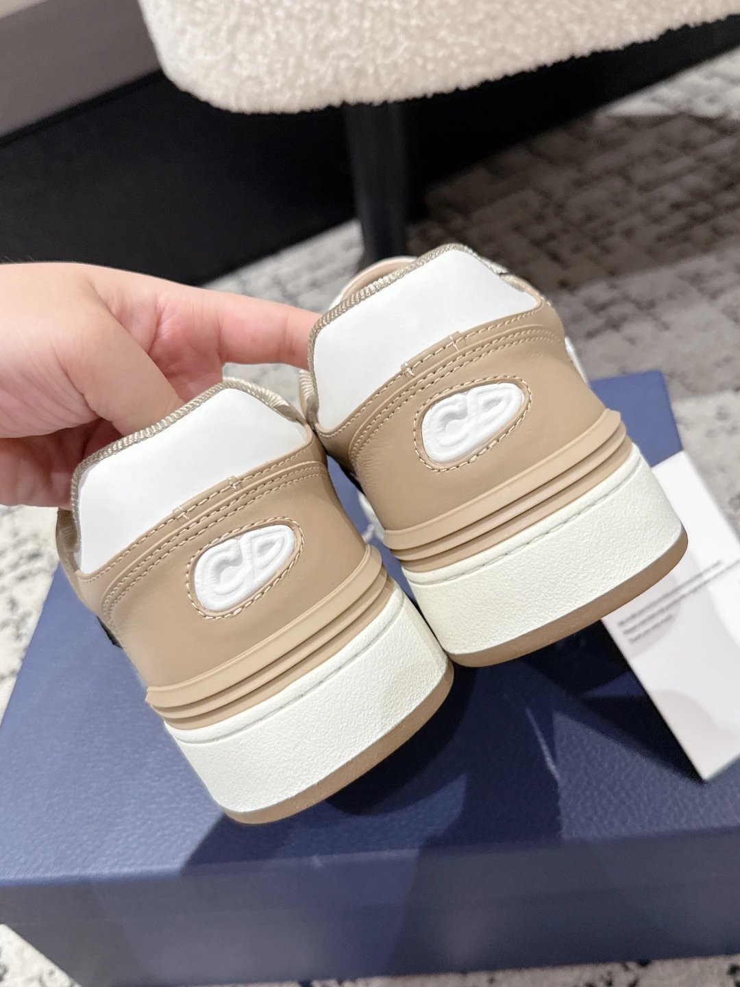 Gray/White calf leather, Oblique print, breathable lining, 3CM TPU sole.