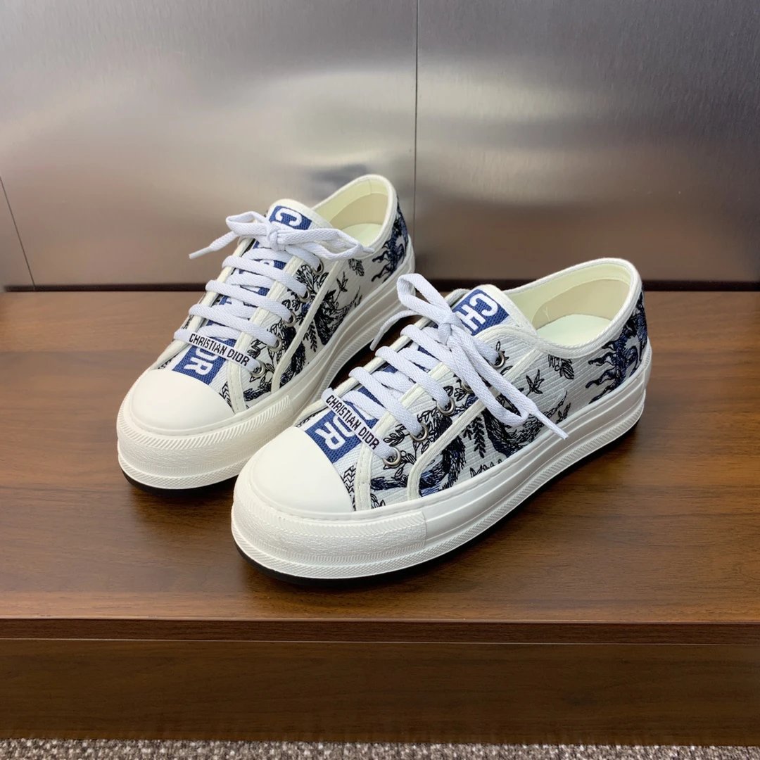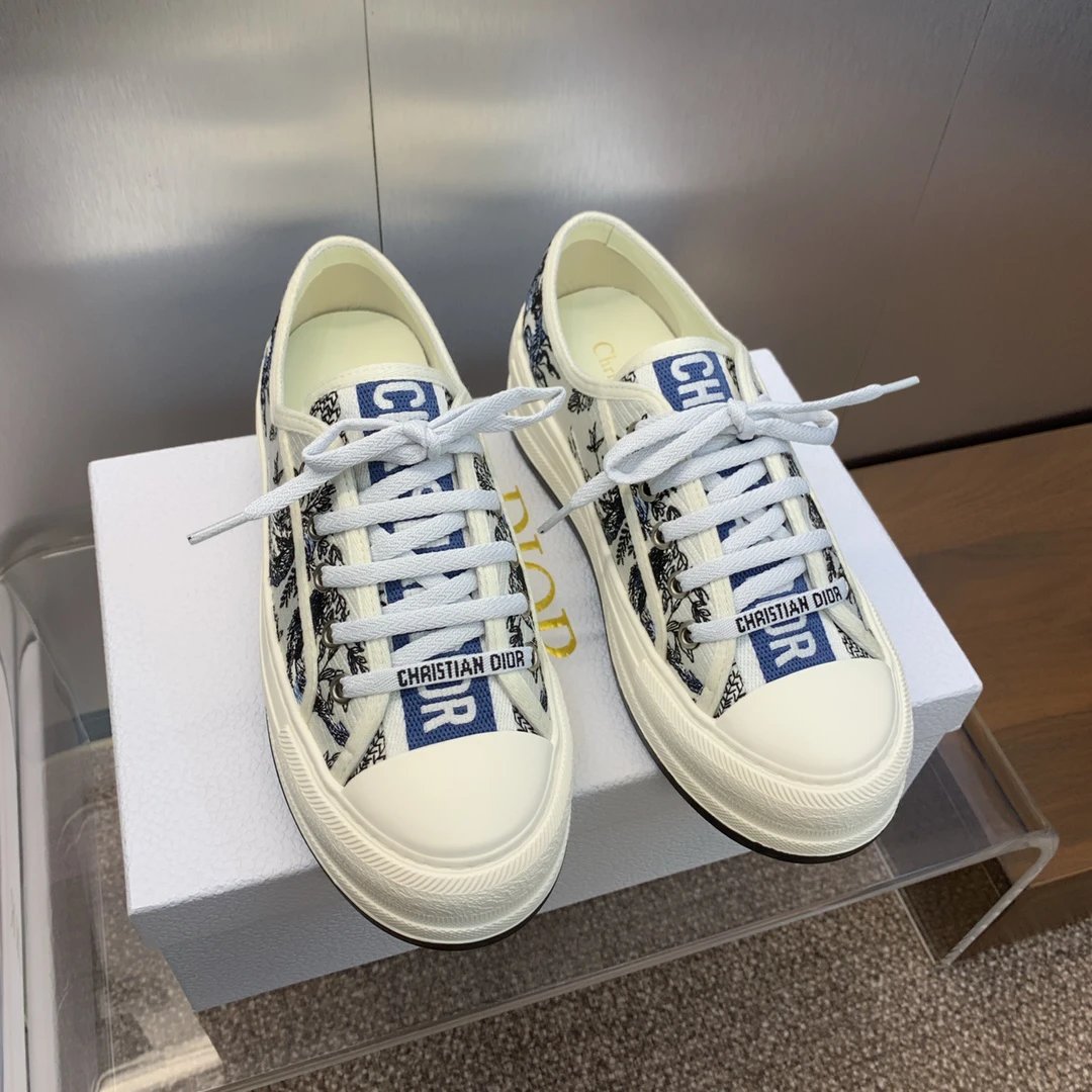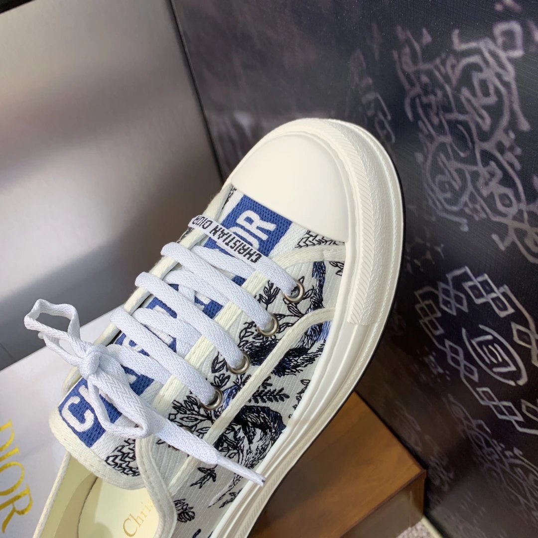 Dior 2023 Early Spring Walk’n Dior Oblique Couple Low-Top Sneakers with color-block canvas & oblique logo embroidery (top version).