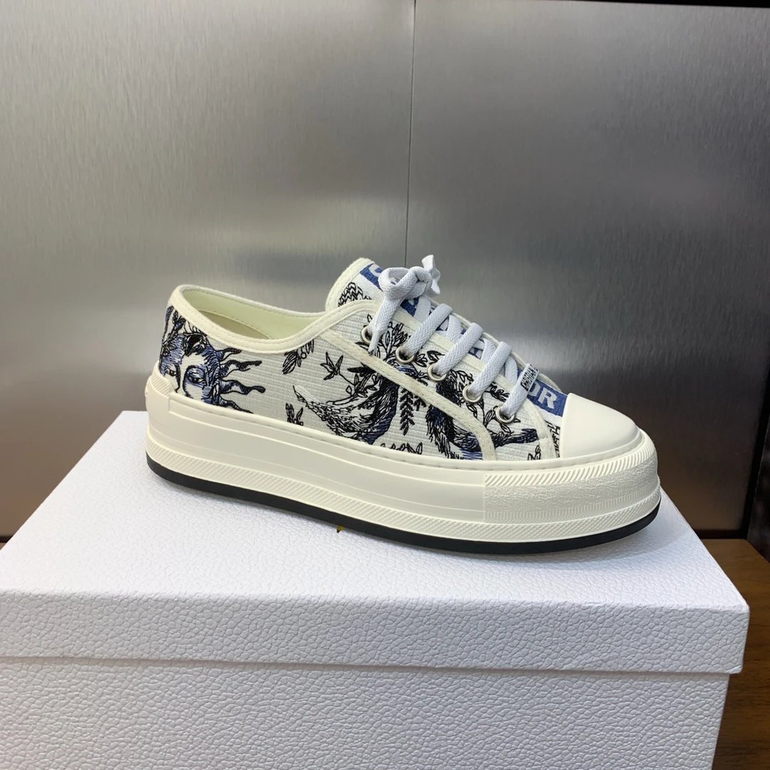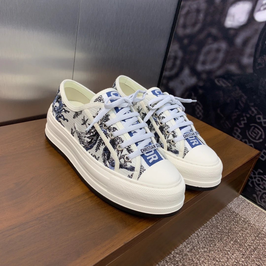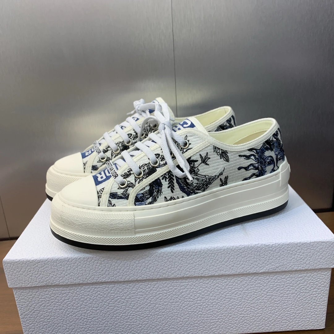 Dior 2023 Early Spring Walk’n Dior Oblique Couple Low-Top Sneakers with color-block canvas & oblique logo embroidery (top version).