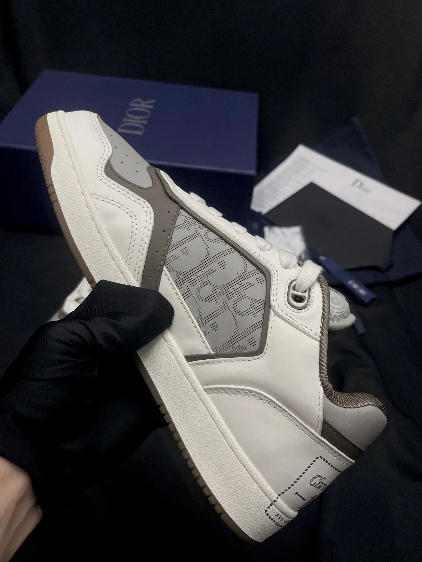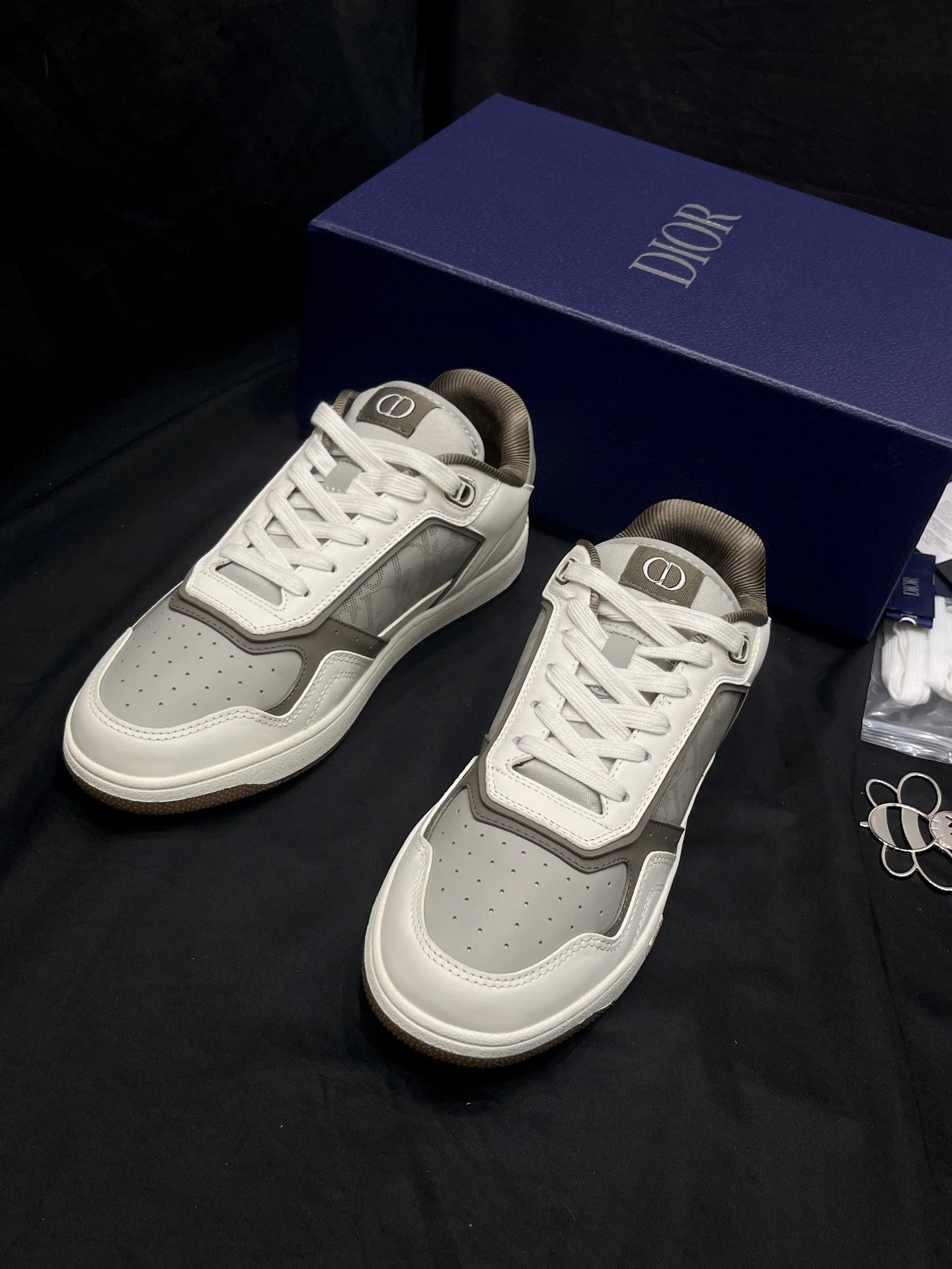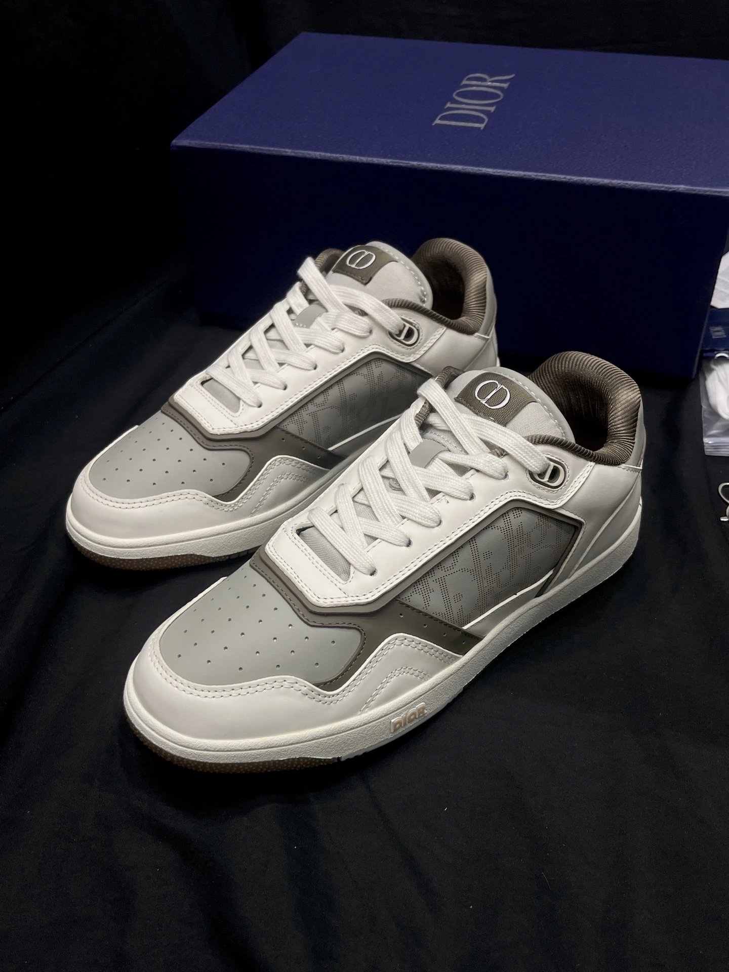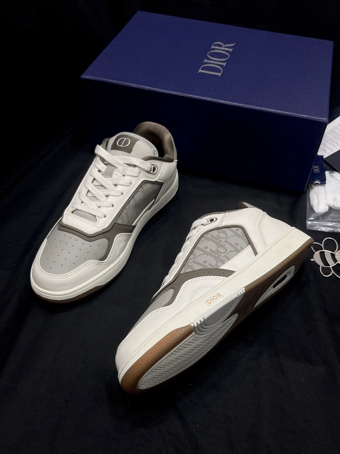 Dior B27 Unisex High-Top Sneakers: Upgraded top version with black smooth calf leather & Oblique print inserts.