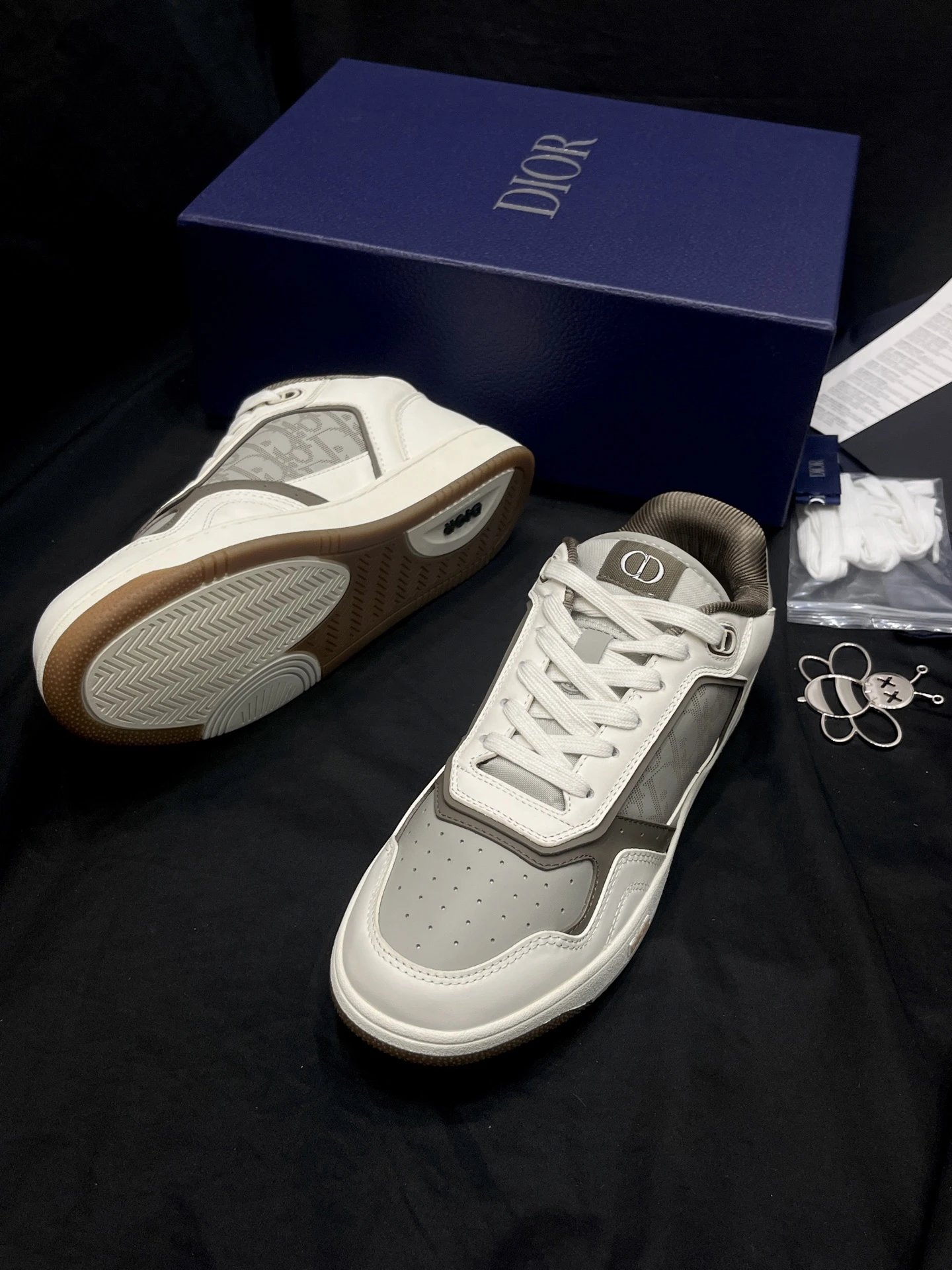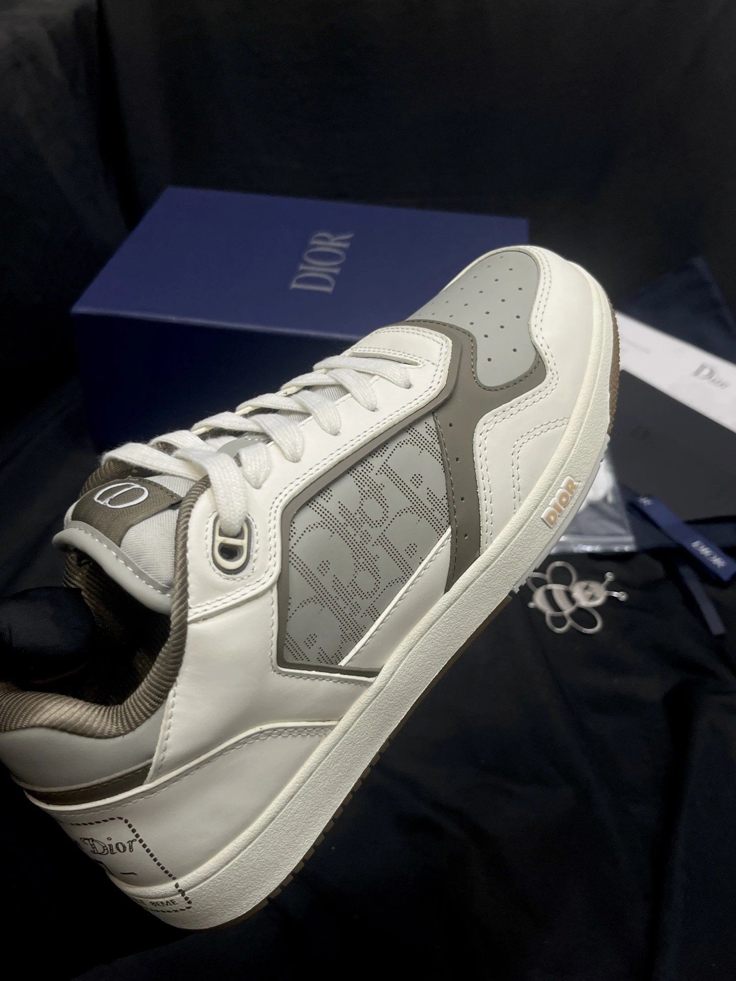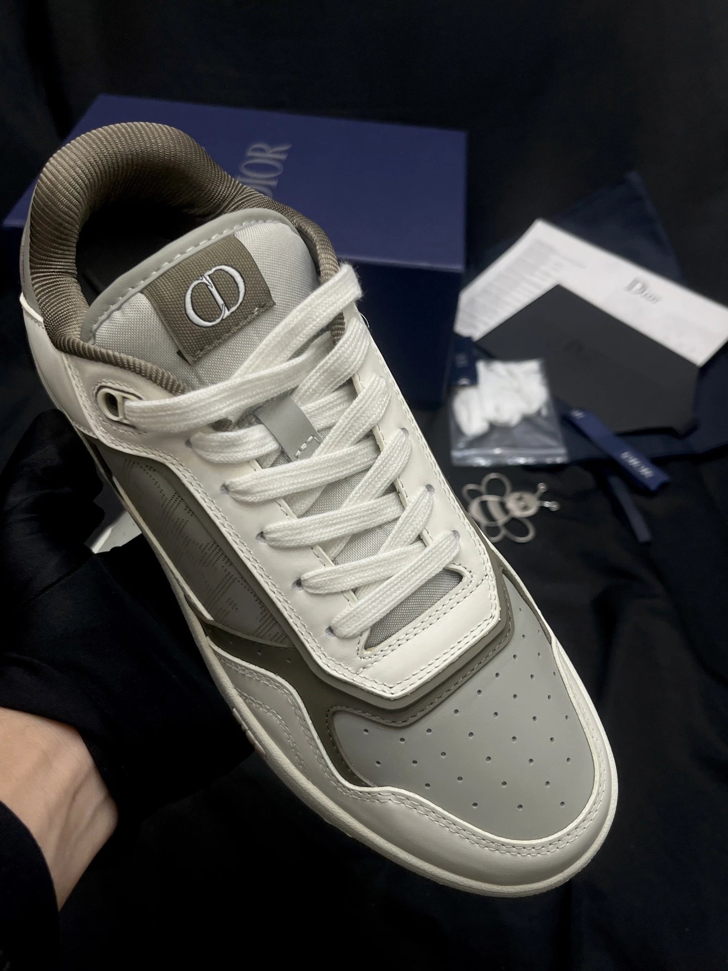 Dior B27 Unisex High-Top Sneakers: Upgraded top version with black smooth calf leather & Oblique print inserts.
