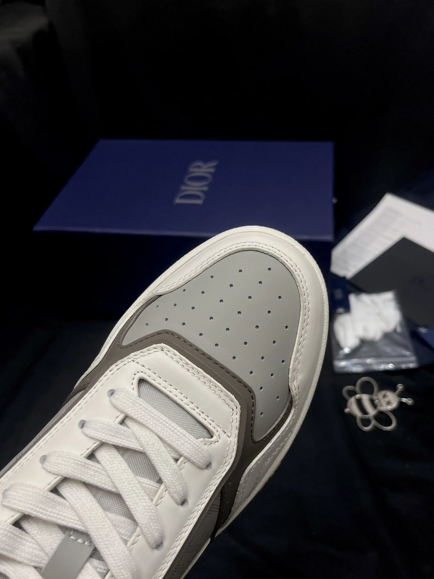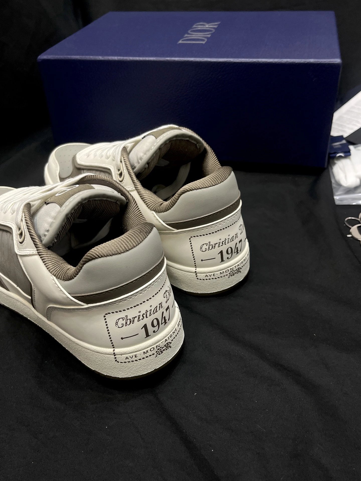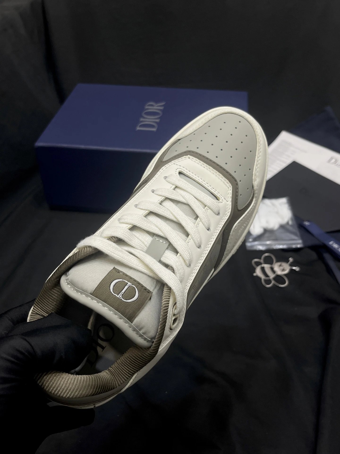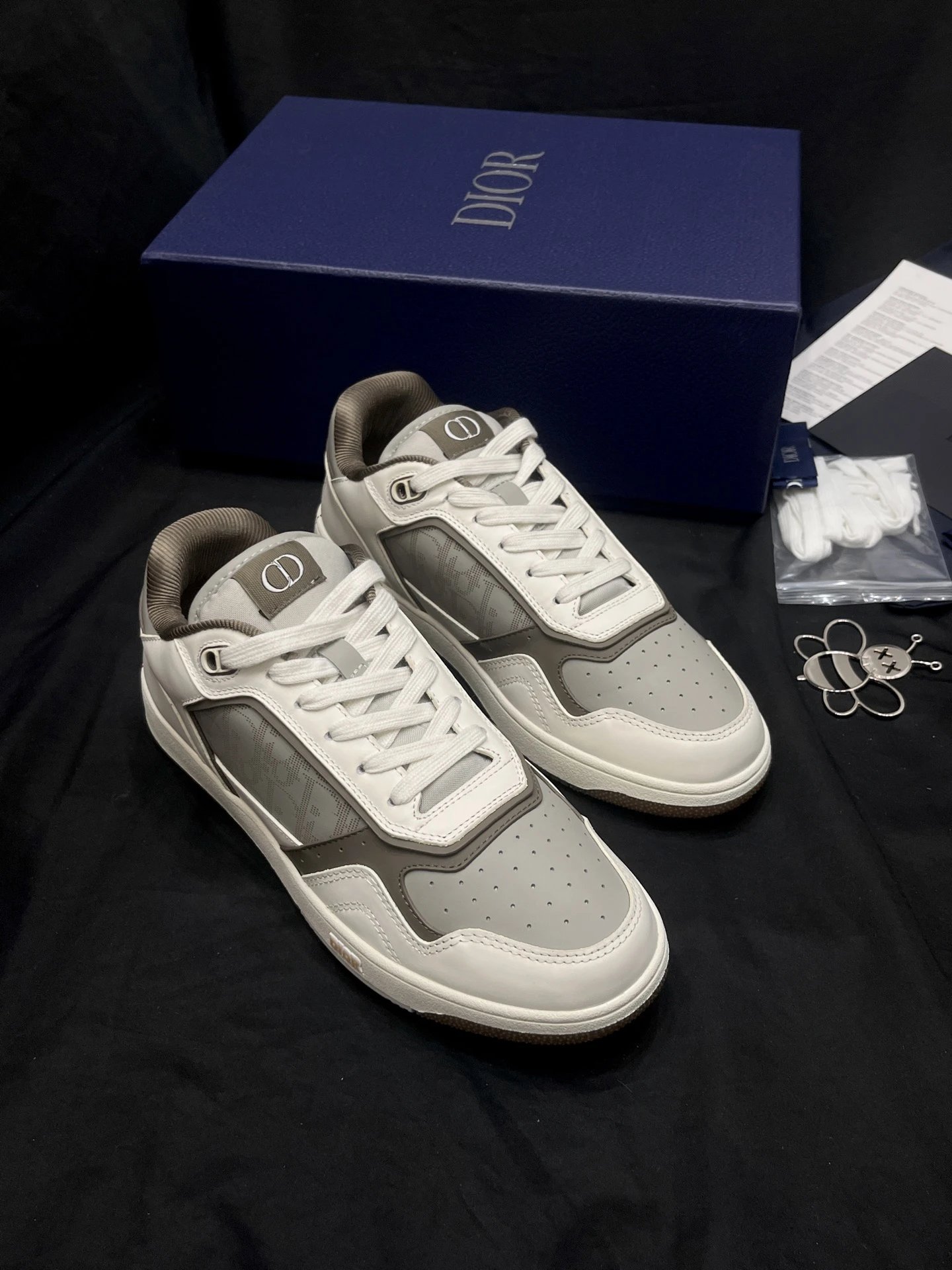 Dior B27 Unisex High-Top Sneakers: Upgraded top version with black smooth calf leather & Oblique print inserts.