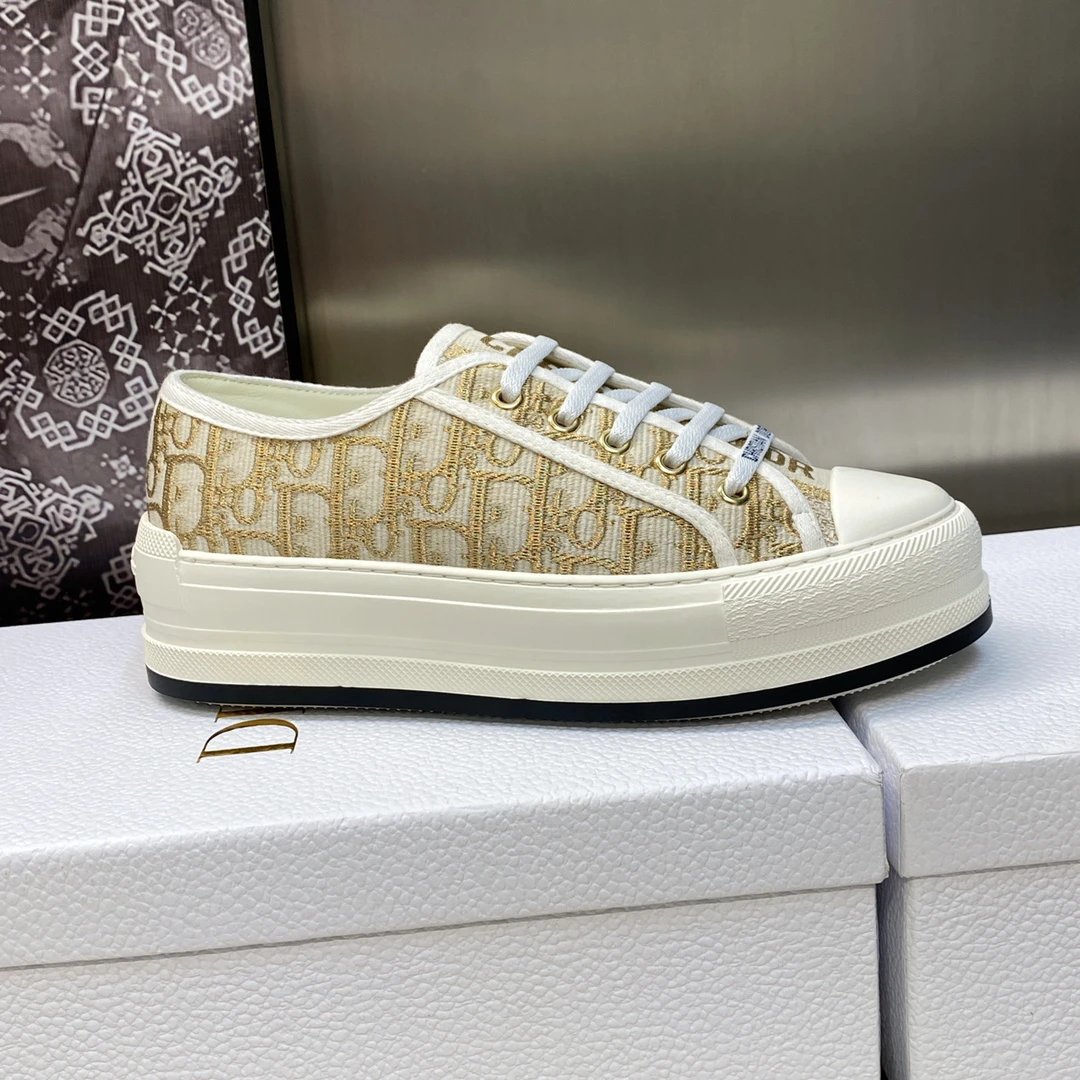 Dior 2023 Early Spring Walk'n Dior Oblique Unisex Platform Lace-Up Low-Top Sneakers, featuring oblique logo embroidery & color-block canvas.
