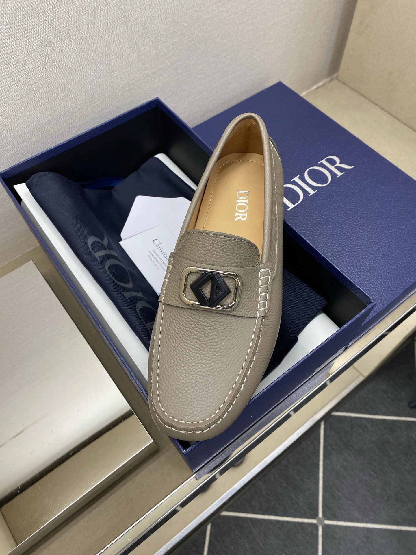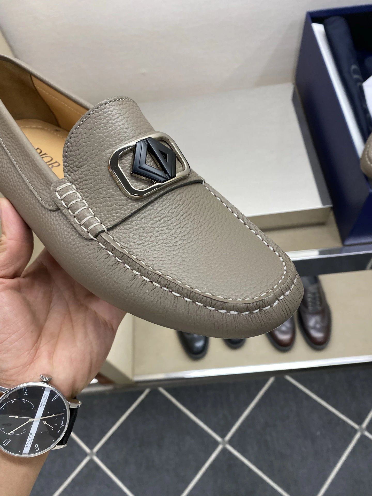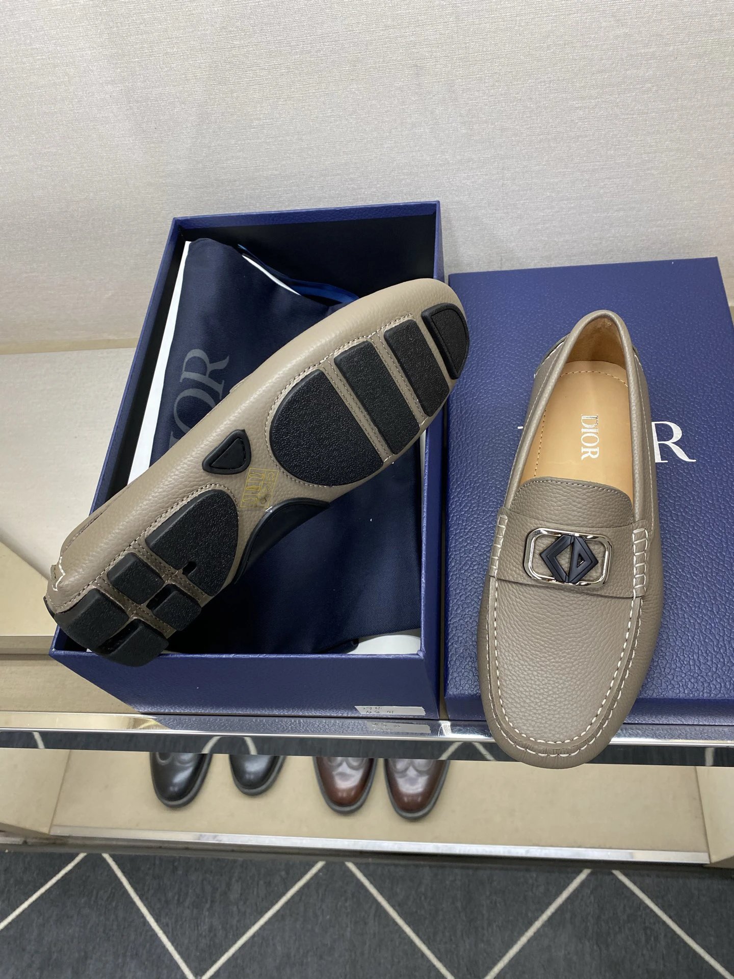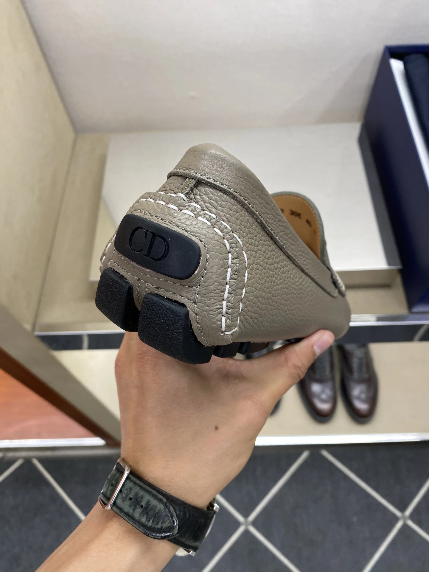 Dior Men's Pebble Sole Driving Shoes use premium grainy lychee calfskin upper.