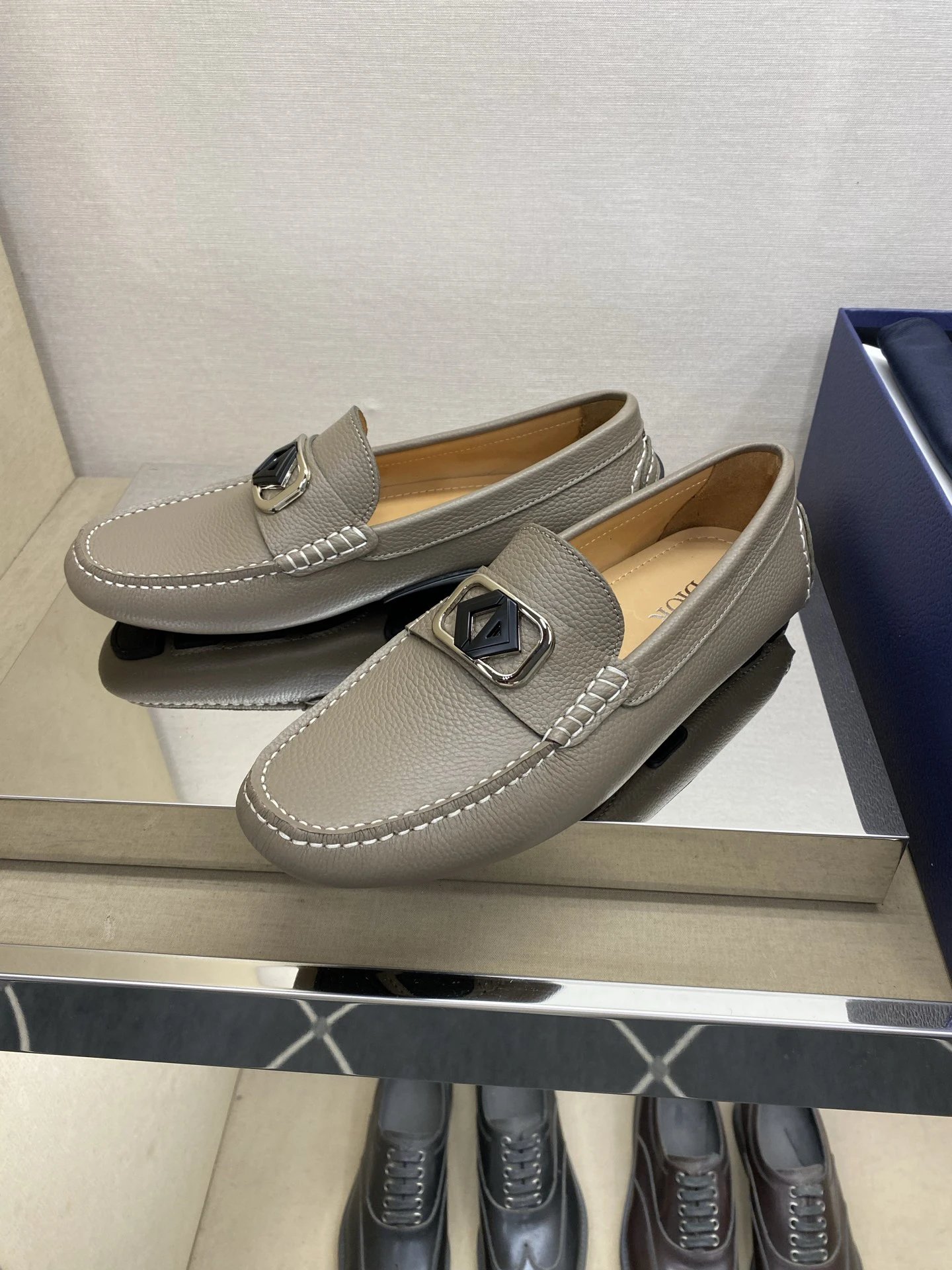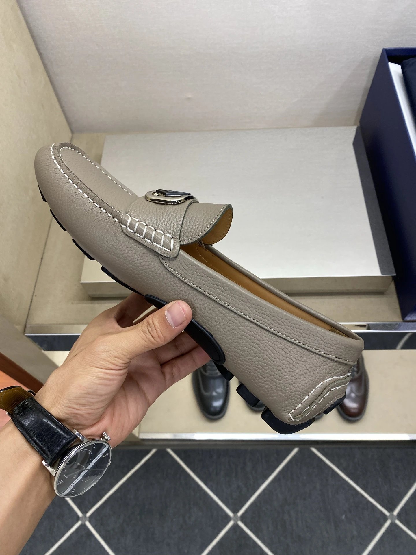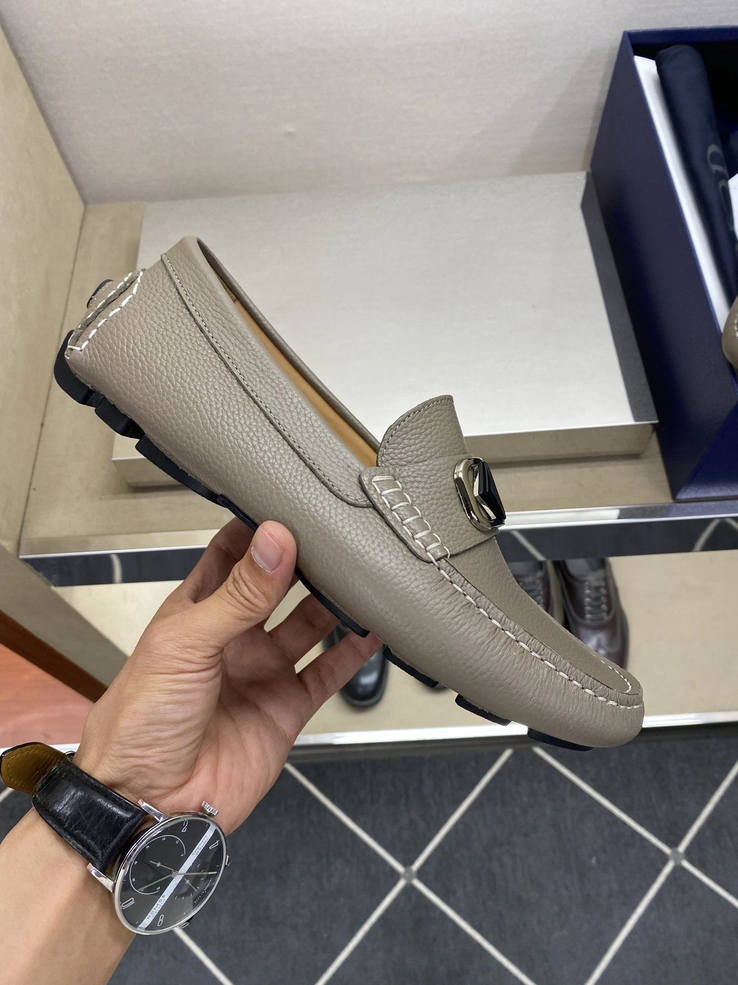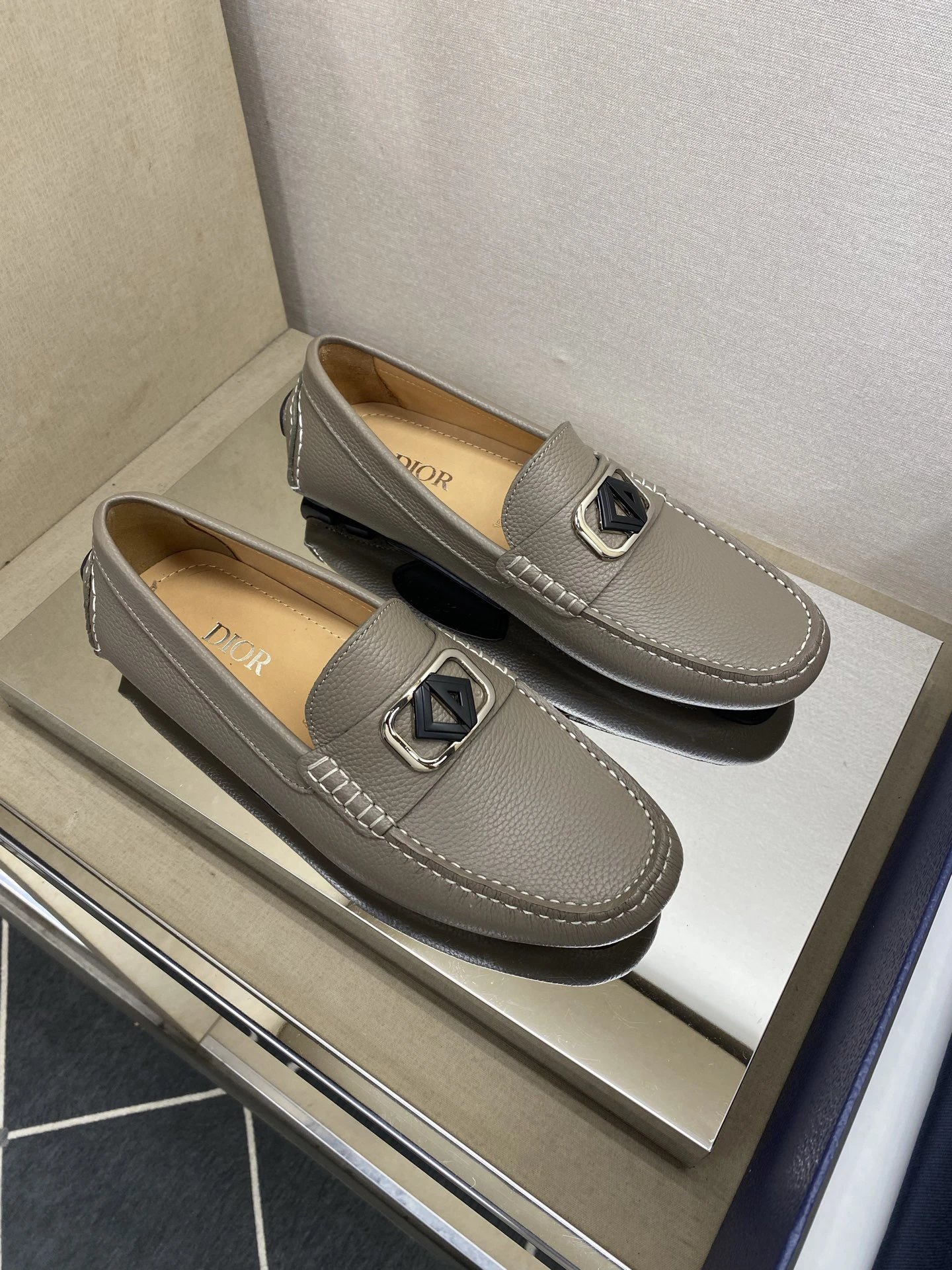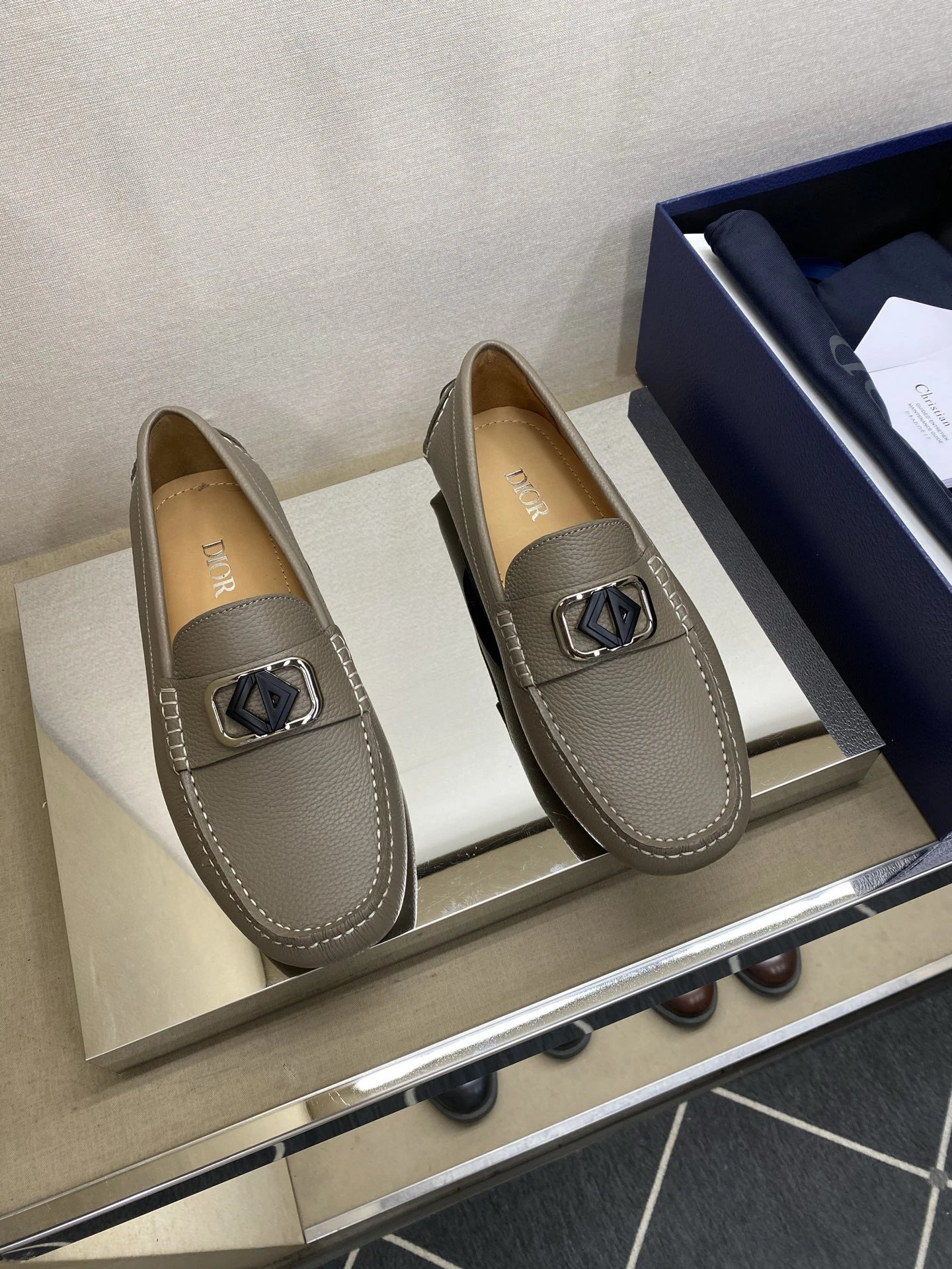 Dior Men's Pebble Sole Driving Shoes use premium grainy lychee calfskin upper.