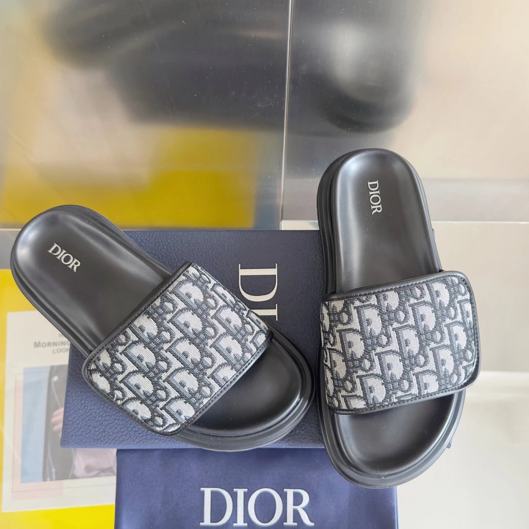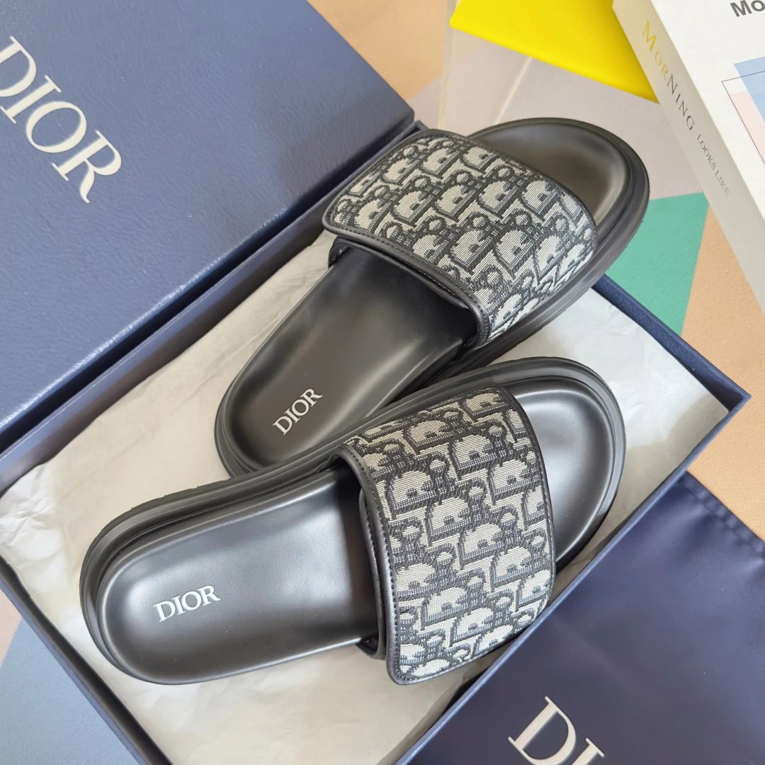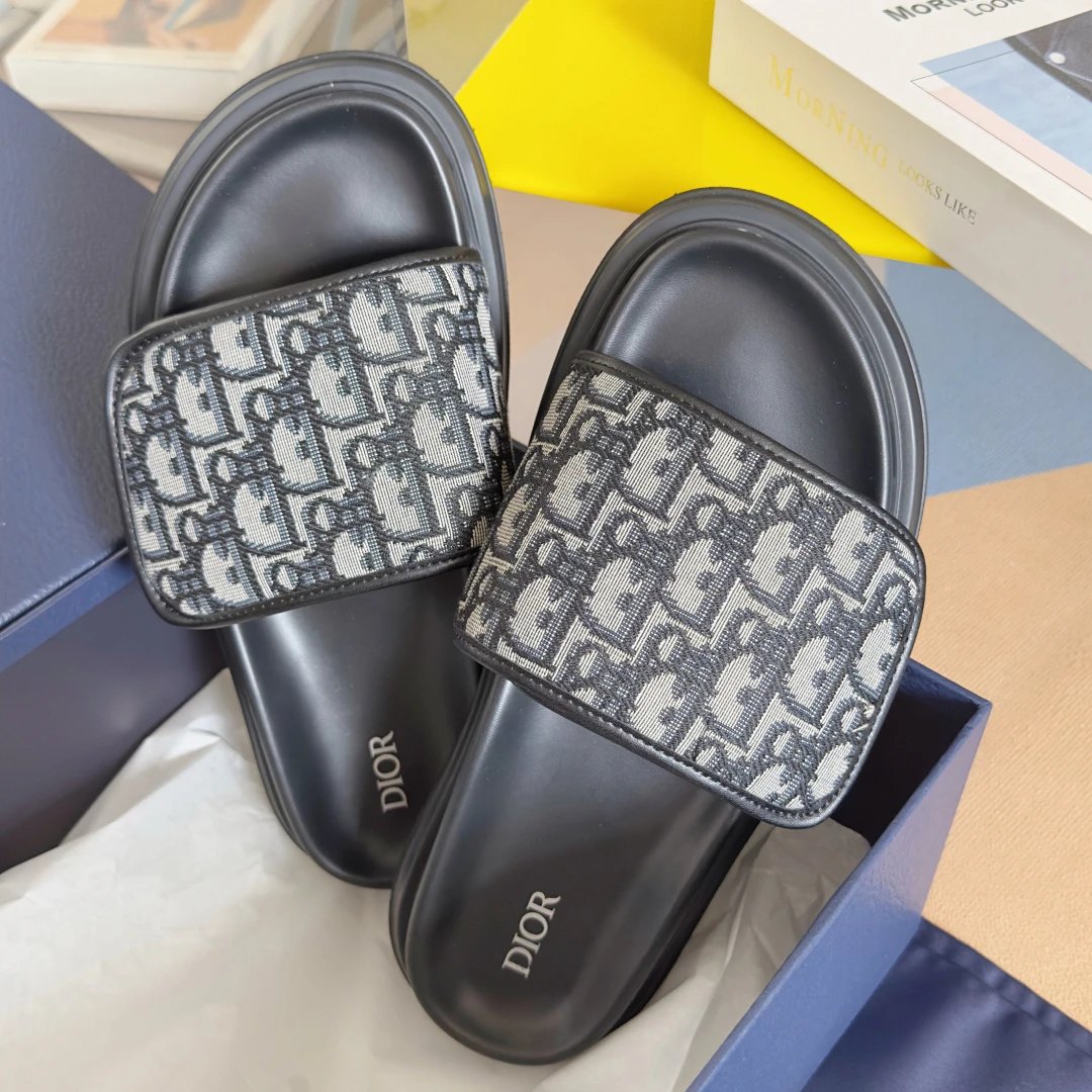 Dior Aqua Men's Black Oblique Print Sandals (2025 Fall) feature magic strap & thick sole.