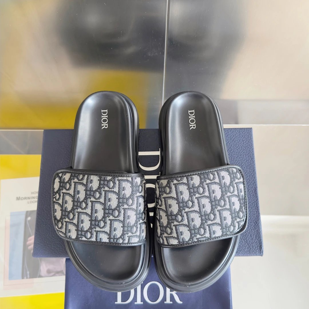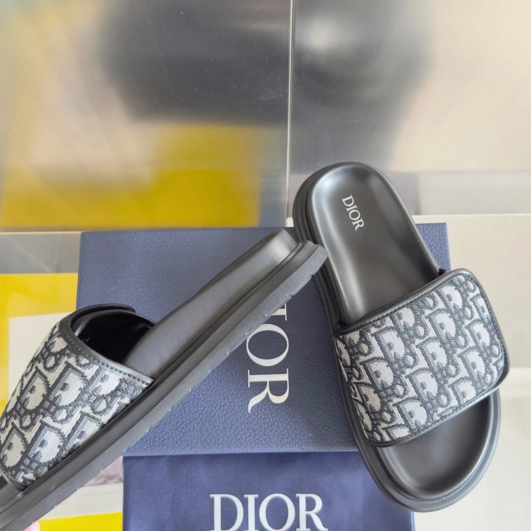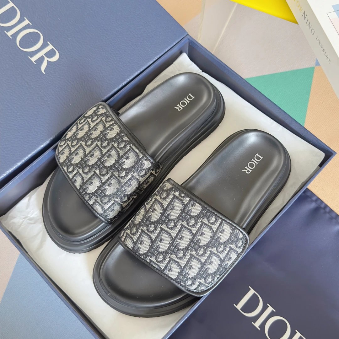 Dior Aqua Men's Black Oblique Print Sandals (2025 Fall) feature magic strap & thick sole.