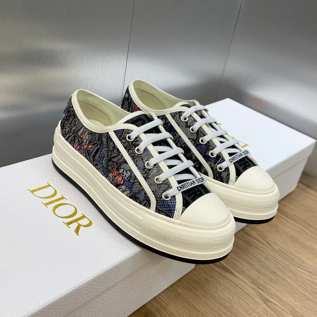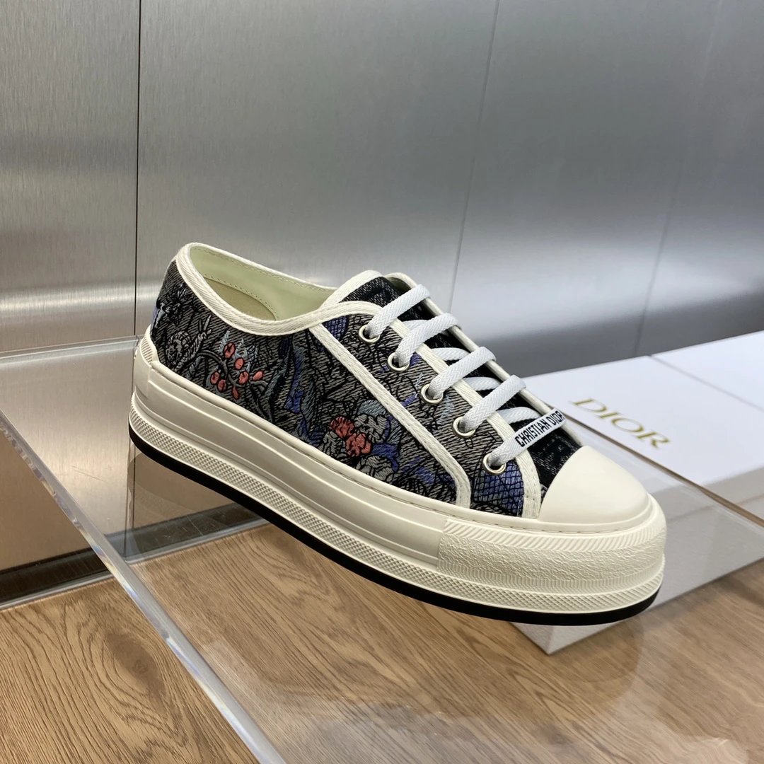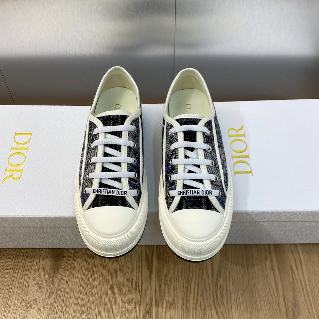 Dior 2023 Spring Summer latest couple thick sole lace up low top sneakers, Walk’n Dior Oblique jacquard logo embroidery color block white canvas casual shoes, top market version.
