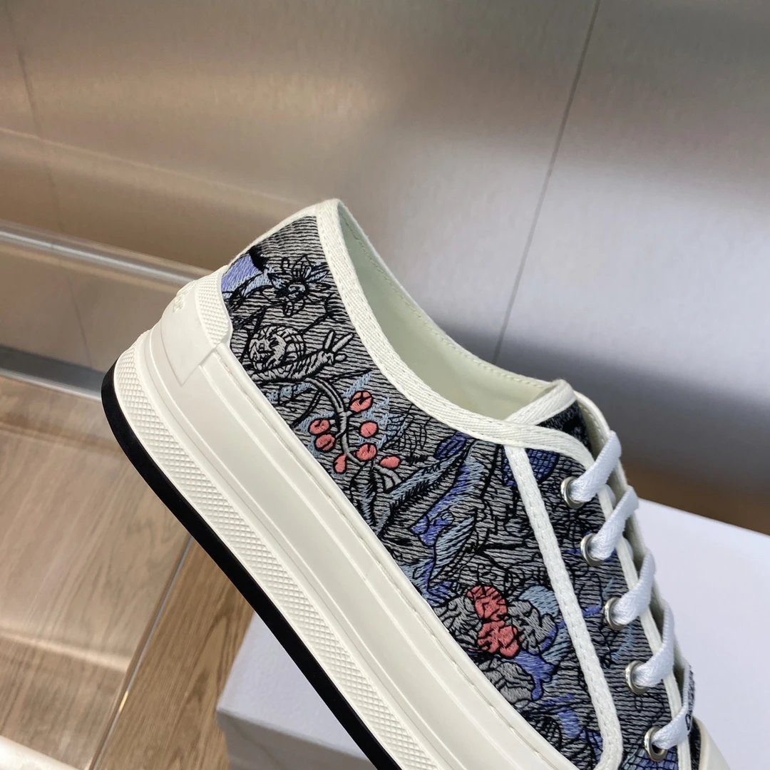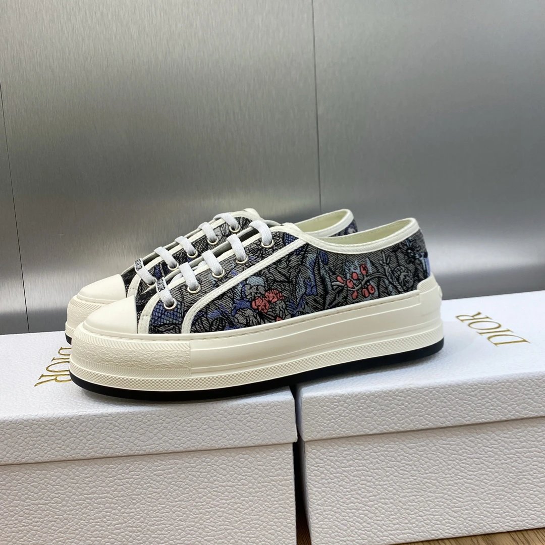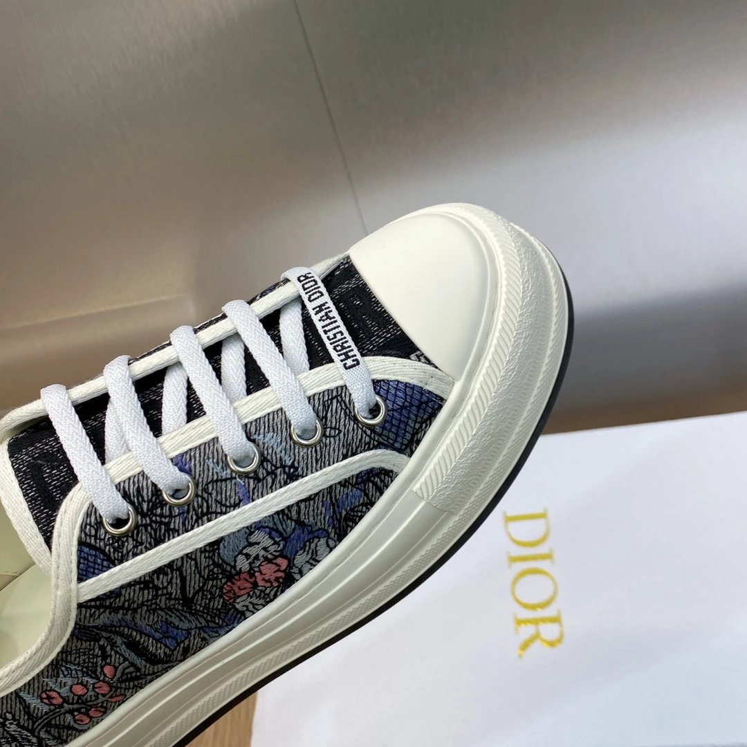 Dior 2023 Spring Summer latest couple thick sole lace up low top sneakers, Walk’n Dior Oblique jacquard logo embroidery color block white canvas casual shoes, top market version.