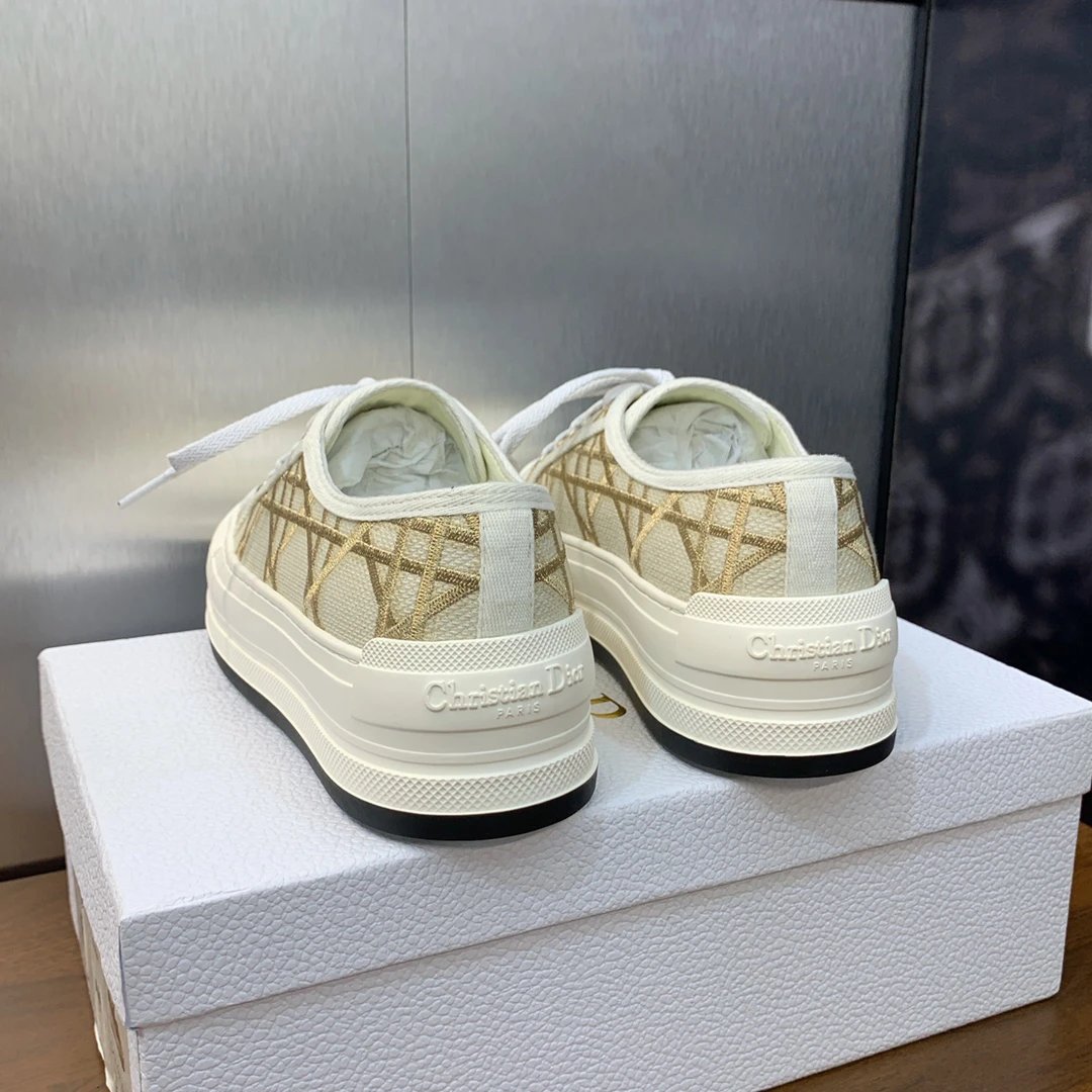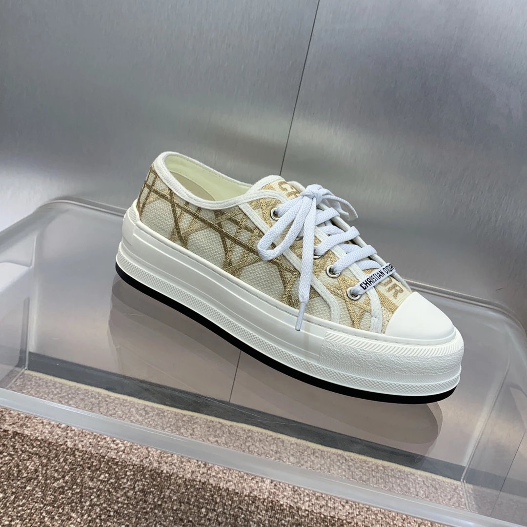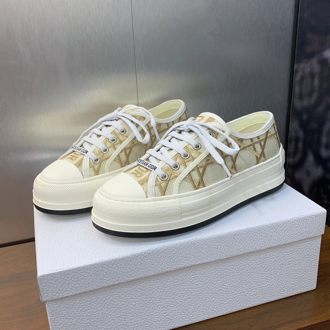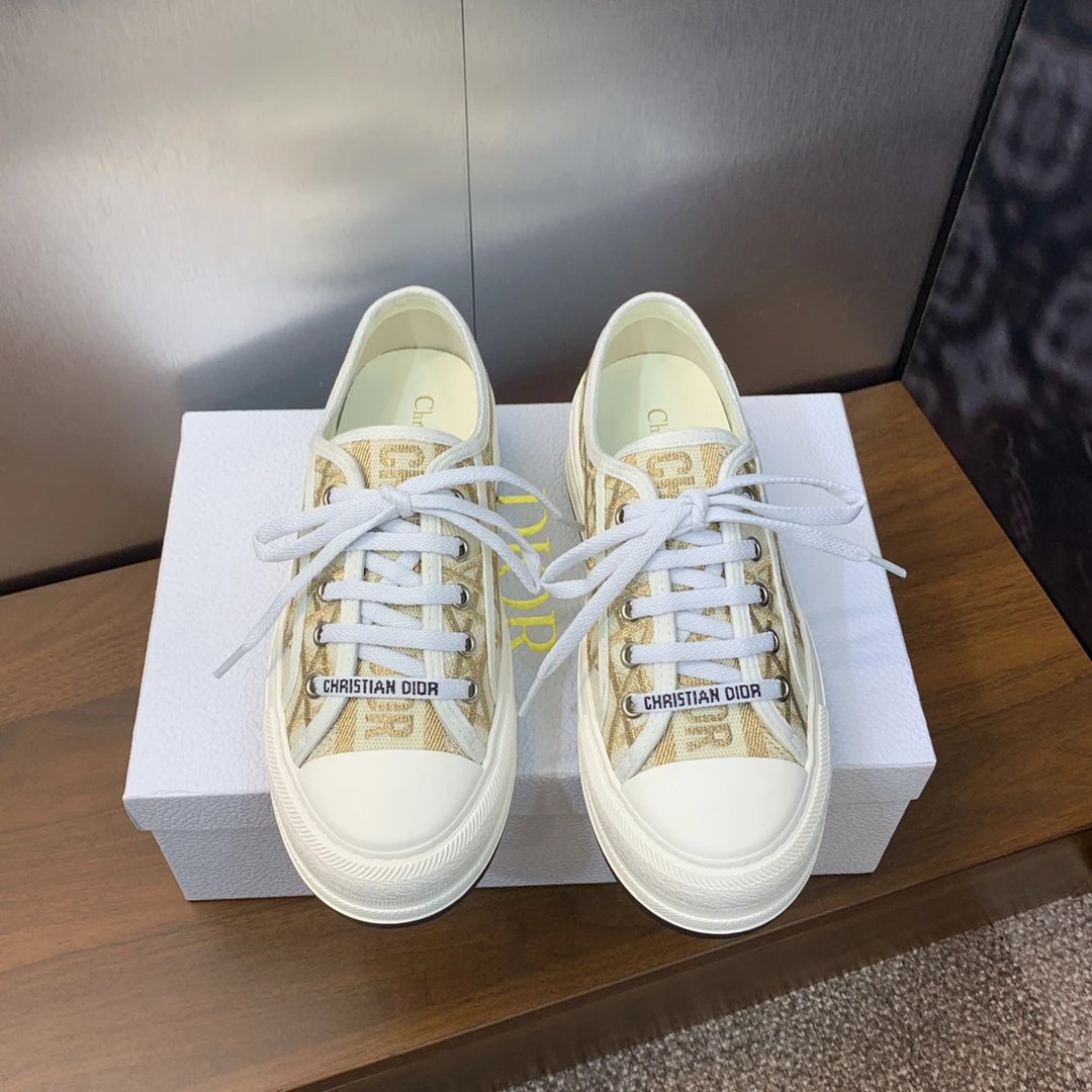 Dior 2023 Walk'n Dior Oblique Couple Thick-Sole Low Sneakers feature oblique jacquard embroidery, multicolor canvas upper, water-dyed sheepskin lining, elastic logo foam insole, original T outsole.