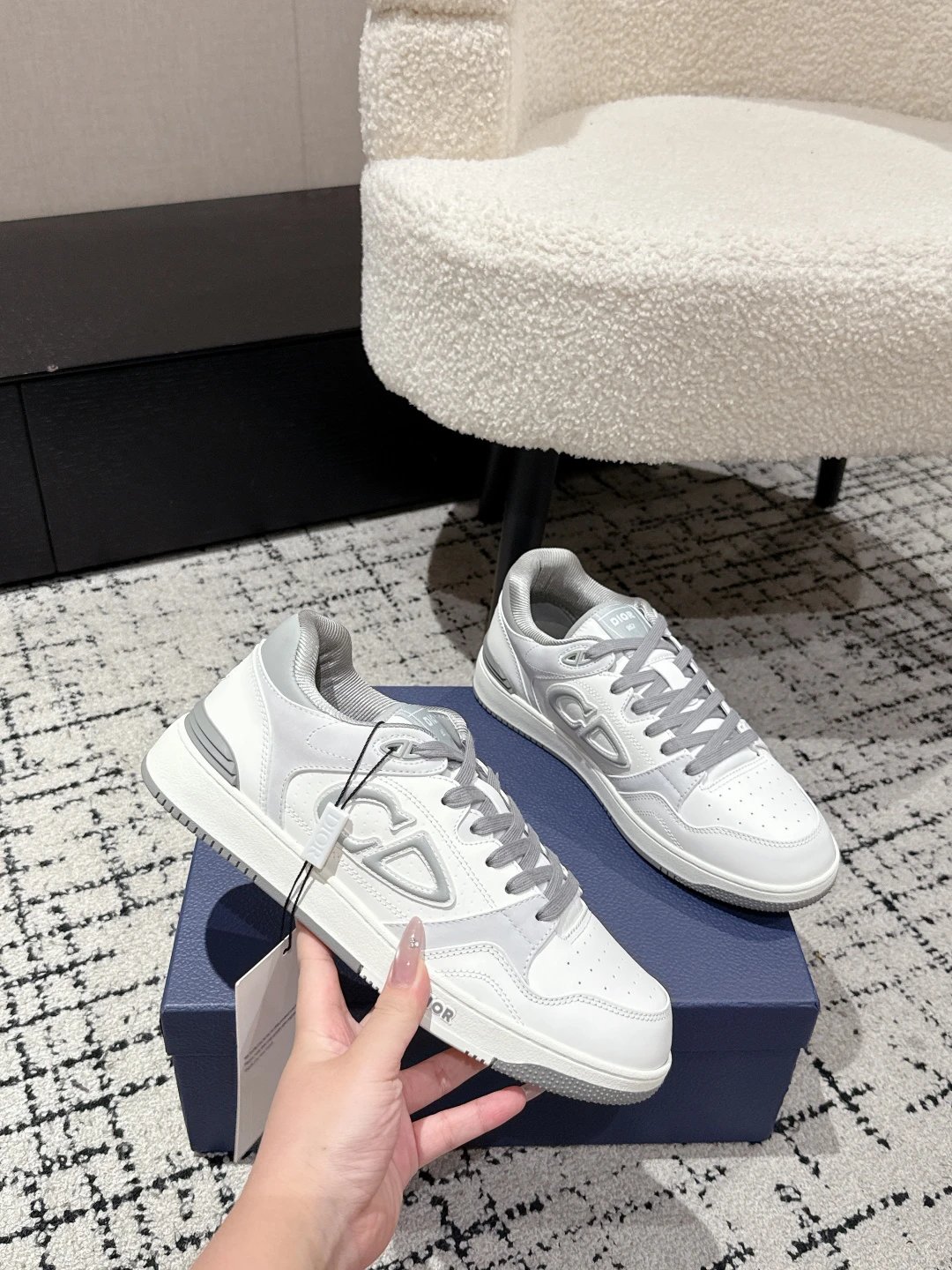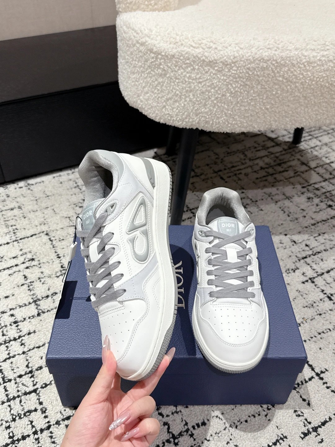 Dior 2024 Spring B57 Couple Sneakers reinterprets basketball design.
