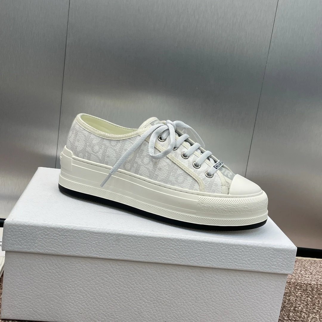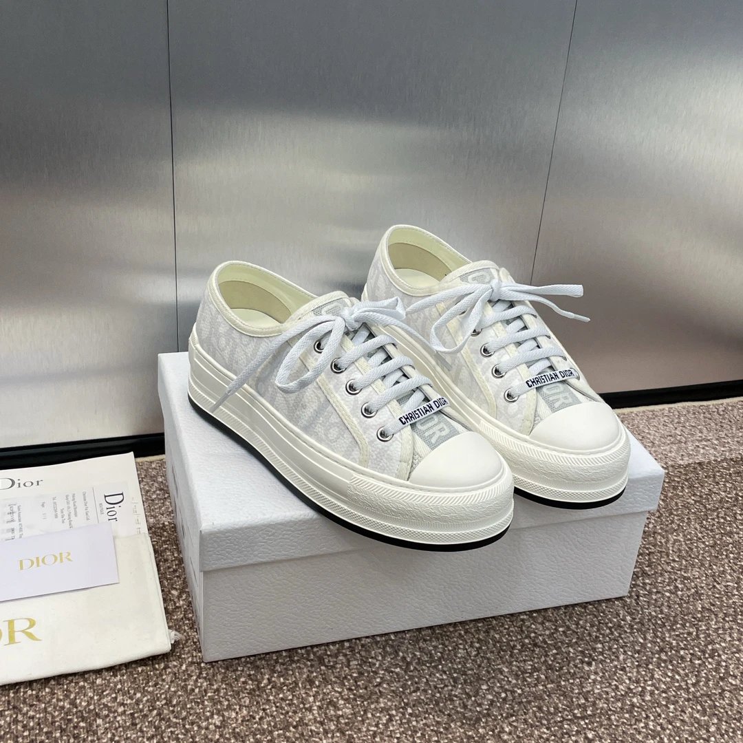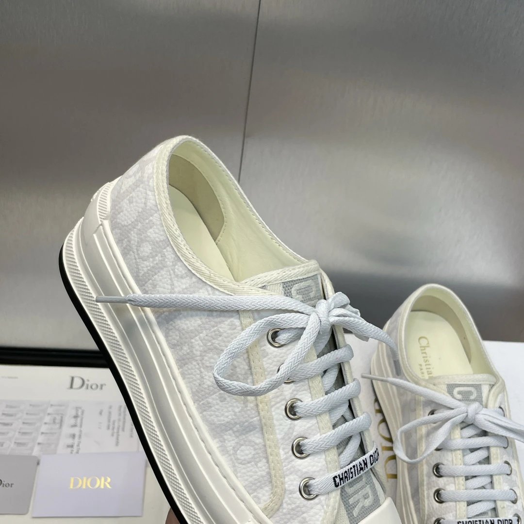 Dior 2023 Spring/Summer couple's low-top sneakers: Walk'n Dior Oblique embroidered logo, color-blocked canvas white shoes (top market version).