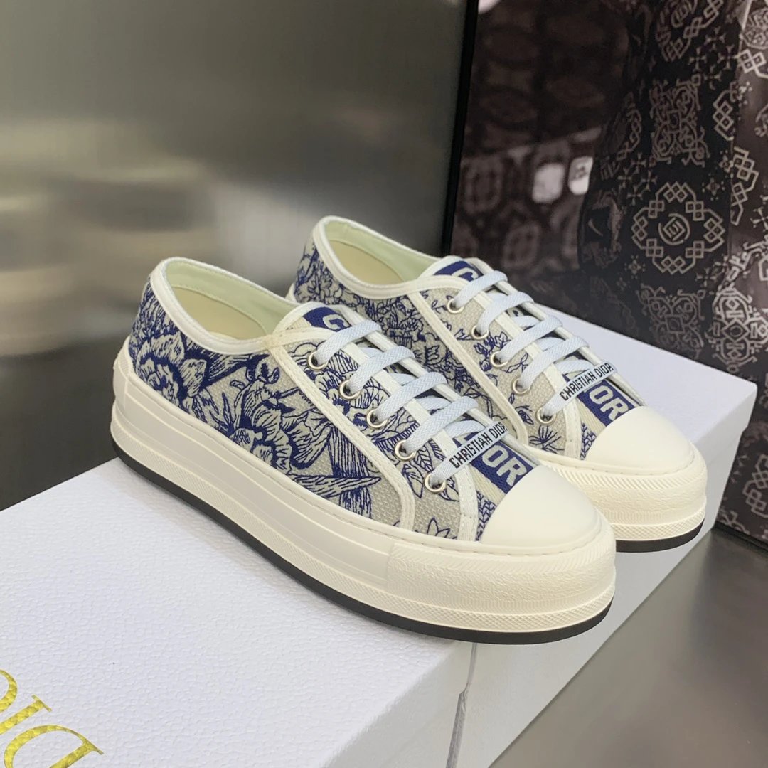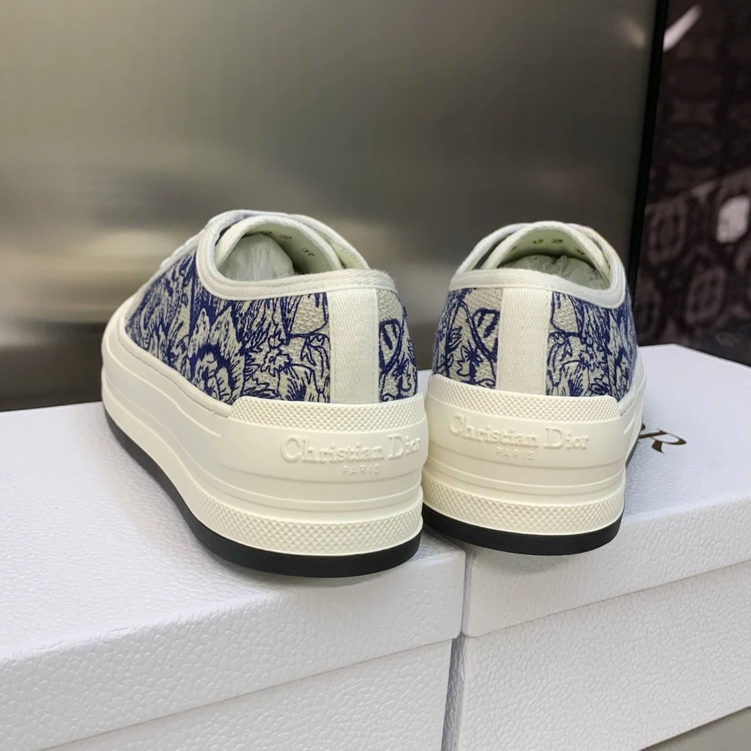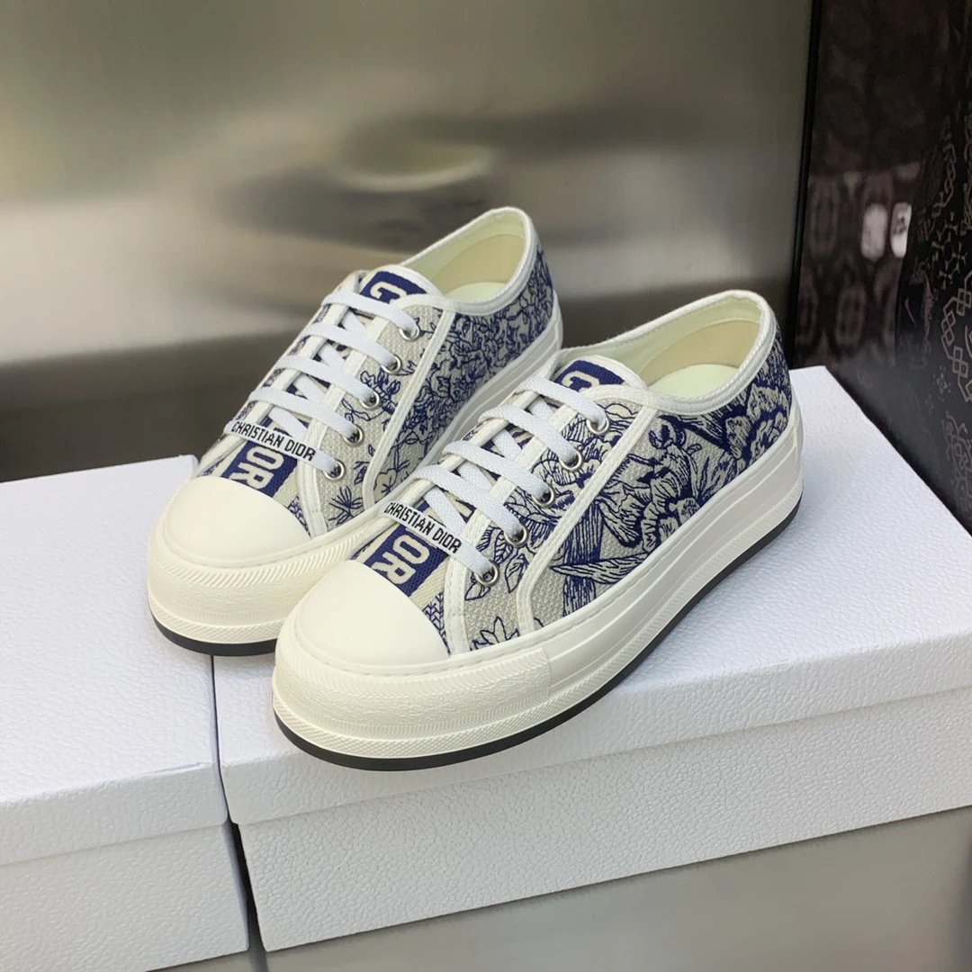 Dior 2023 Couples Walk'n Dior Oblique Platform Sneakers have logo embroidery, color-block canvas, and premium materials.