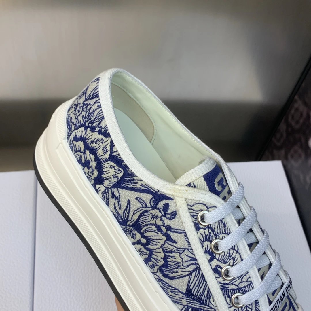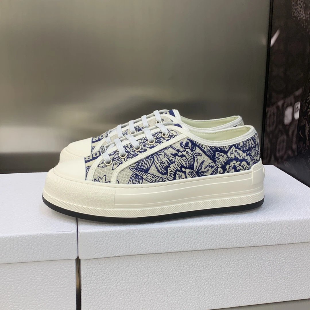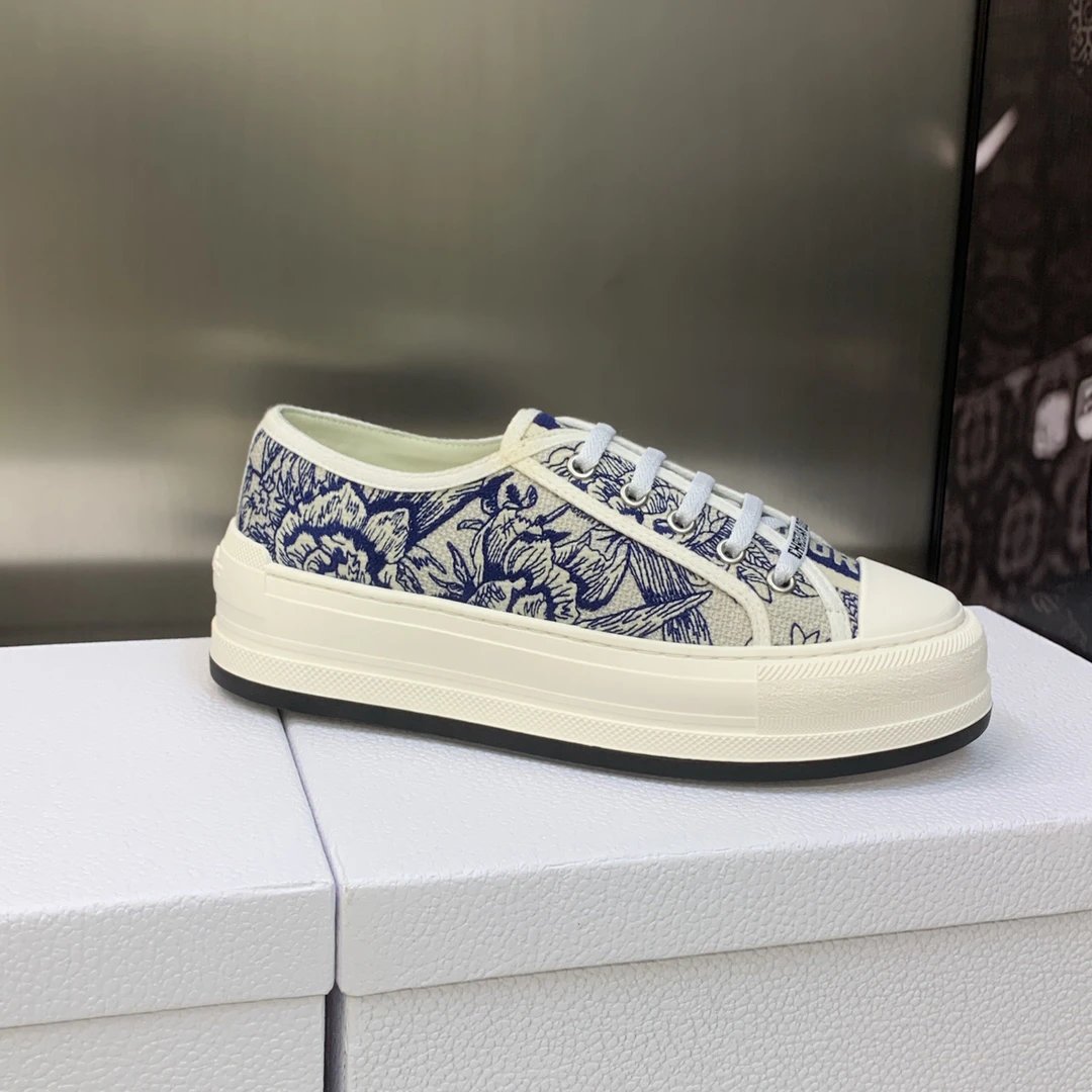Dior 2023 Couples Walk'n Dior Oblique Platform Sneakers have logo embroidery, color-block canvas, and premium materials.