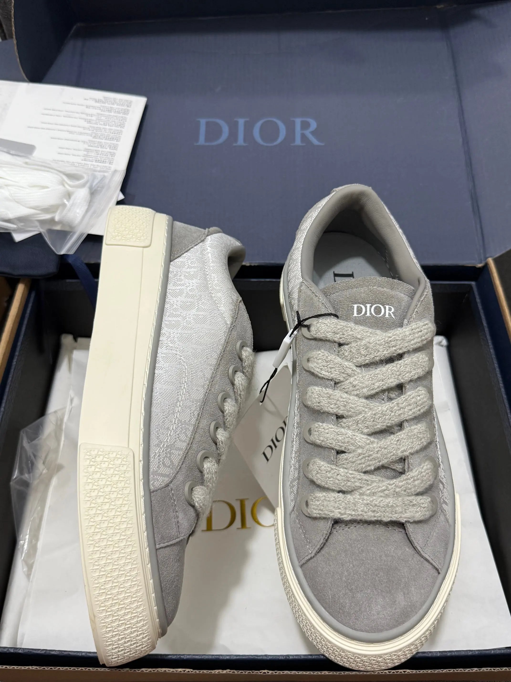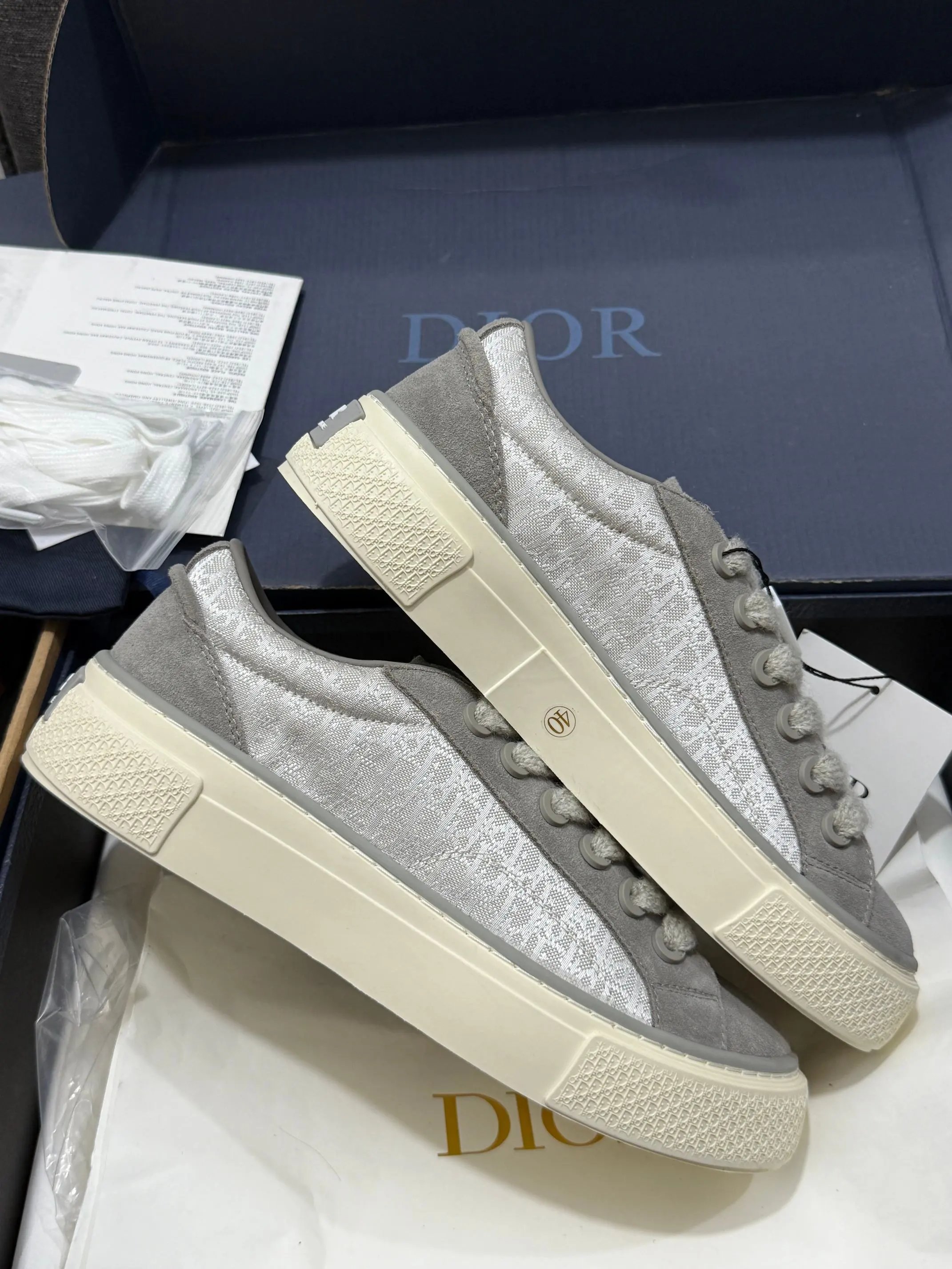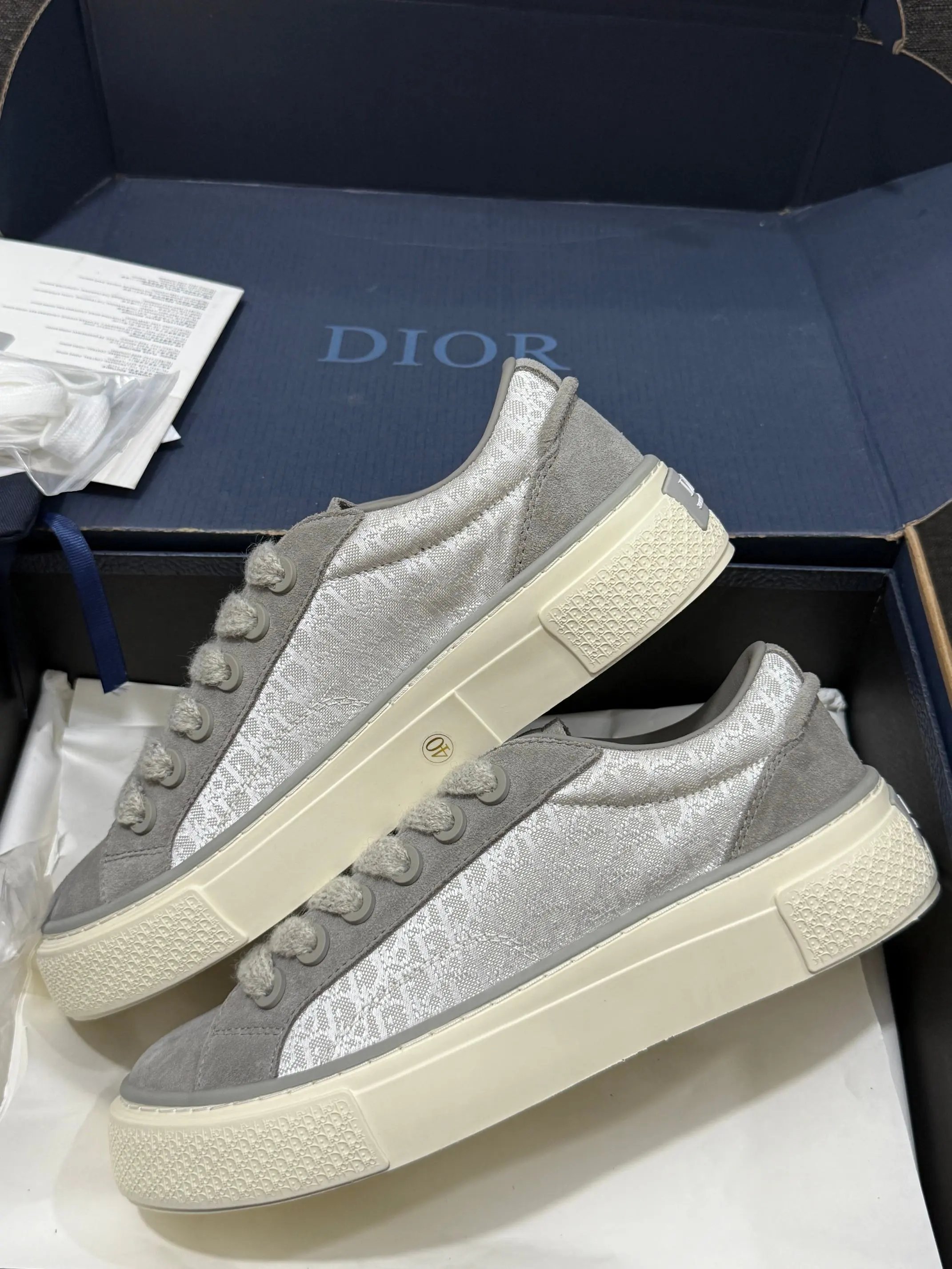 Dior B33 Blue Chunky Sneakers feature original Oblique jacquard + leather upper, lambskin + breathable mesh lining, 4cm non-slip T outsole.