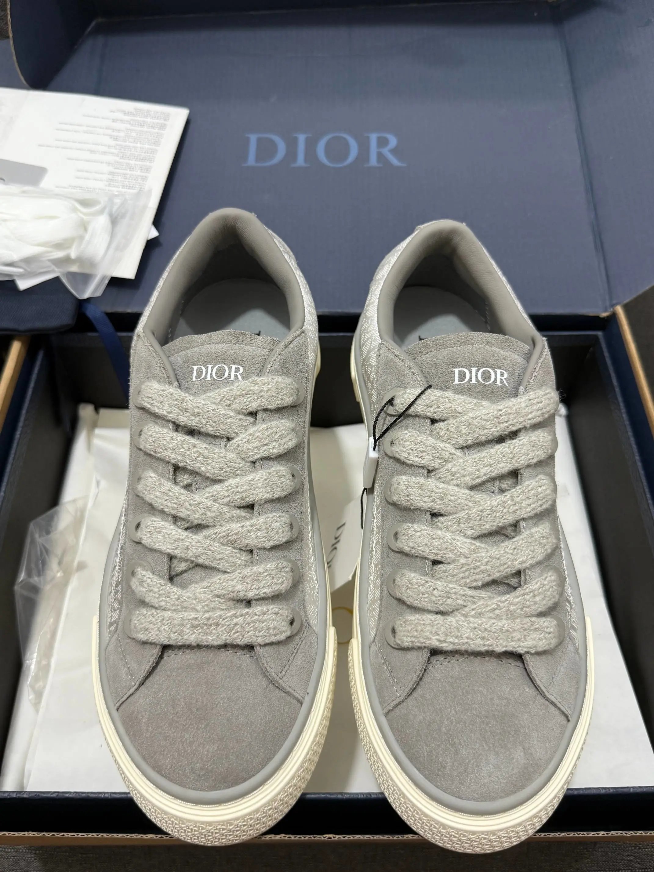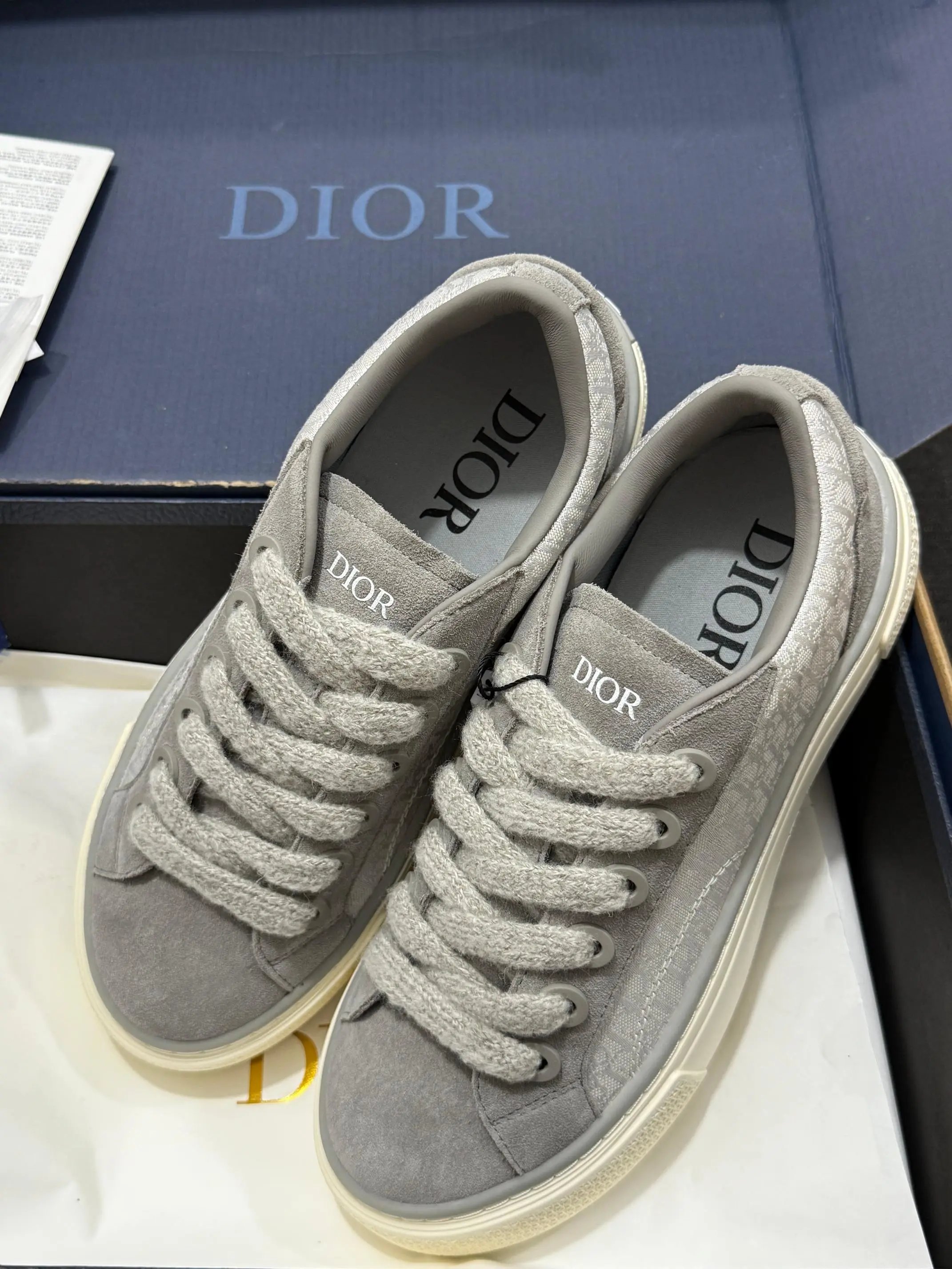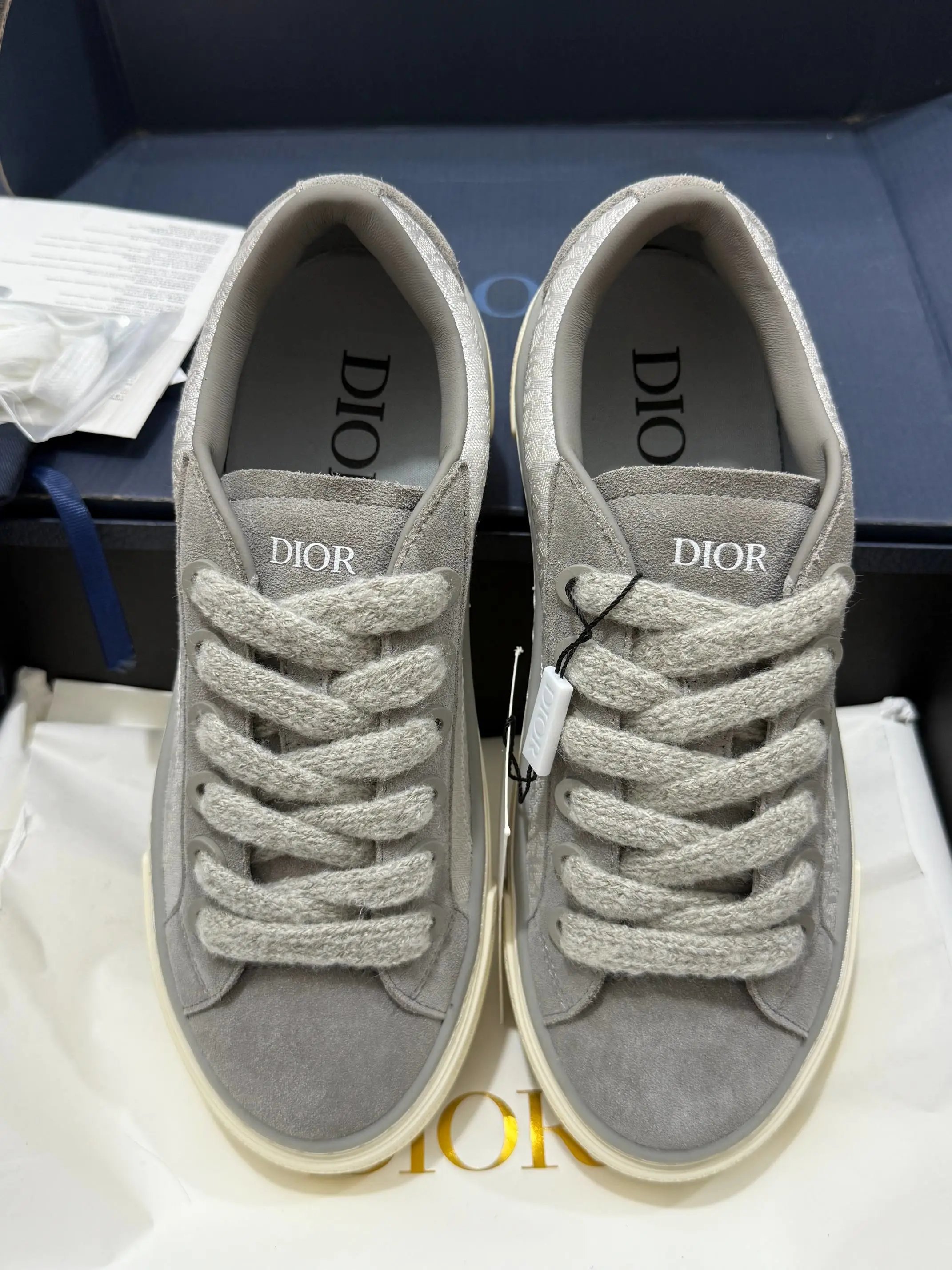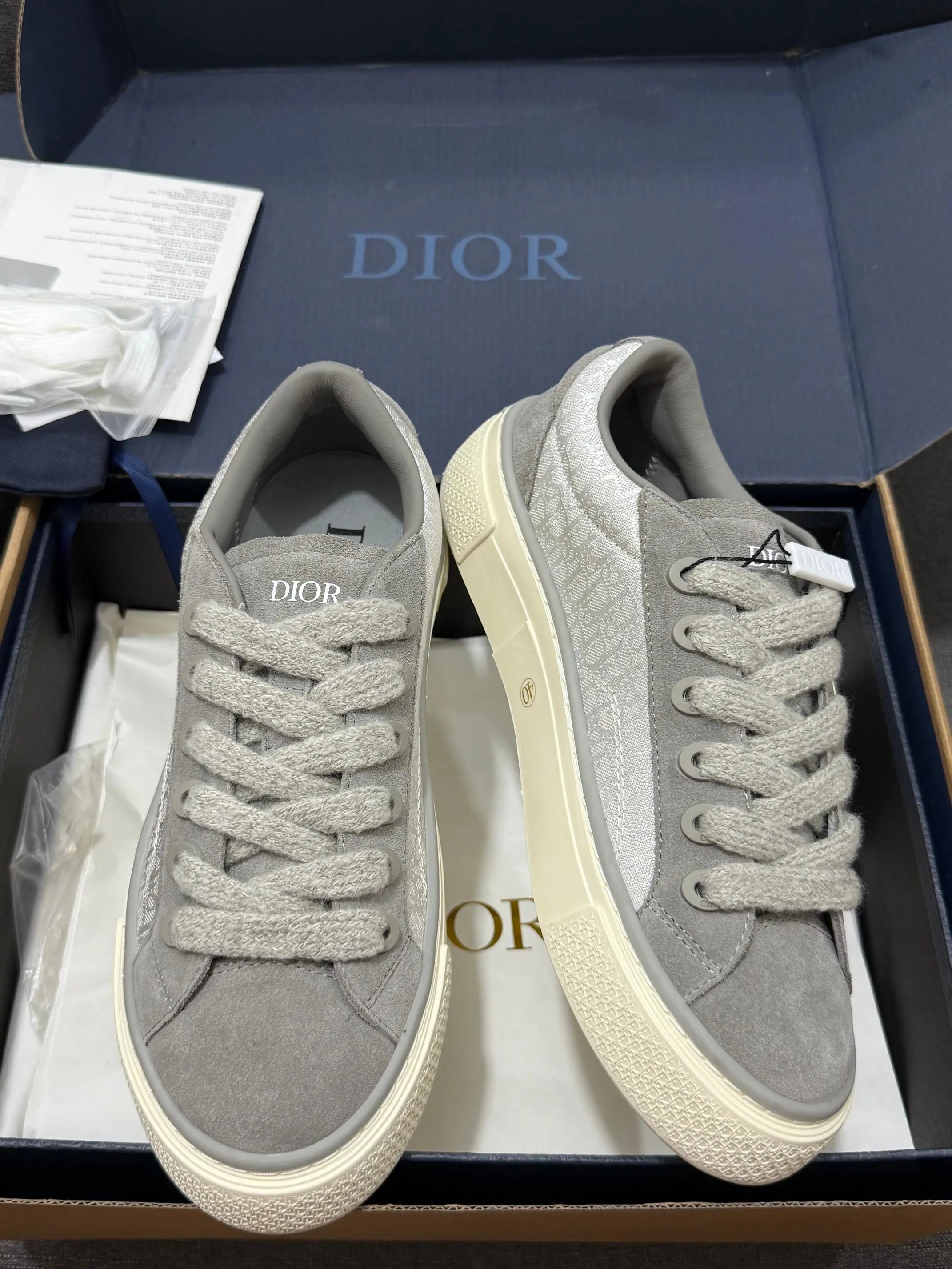 Dior B33 Blue Chunky Sneakers feature original Oblique jacquard + leather upper, lambskin + breathable mesh lining, 4cm non-slip T outsole.