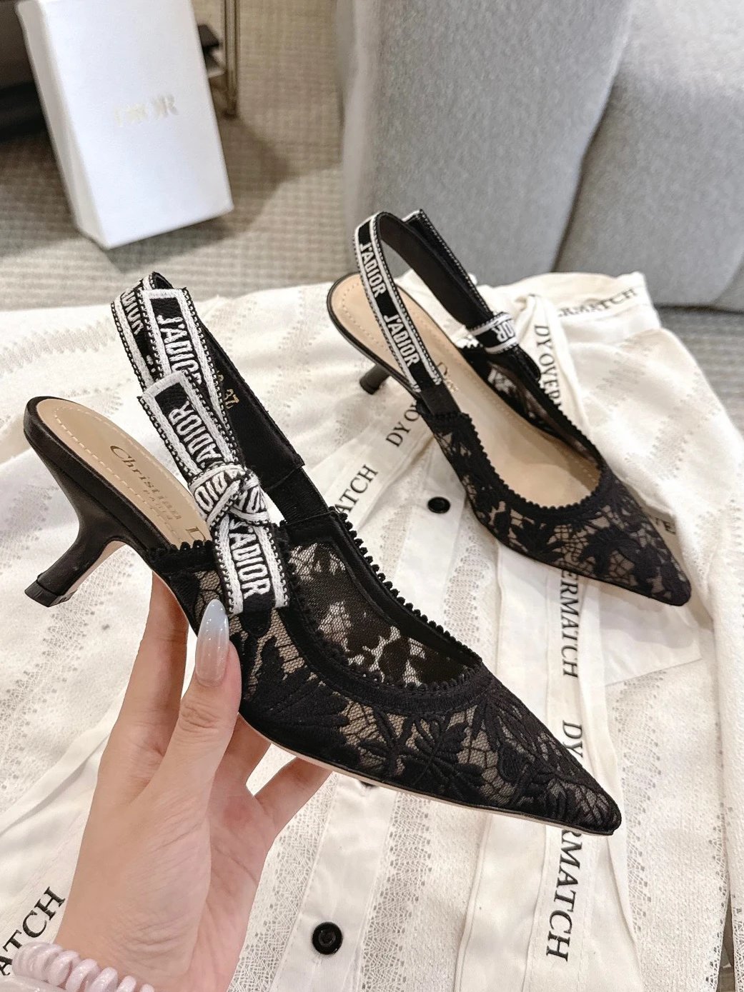 Dior Classic Webbing Kitten Heel Sandals: elegant embroidery straps, bow details, versatile solid colors for femininity.