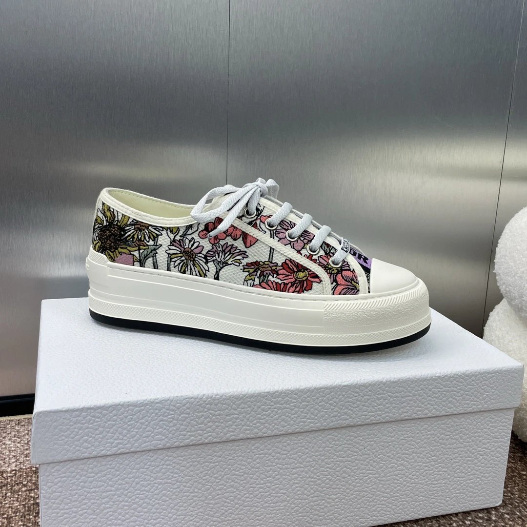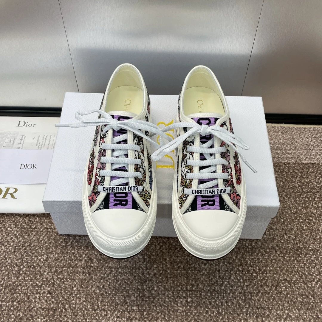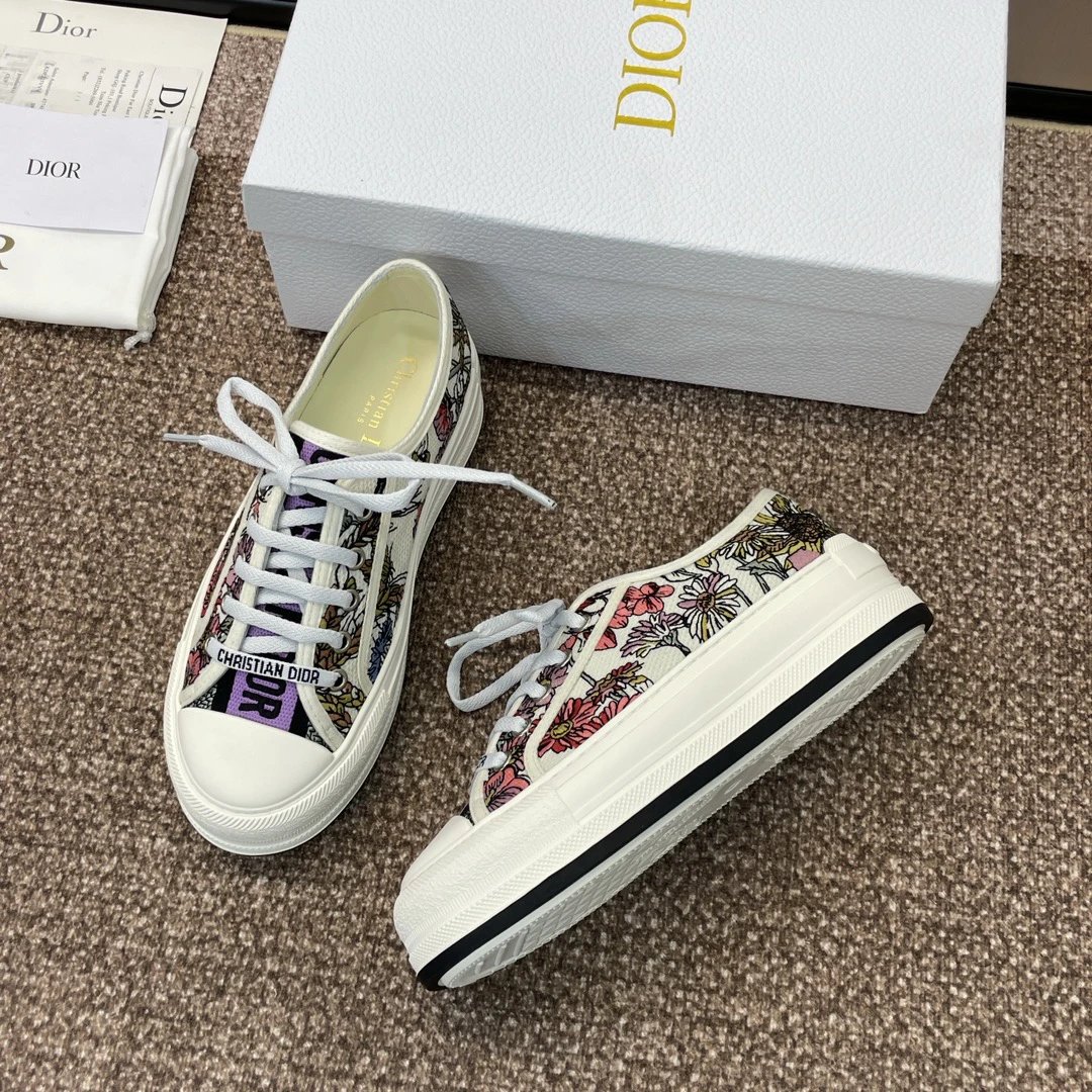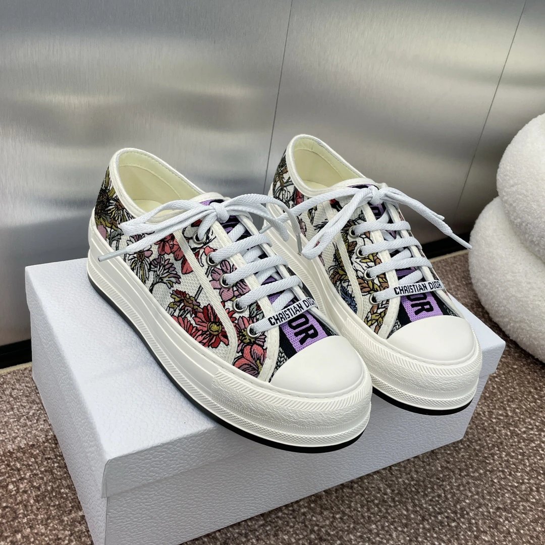 Dior 2023 Early Spring Walk’n Dior Oblique Couple Lace-Up Sneakers: Top market version, dark floral logo embroidery, color-block canvas.