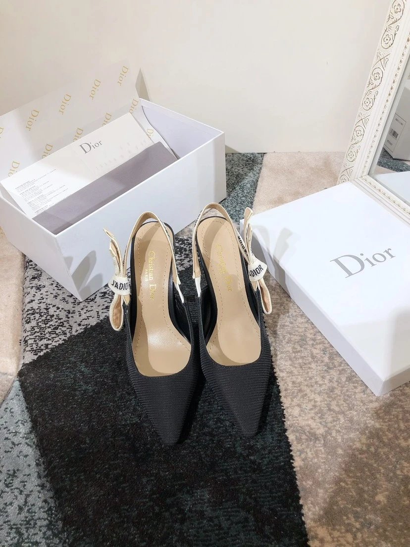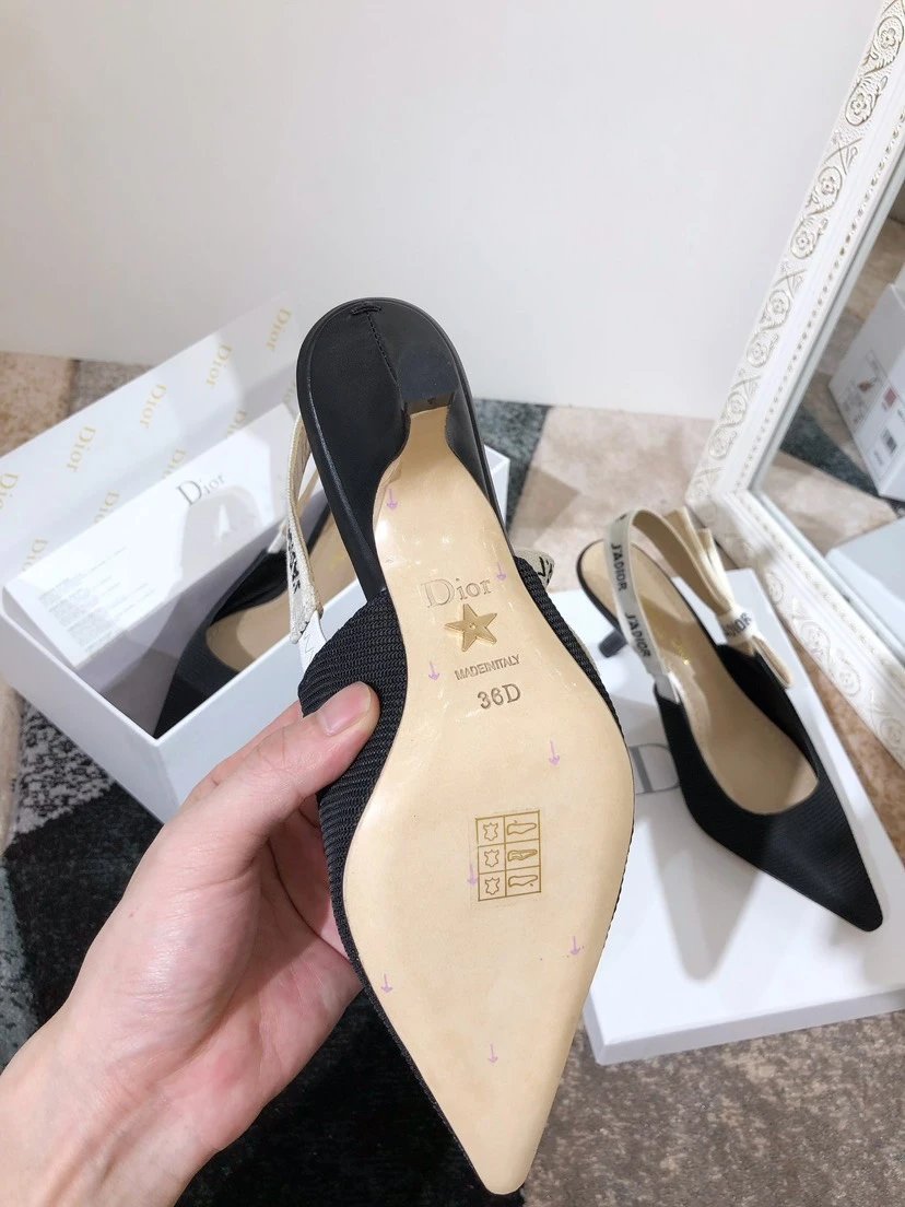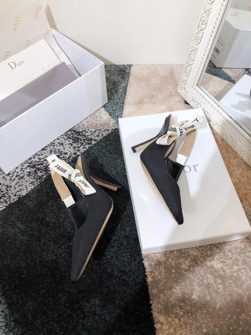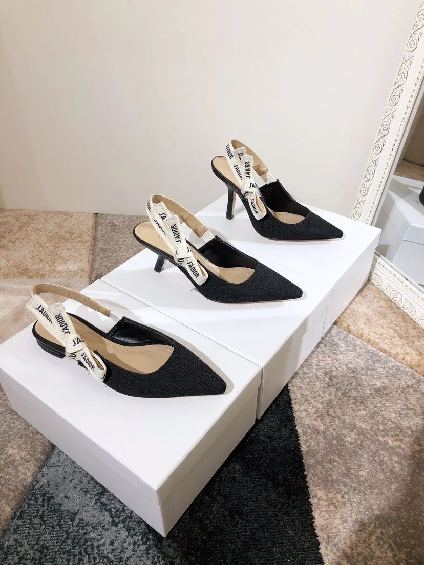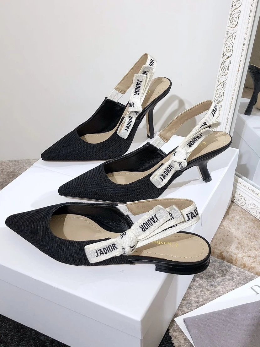 Dior J'ADIOR Quake Oblique Heeled Mules are top-version women's shoes with jacquard embroidery logo, bowknot, color-block design.