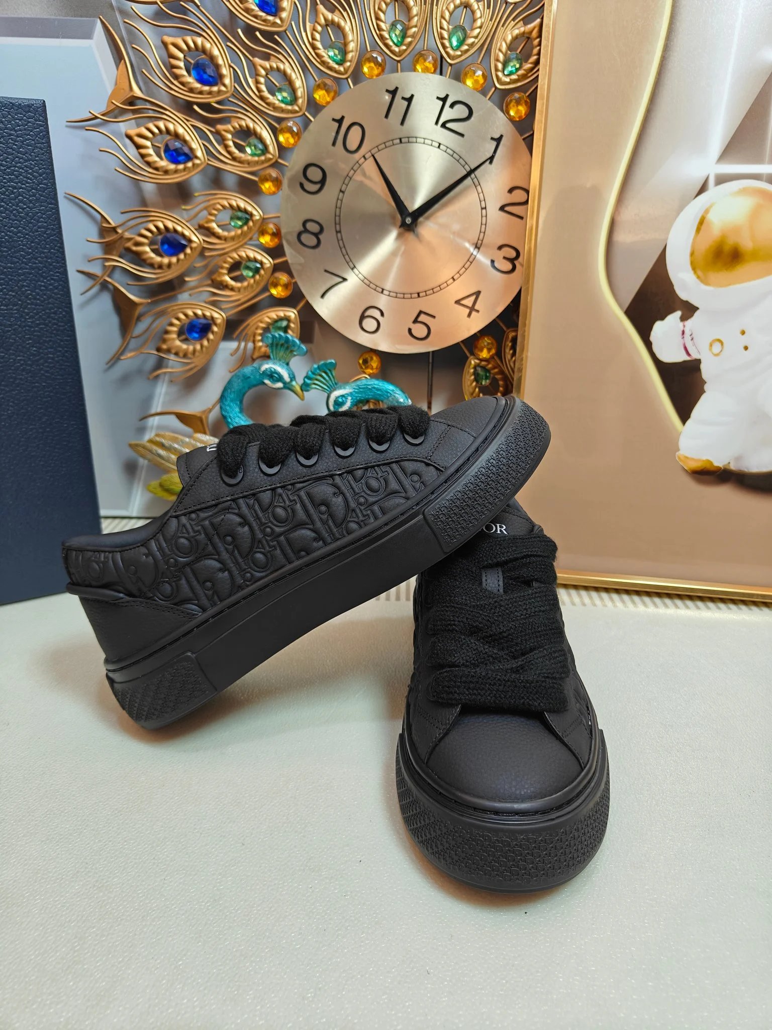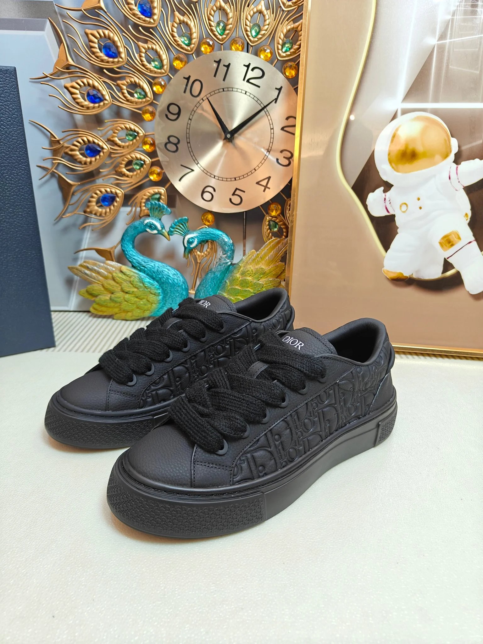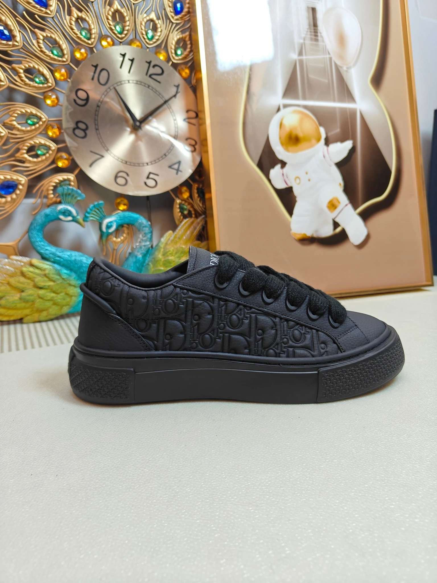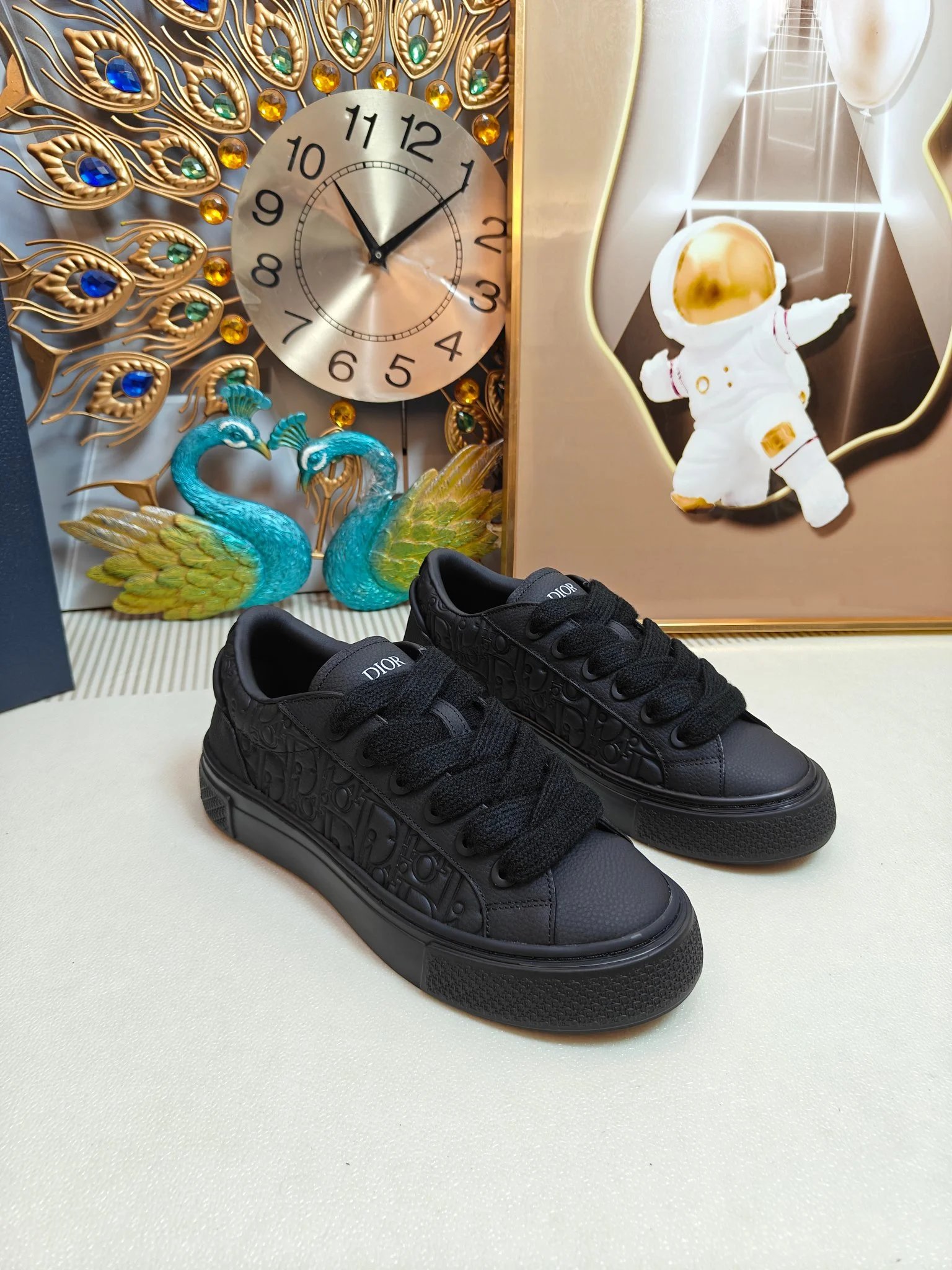 Dior 2024 B33 sneakers use white smooth calfskin with Oblique print, padded tongue & mohair laces.
