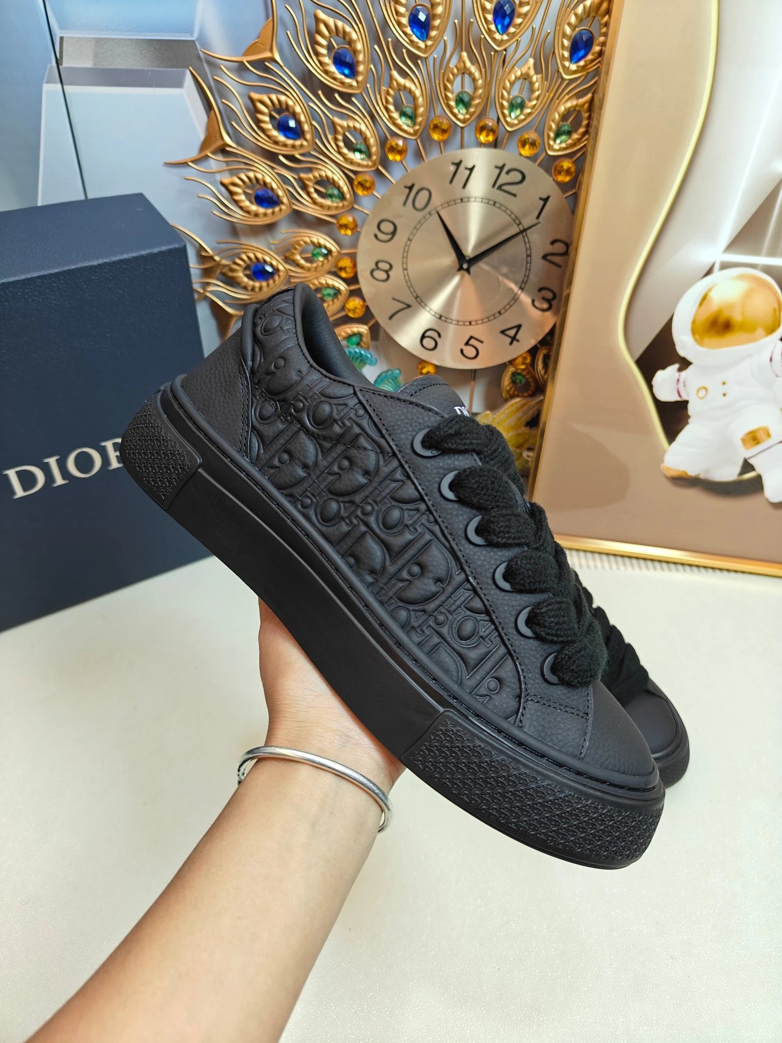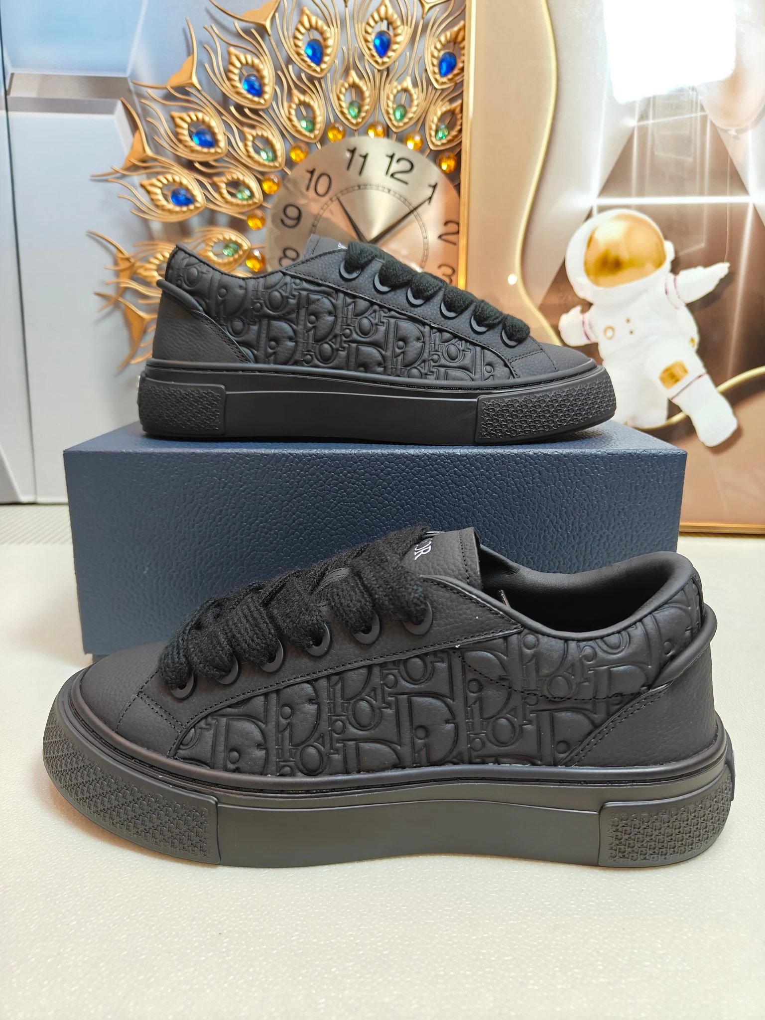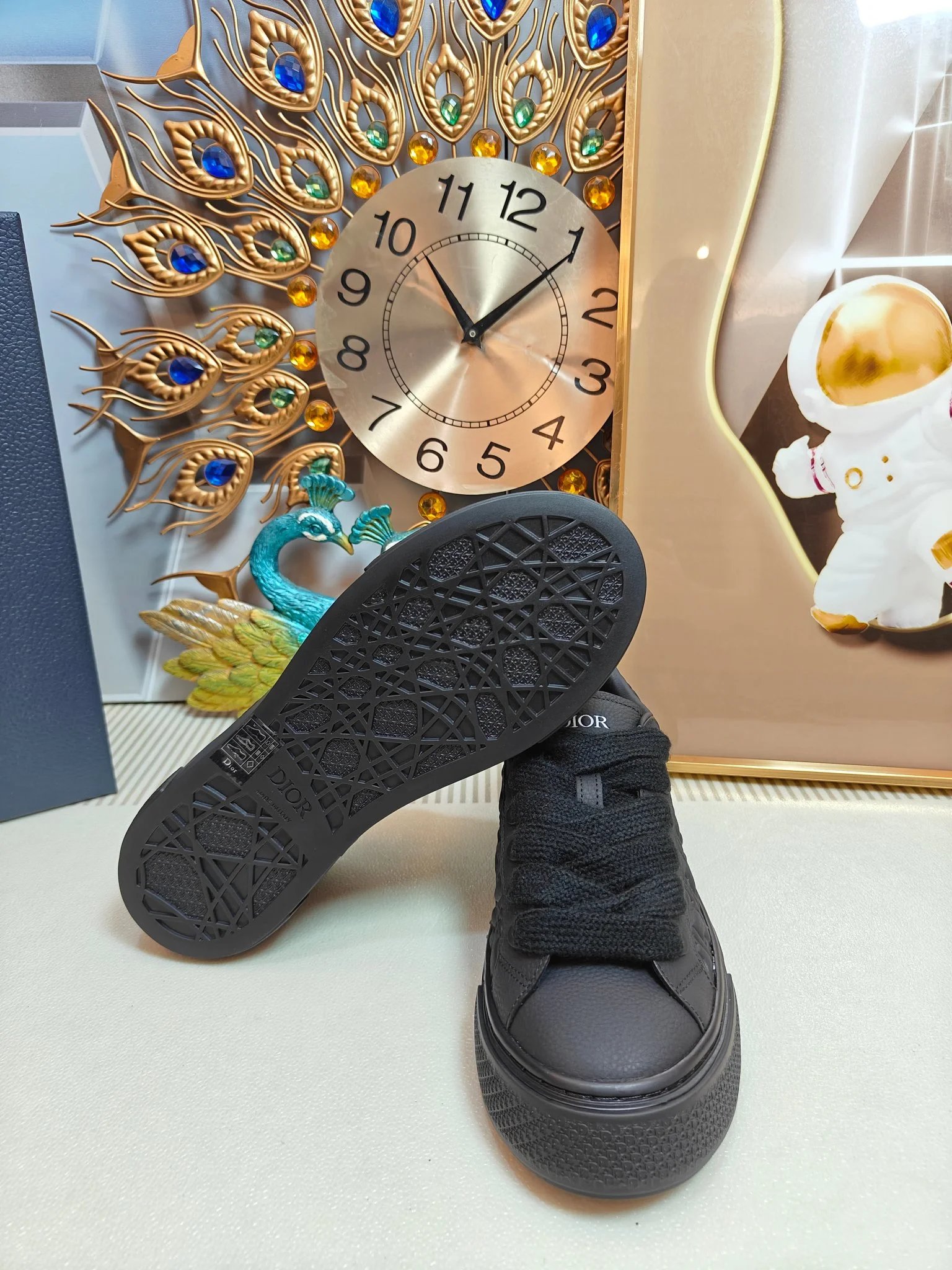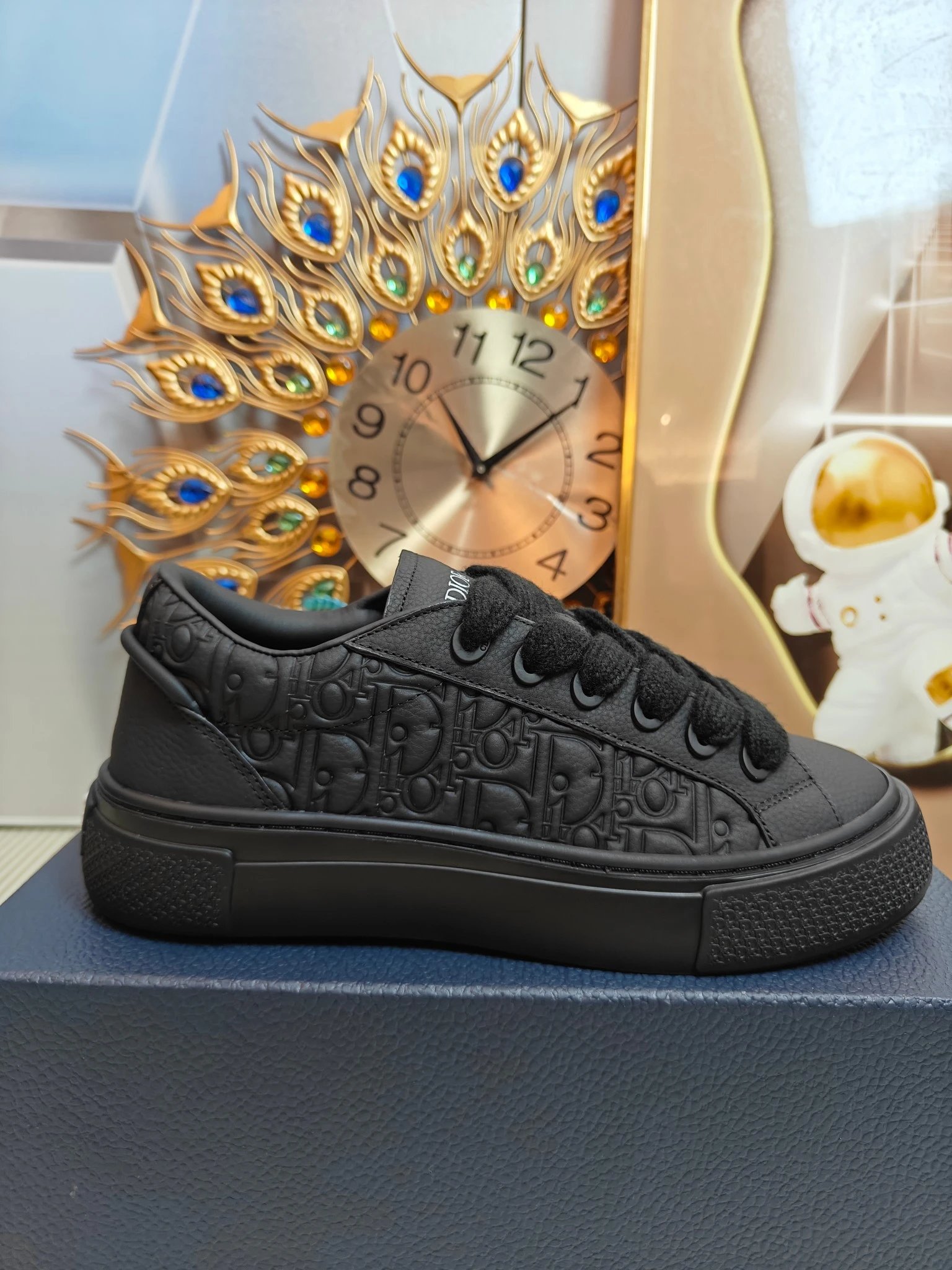 Dior 2024 B33 sneakers use white smooth calfskin with Oblique print, padded tongue & mohair laces.