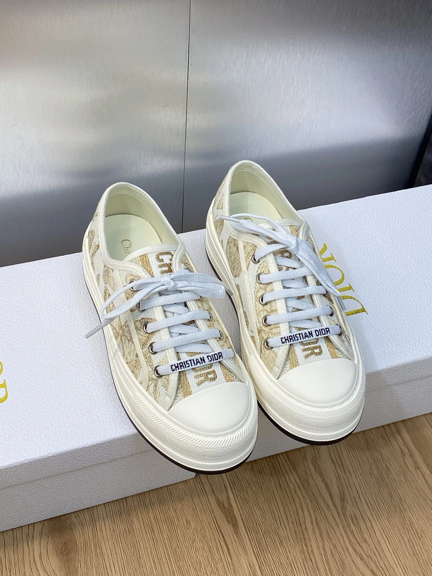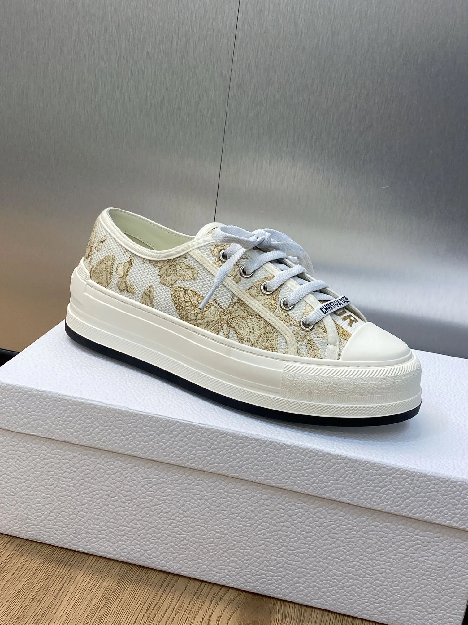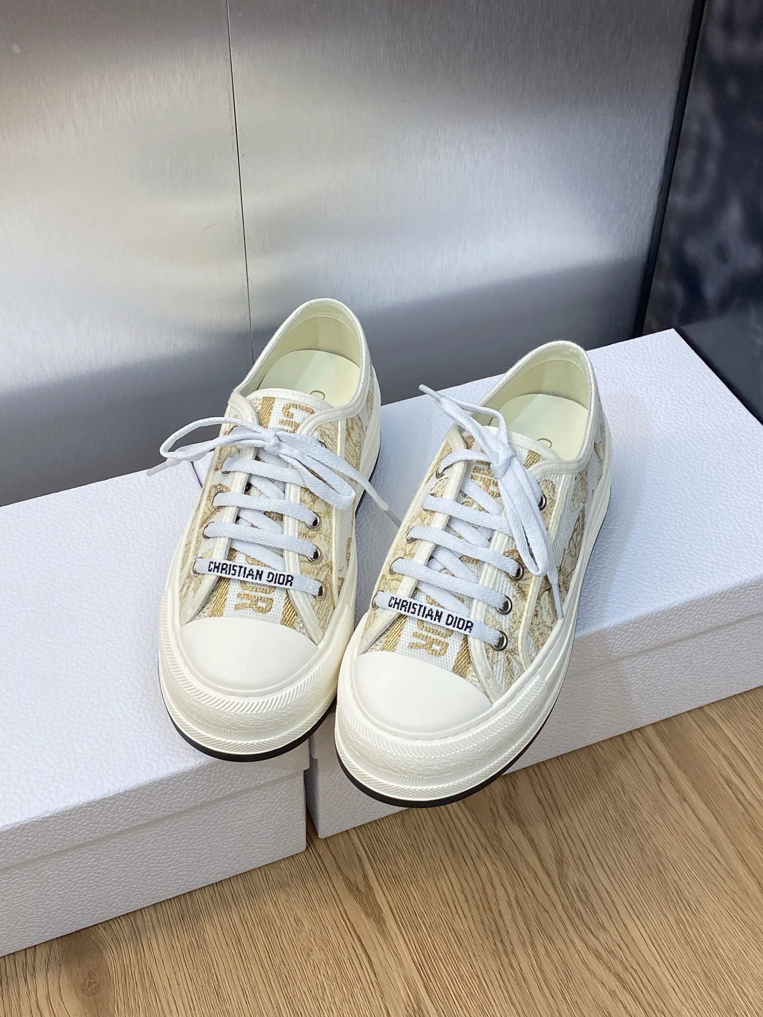 Dior 2023 Early Spring Couple Thick Sole Lace-Up Casual Shoes: Walk’n Dior Oblique jacquard logo, color-block canvas white sneakers, top market version.