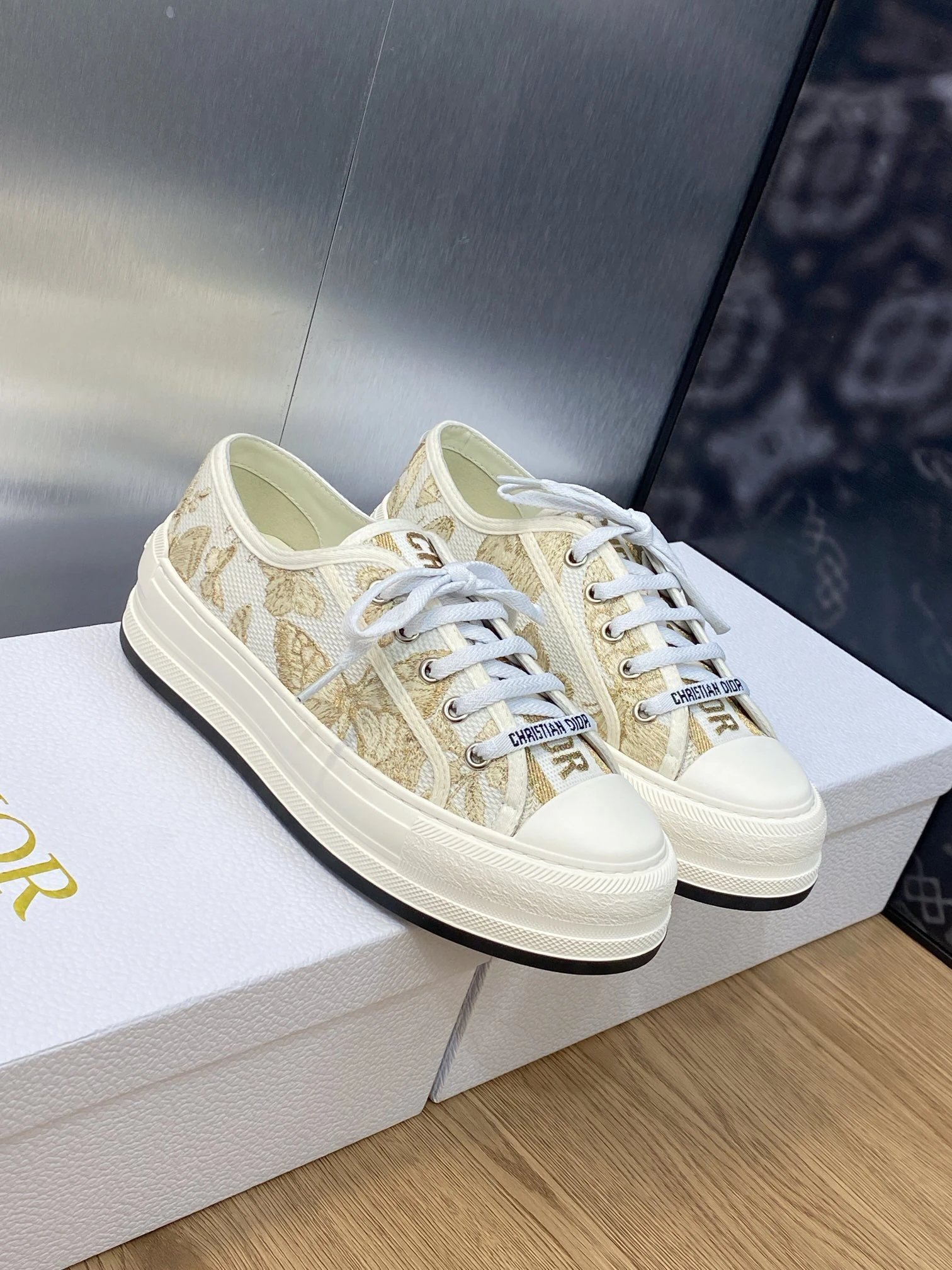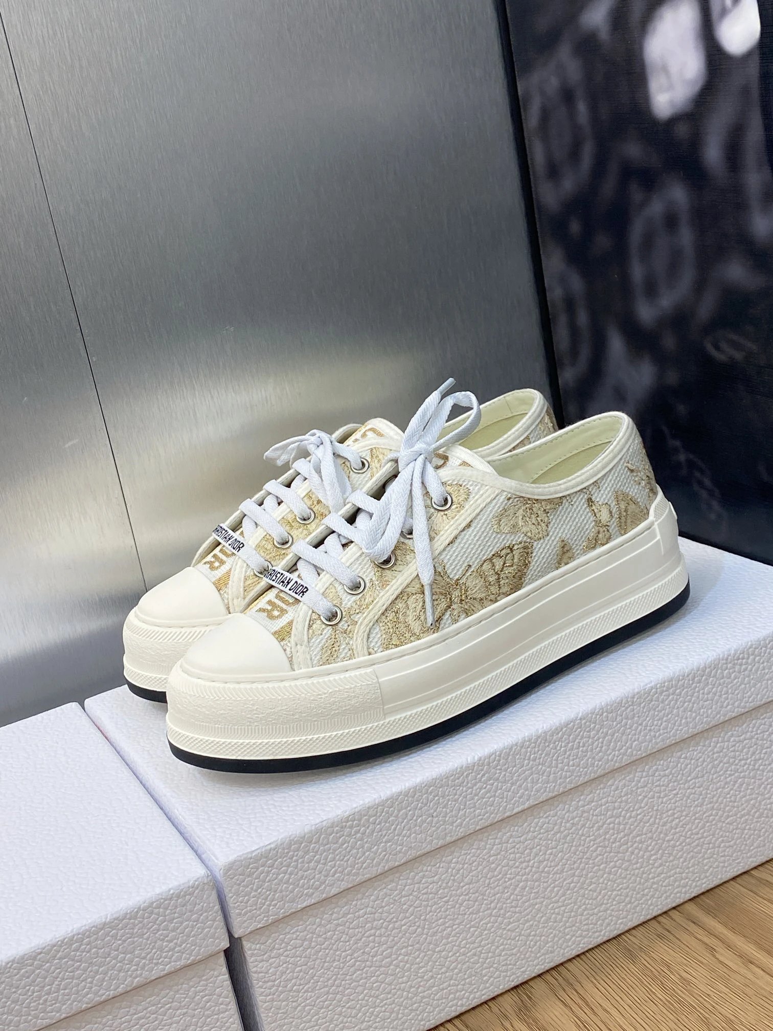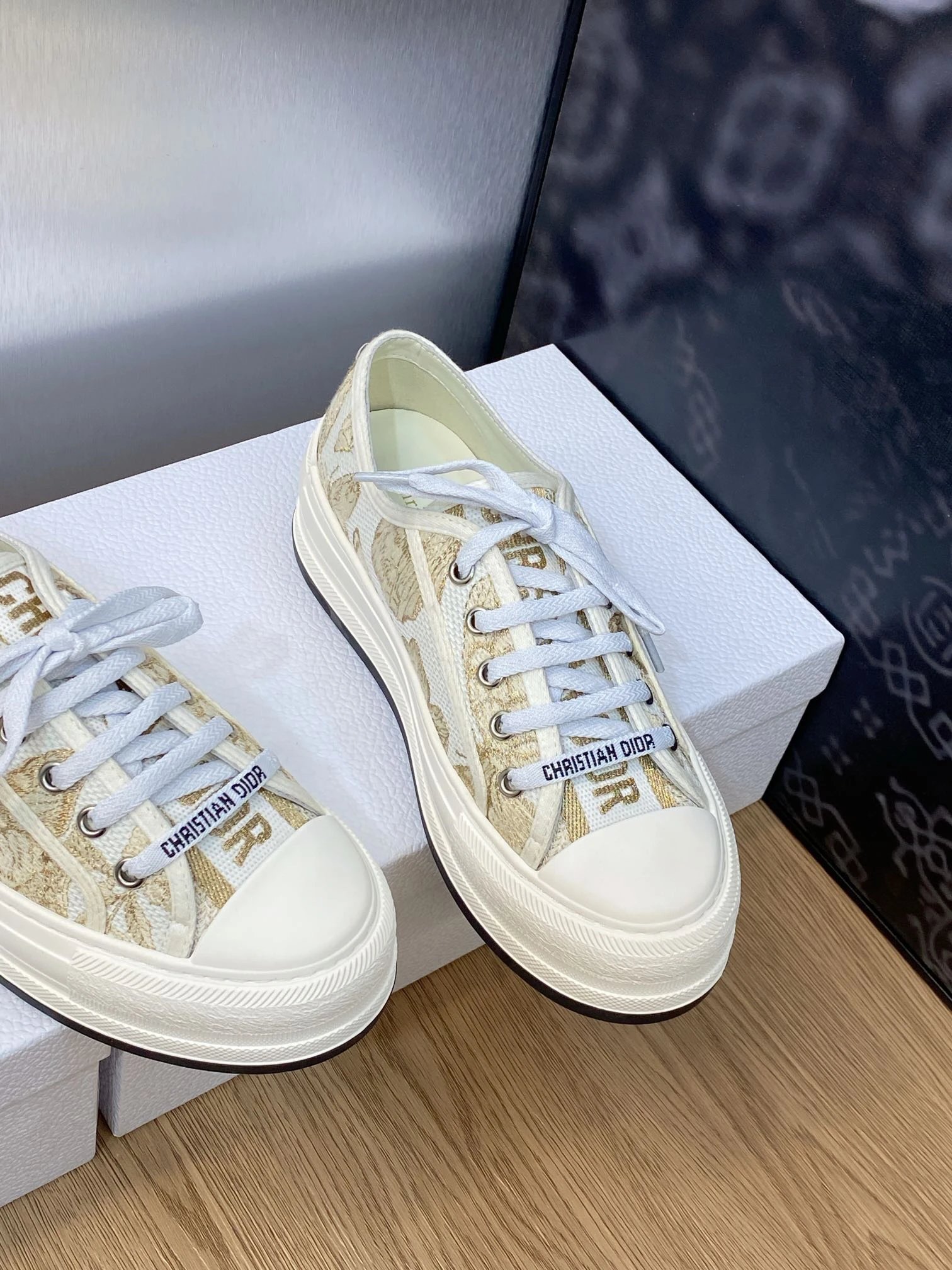 Dior 2023 Early Spring Couple Thick Sole Lace-Up Casual Shoes: Walk’n Dior Oblique jacquard logo, color-block canvas white sneakers, top market version.