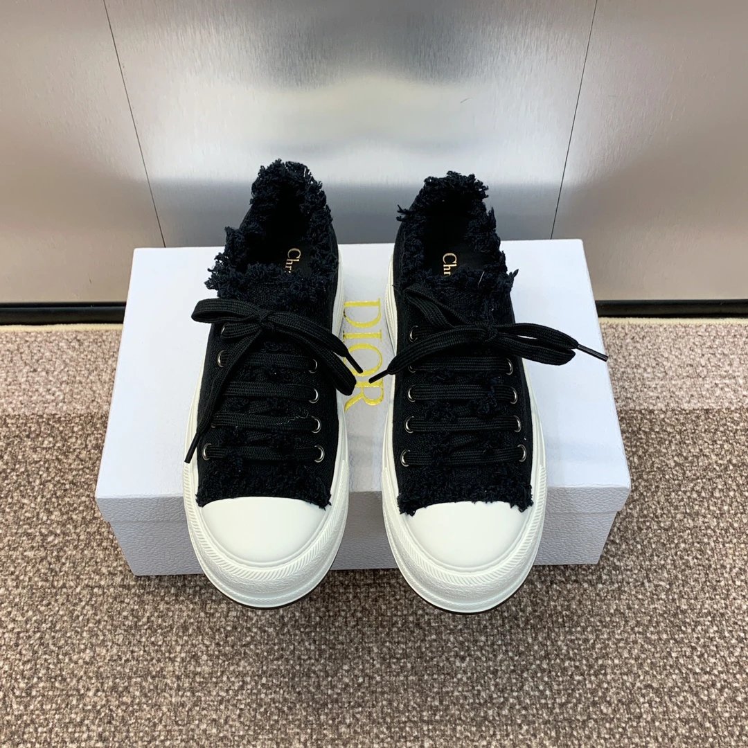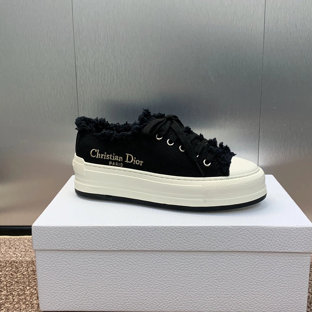 Dior 2024 couple low-top sneakers feature Walk’n Dior Oblique jacquard embroidery & thick sole.