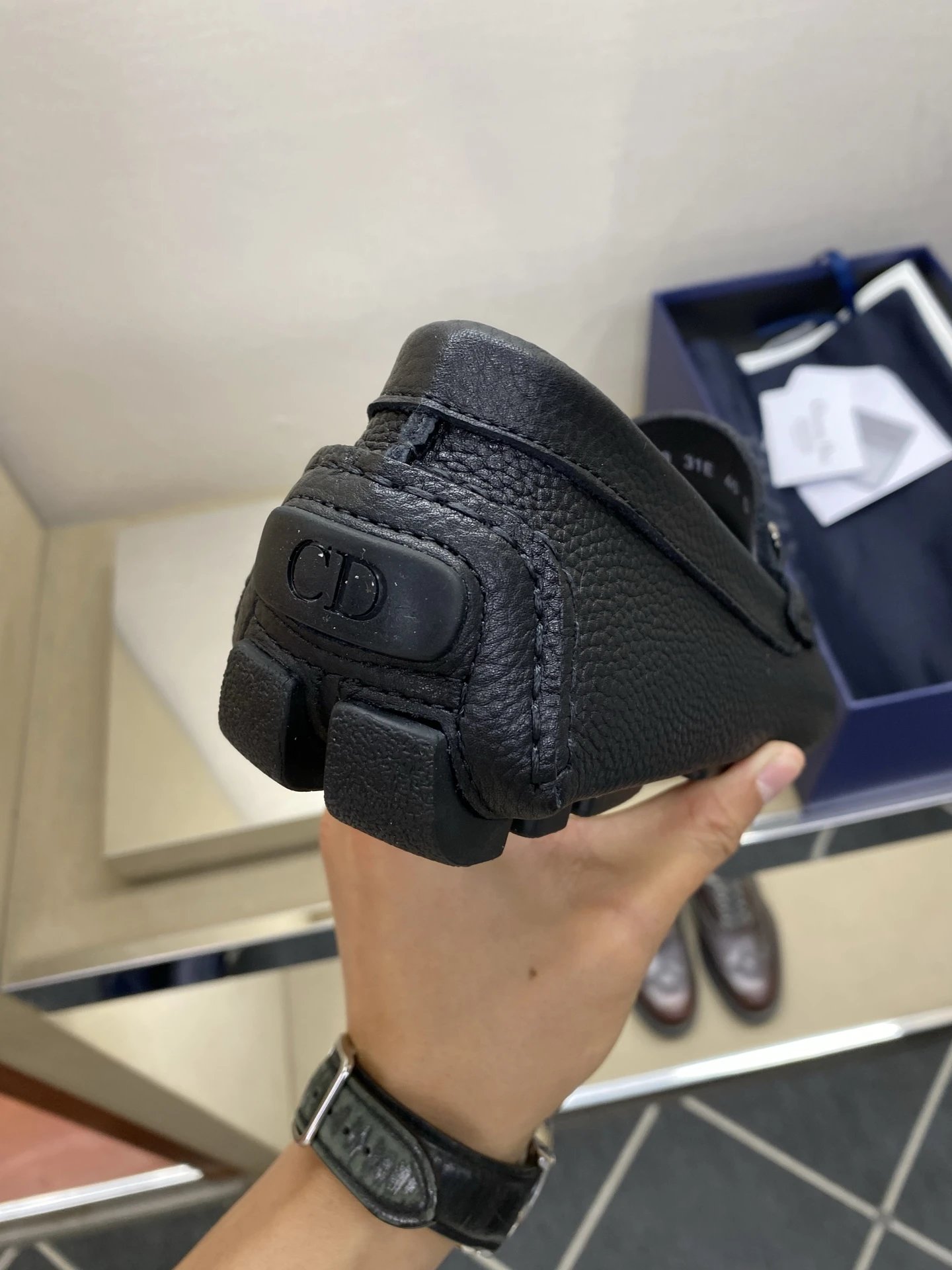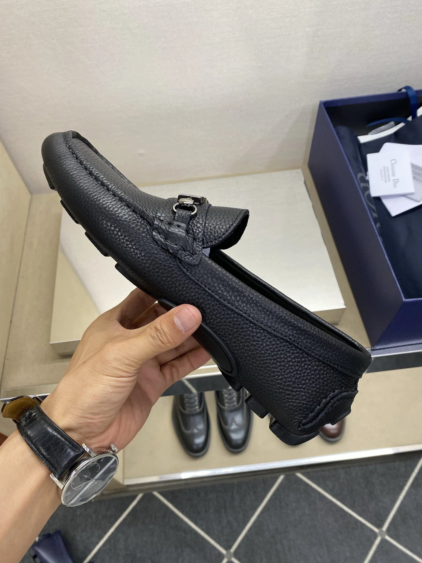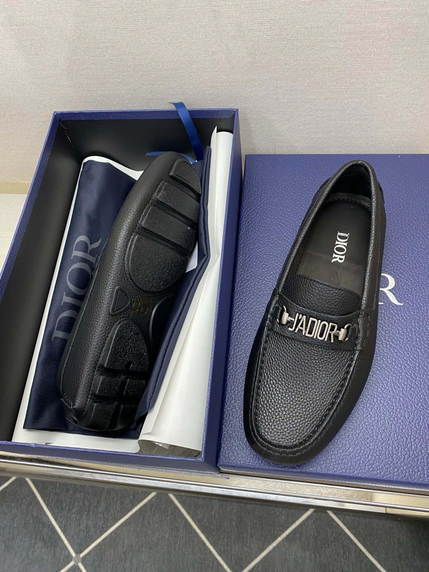 Dior Men's Pebbled Driving Shoes use premium genuine calfskin with pebbled texture.