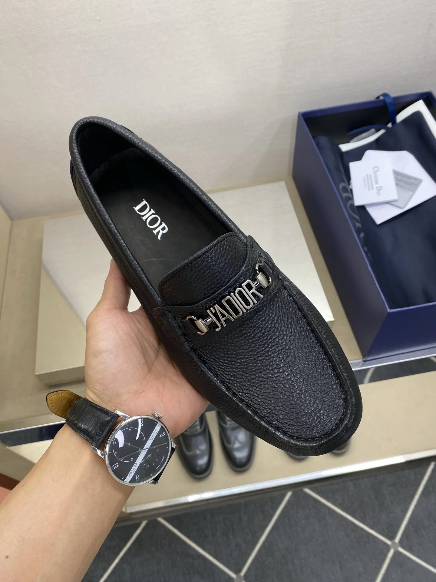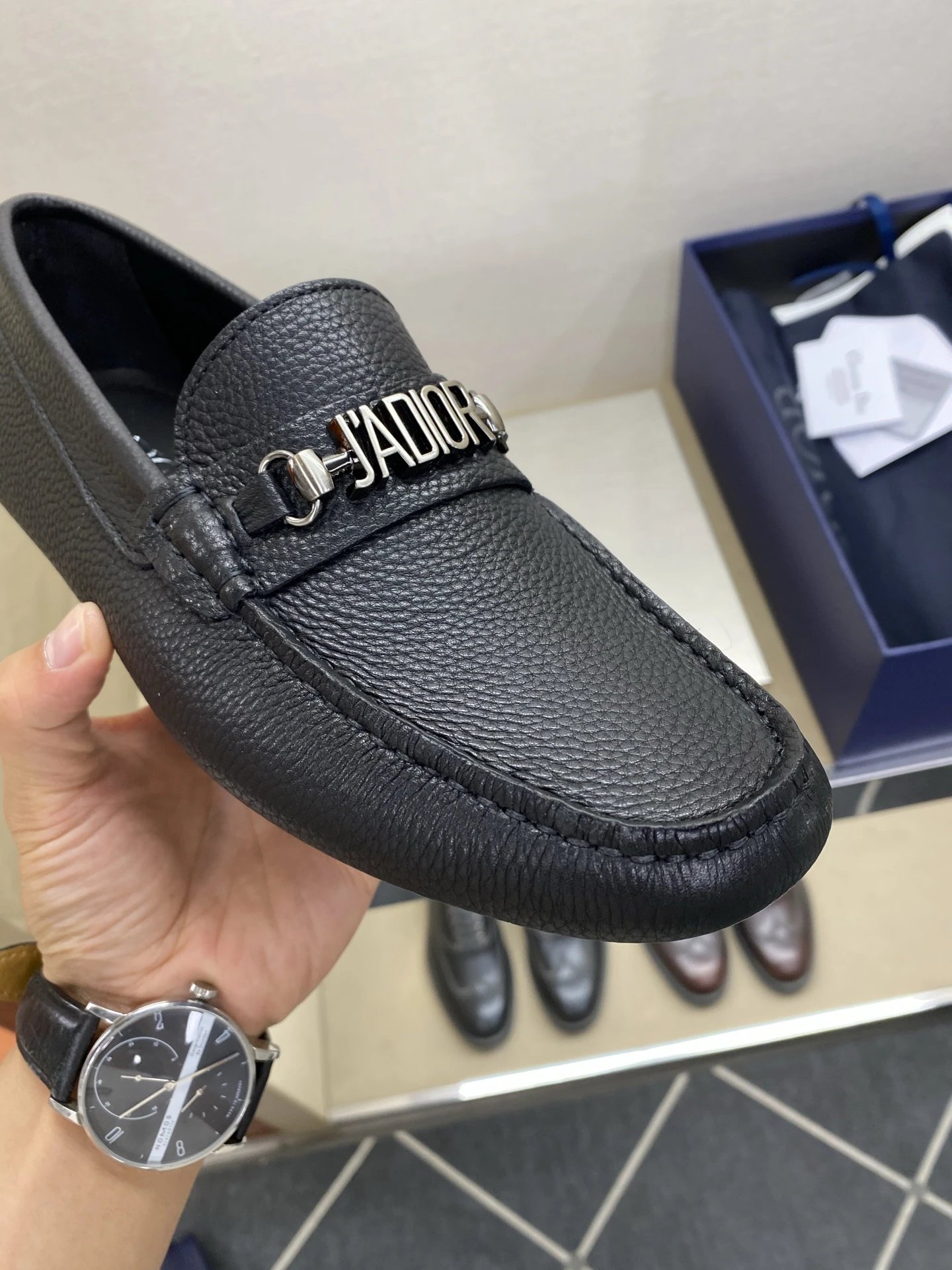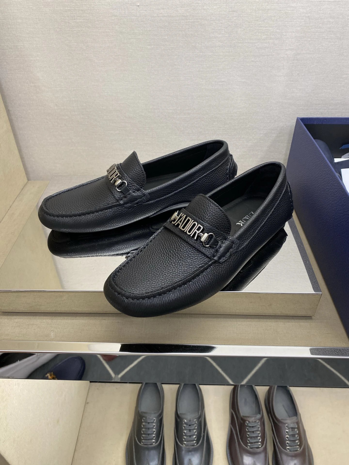 Dior Men's Pebbled Driving Shoes use premium genuine calfskin with pebbled texture.
