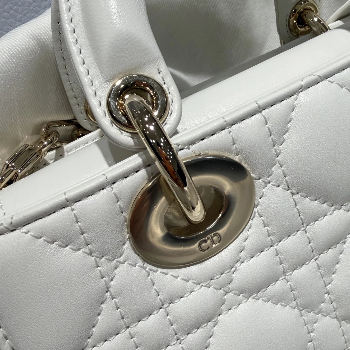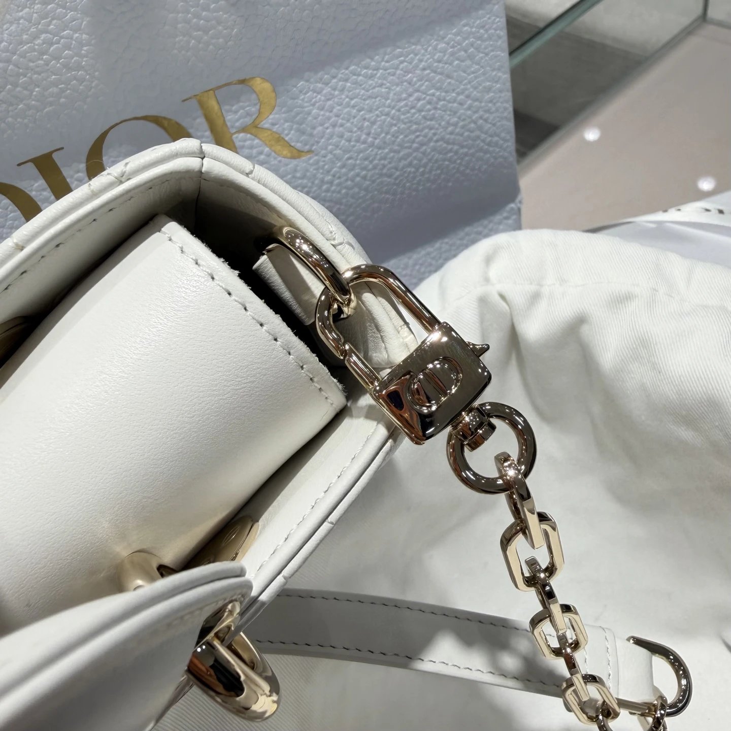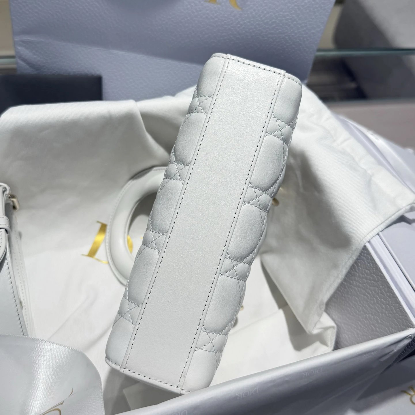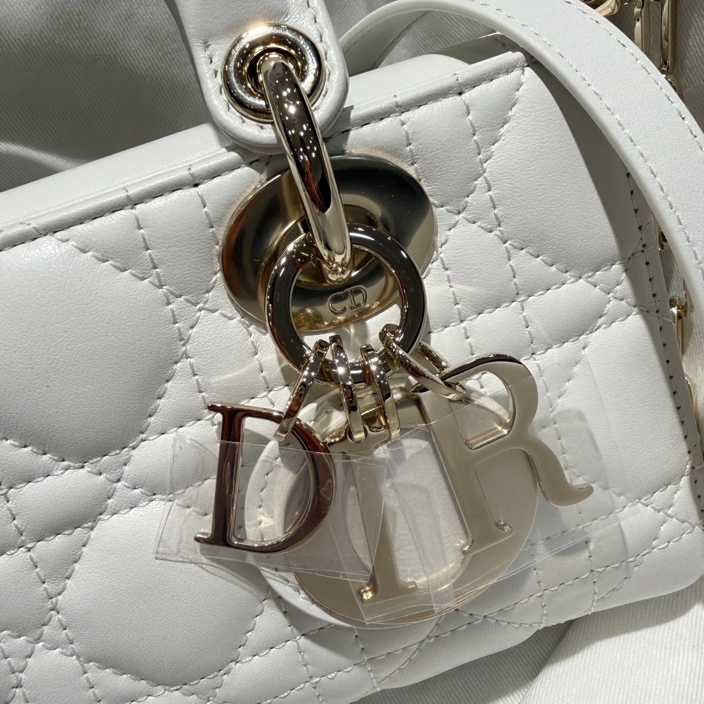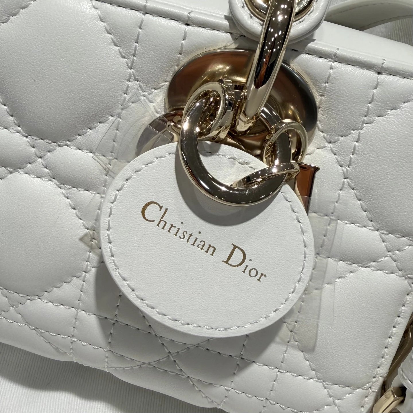 Dior New Mini White Bag: High-end crafted with original lambskin & pure copper hardware.