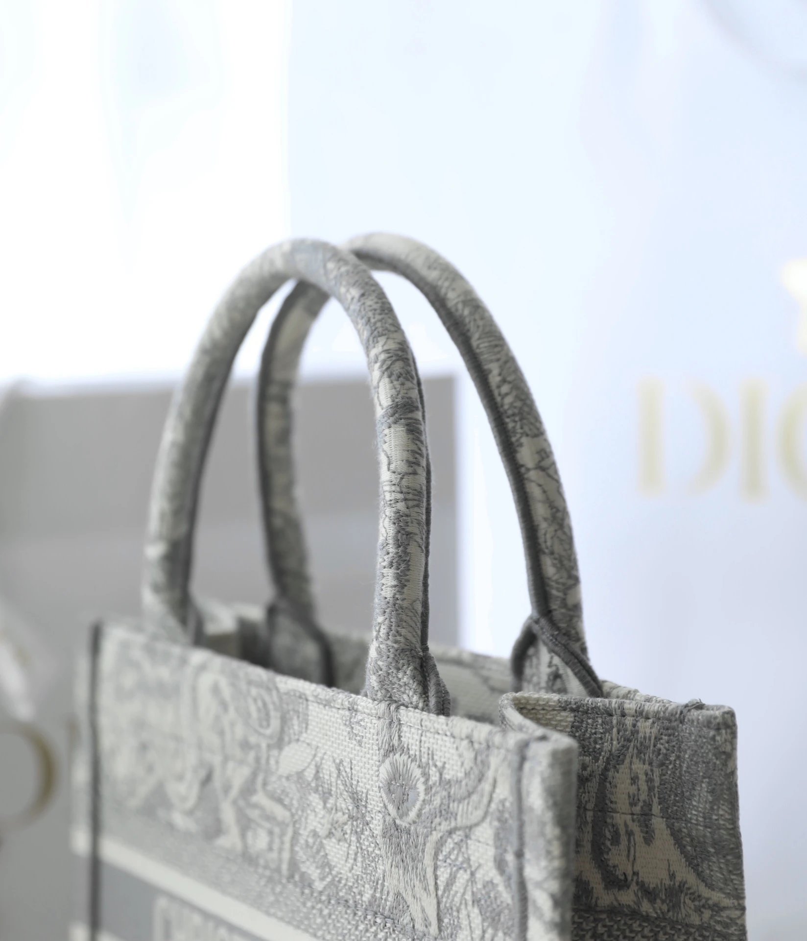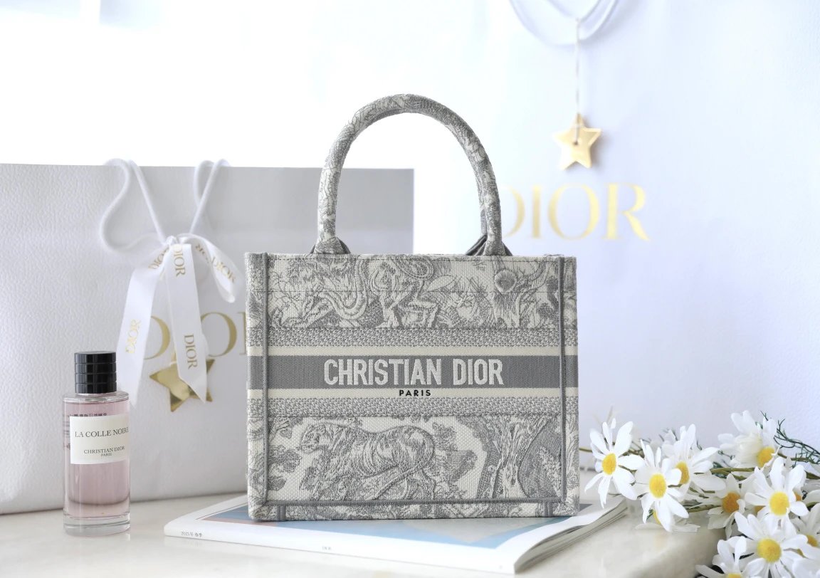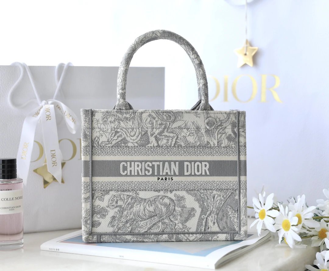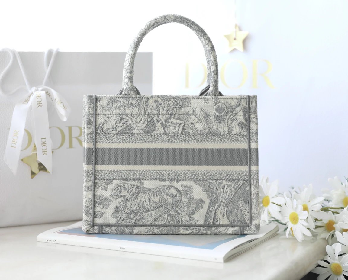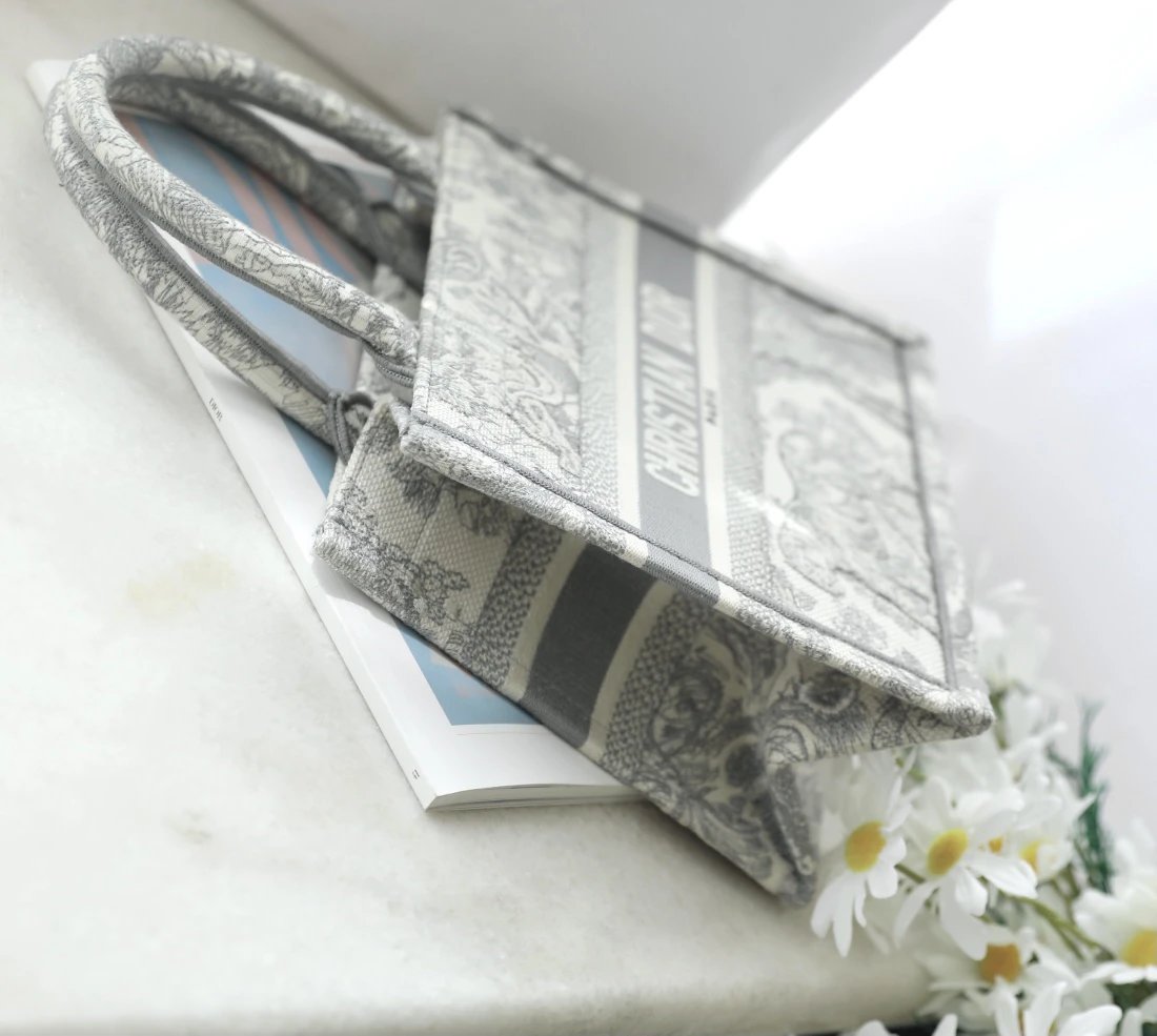 Dior Book Tote is from the Riviera collection, designed by Maria Grazia Chiuri with gray tones.