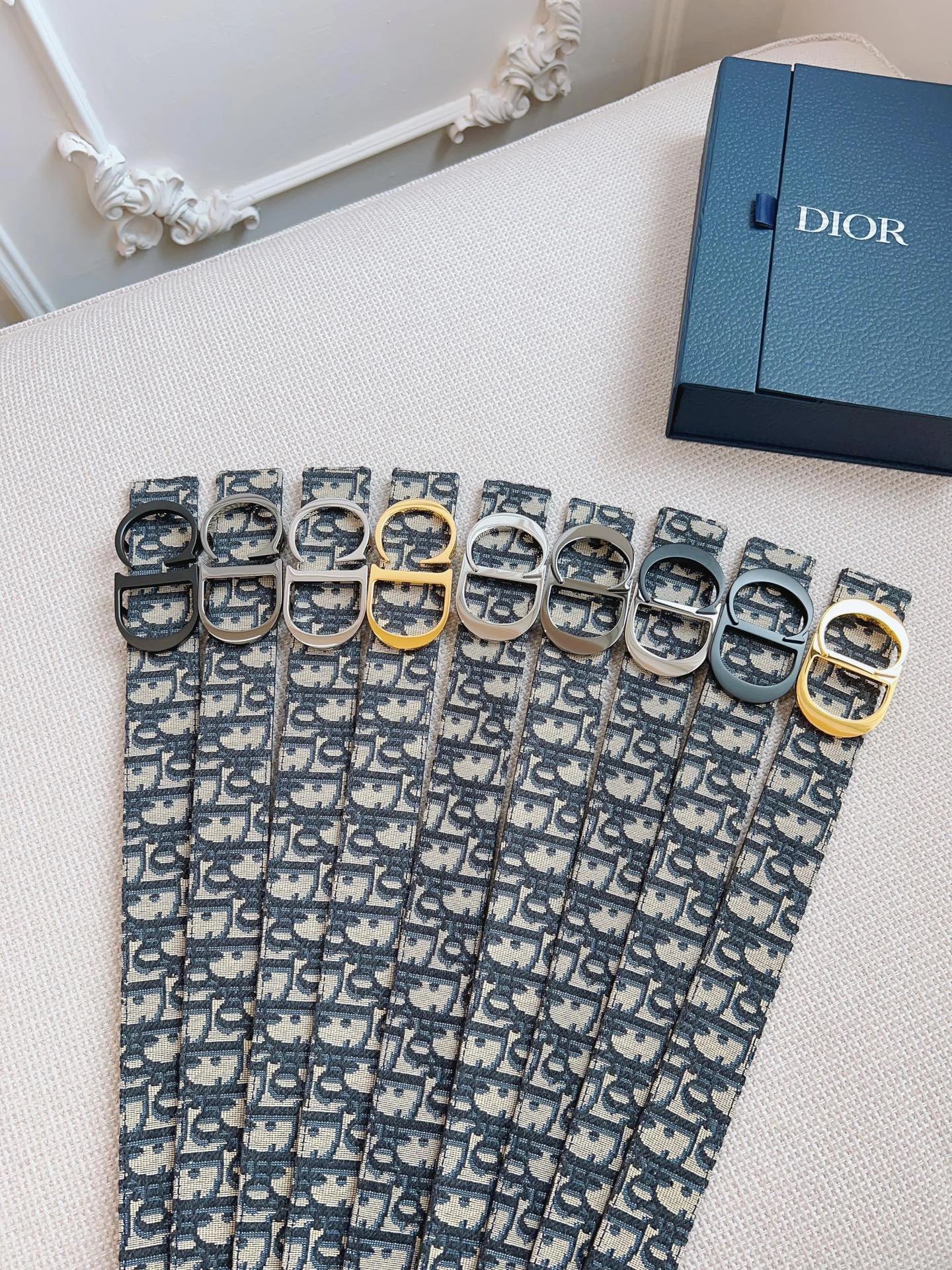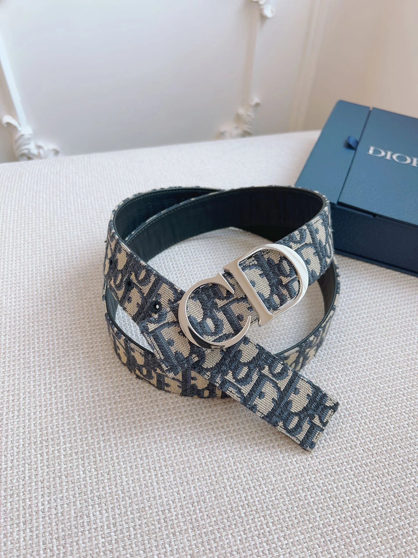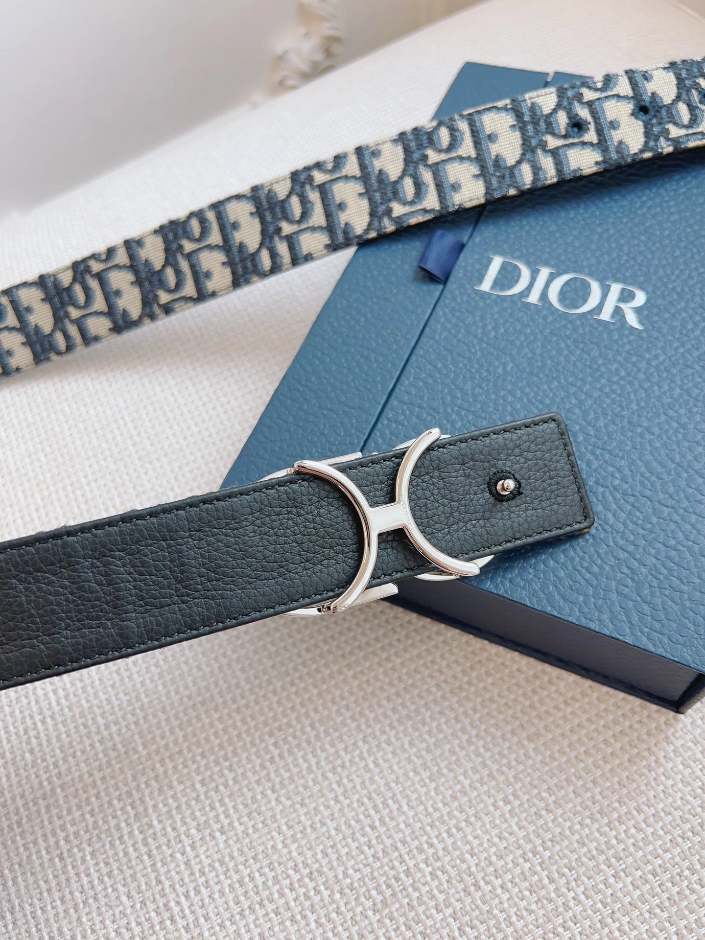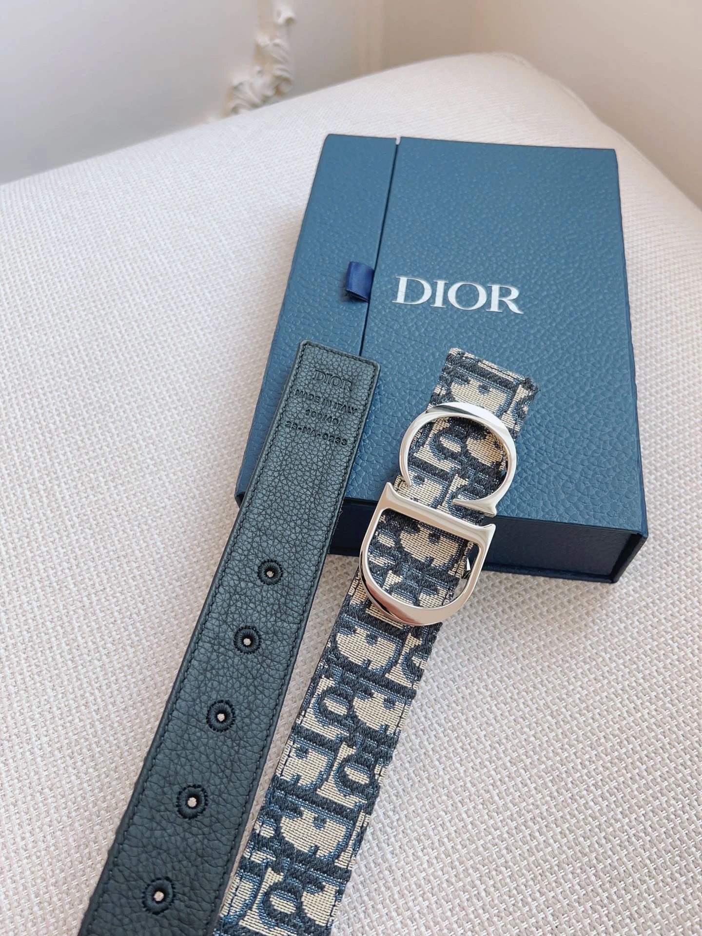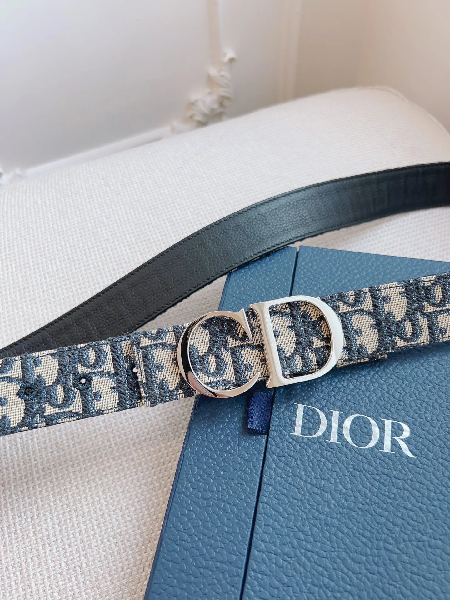 Dior Oblique Blue French Original Leather & Black Cowhide Accessories, with undeniable quality. Size: 3.5cm.